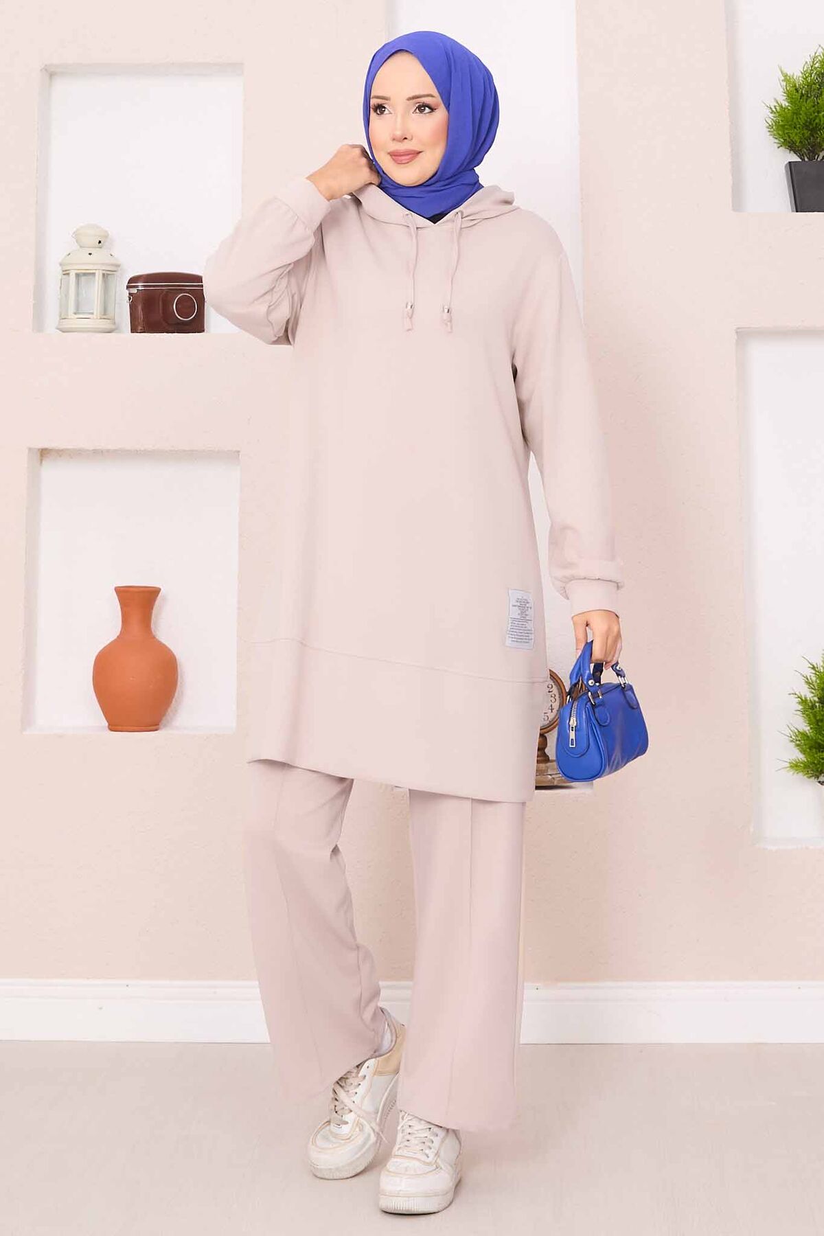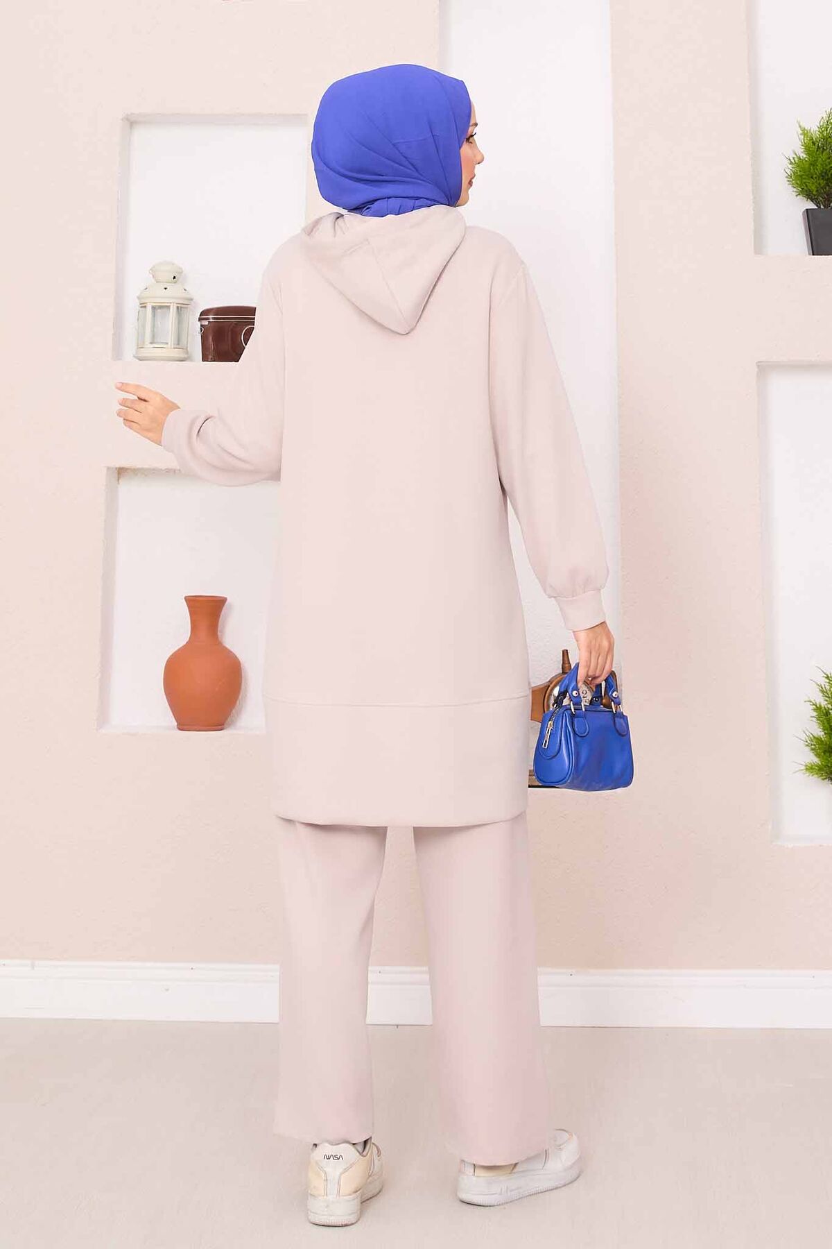 Relax Armalı Kapüşonlu Tesettür İkili Takım Bej
