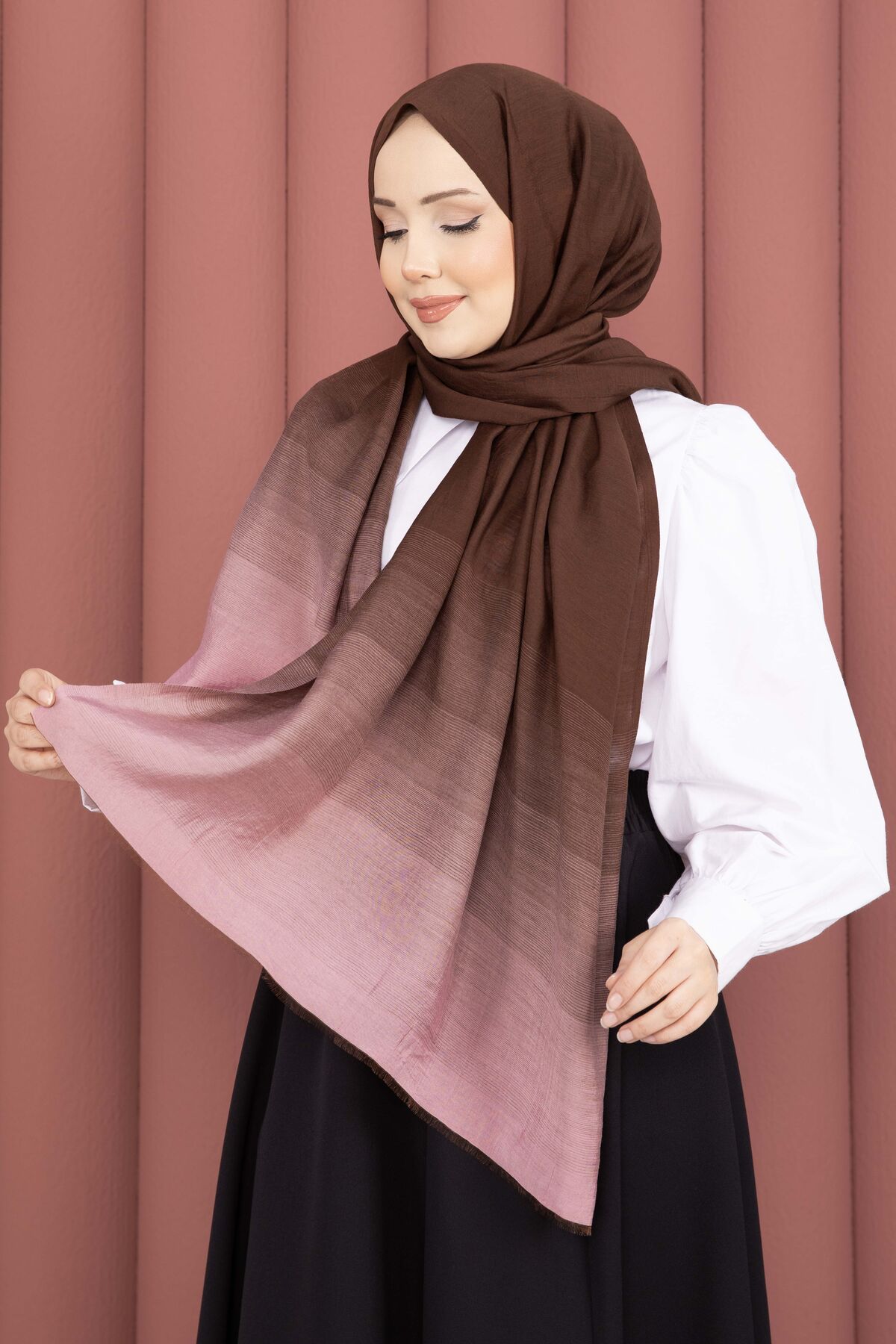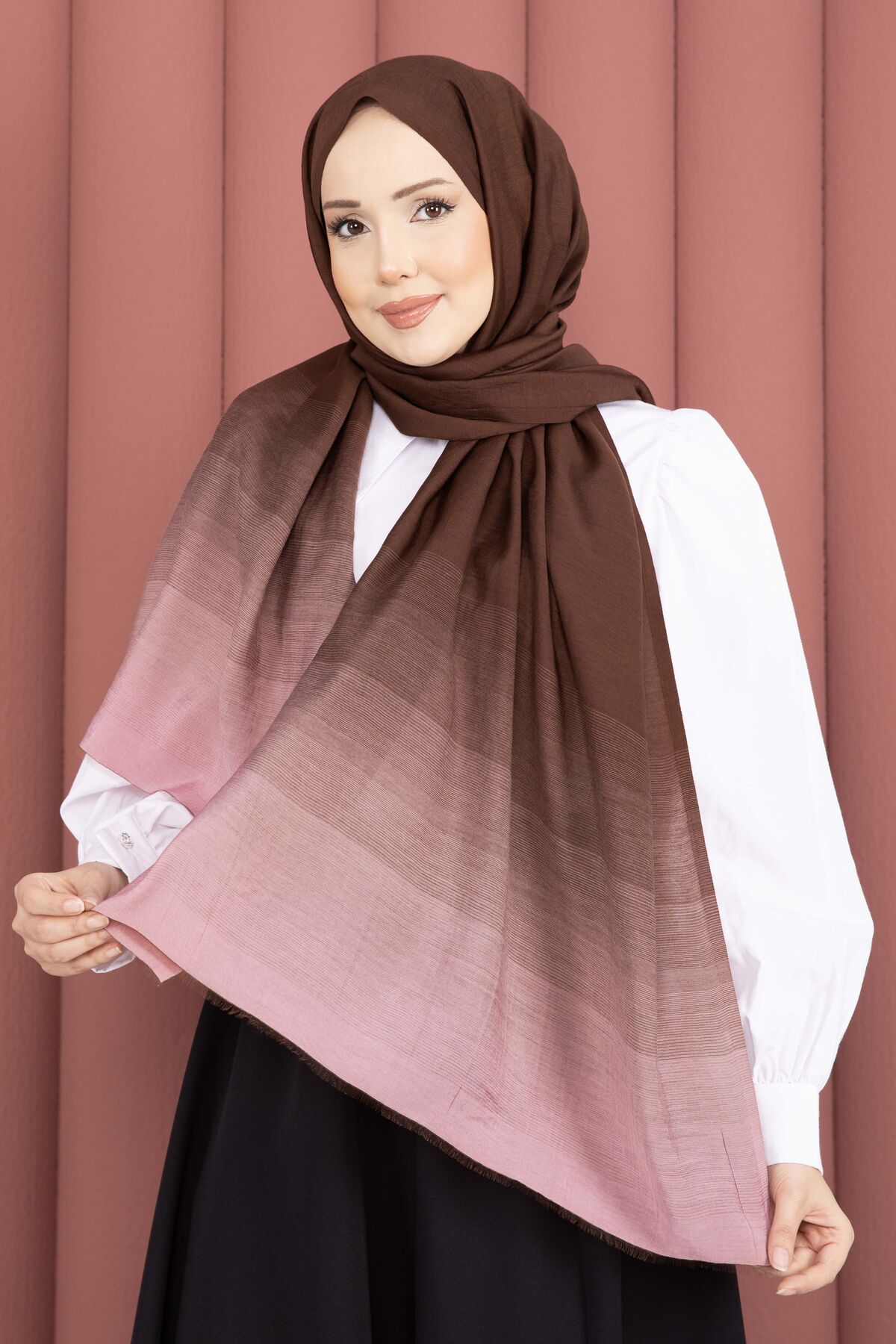 Renk Geçişli Modern Şal Serisi Kahve-Pudra