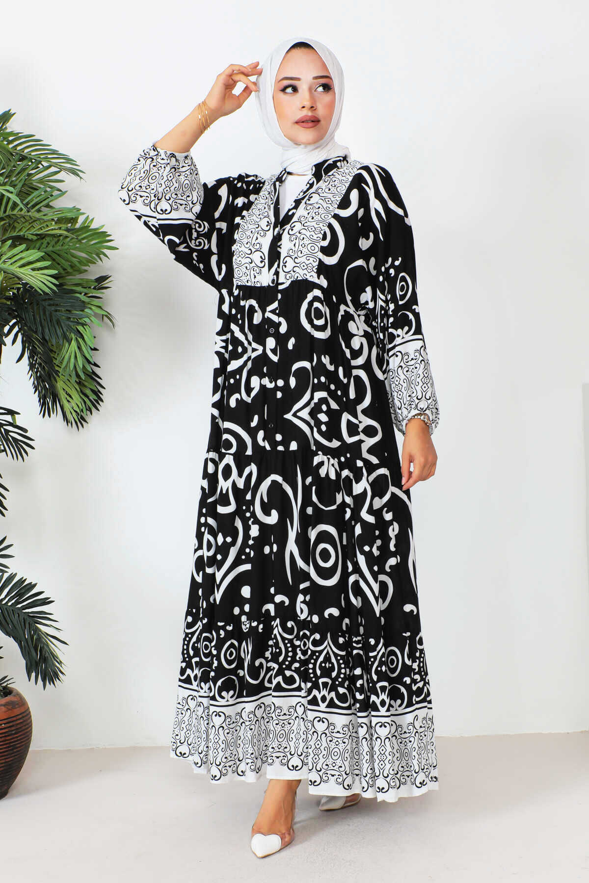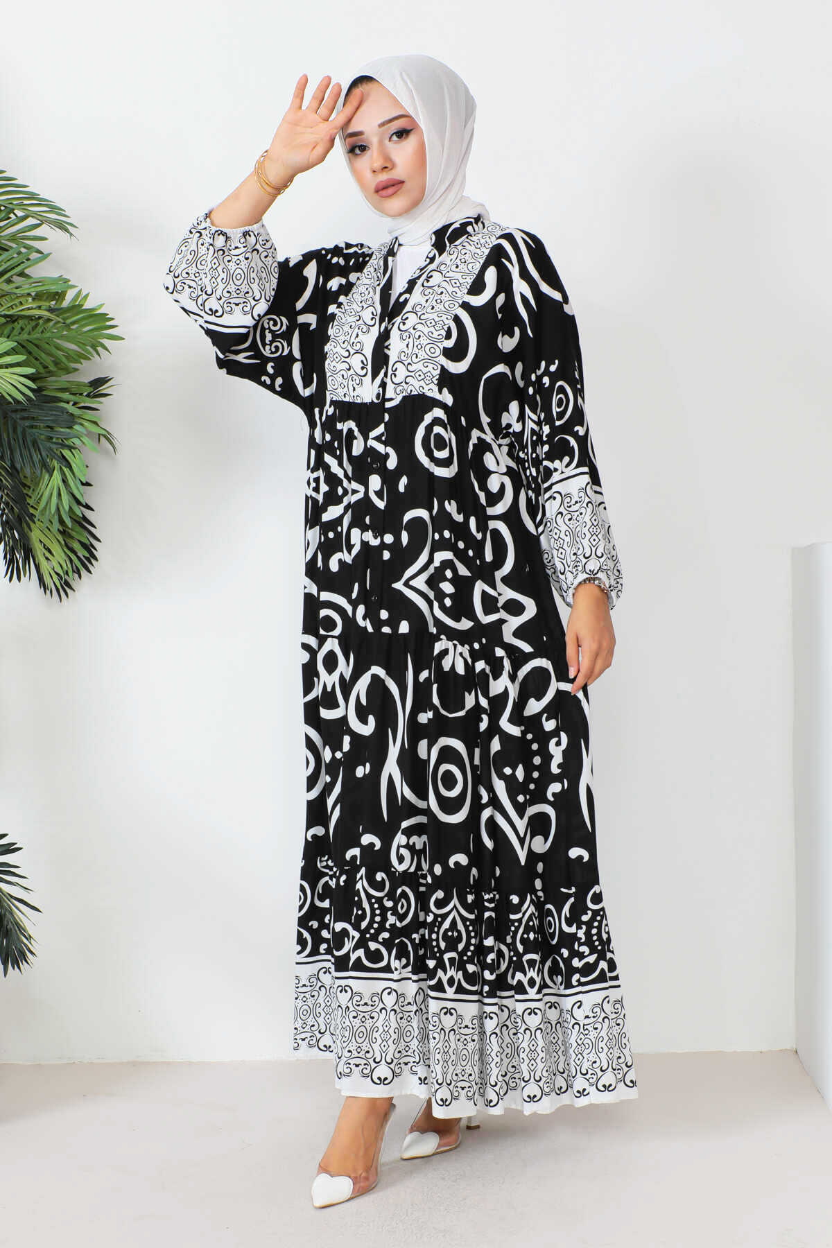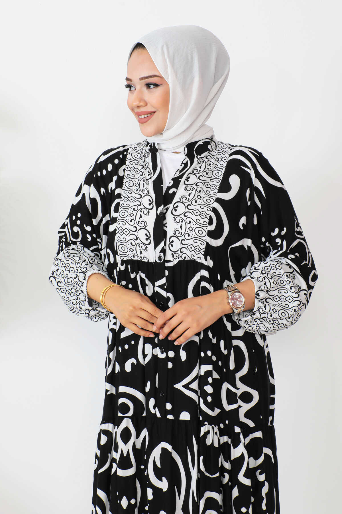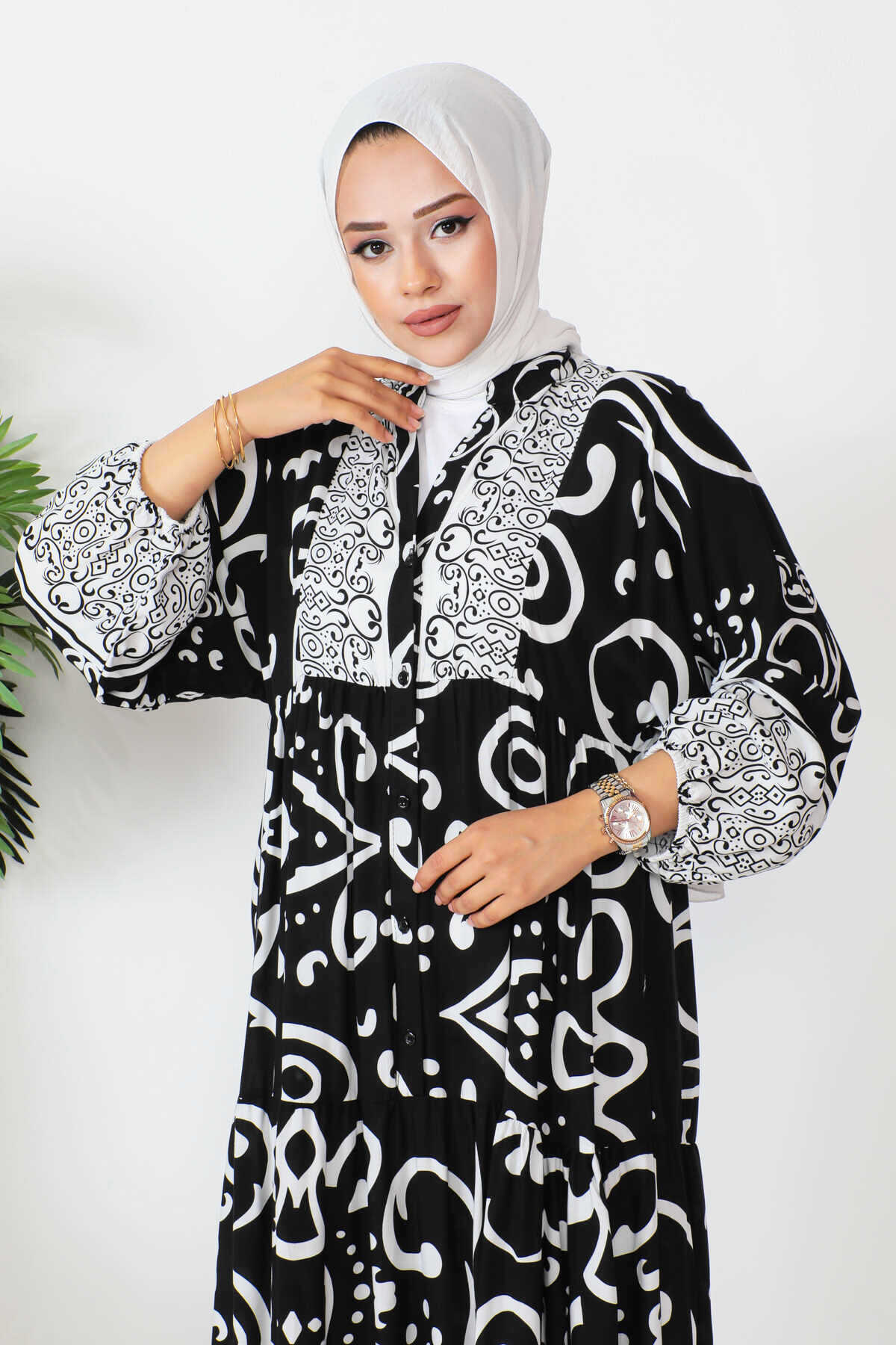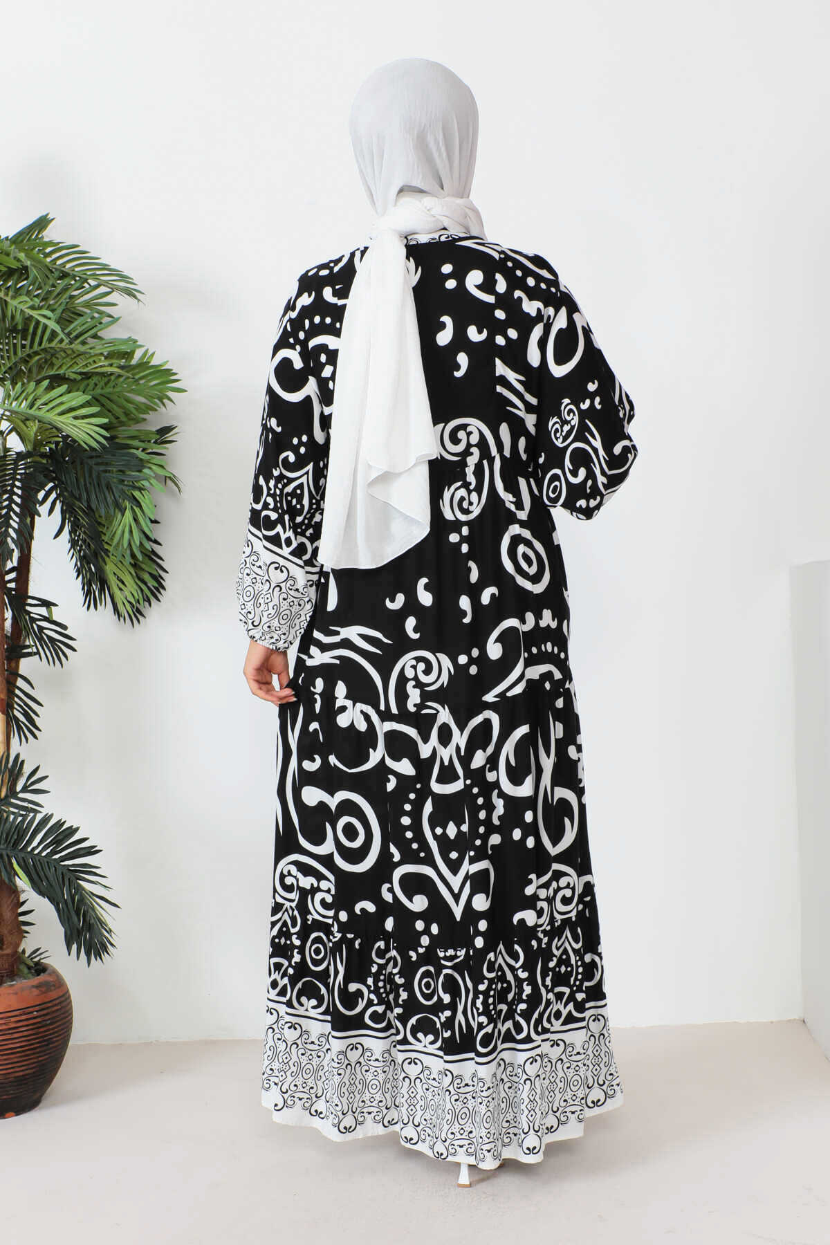 Robalı Desenli Tesettür Elbise -9