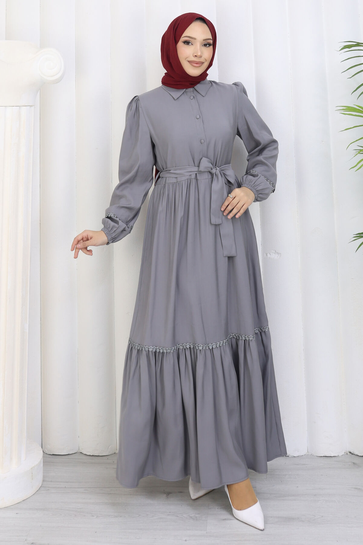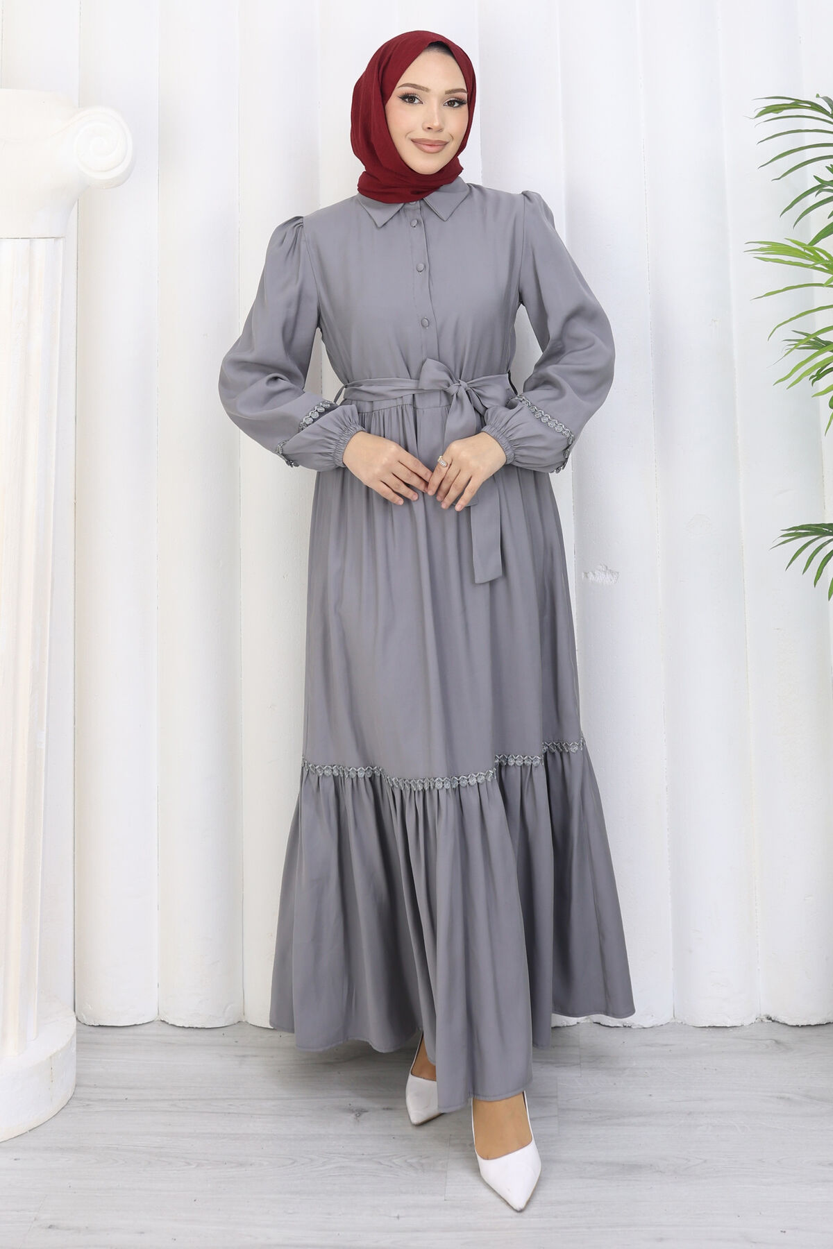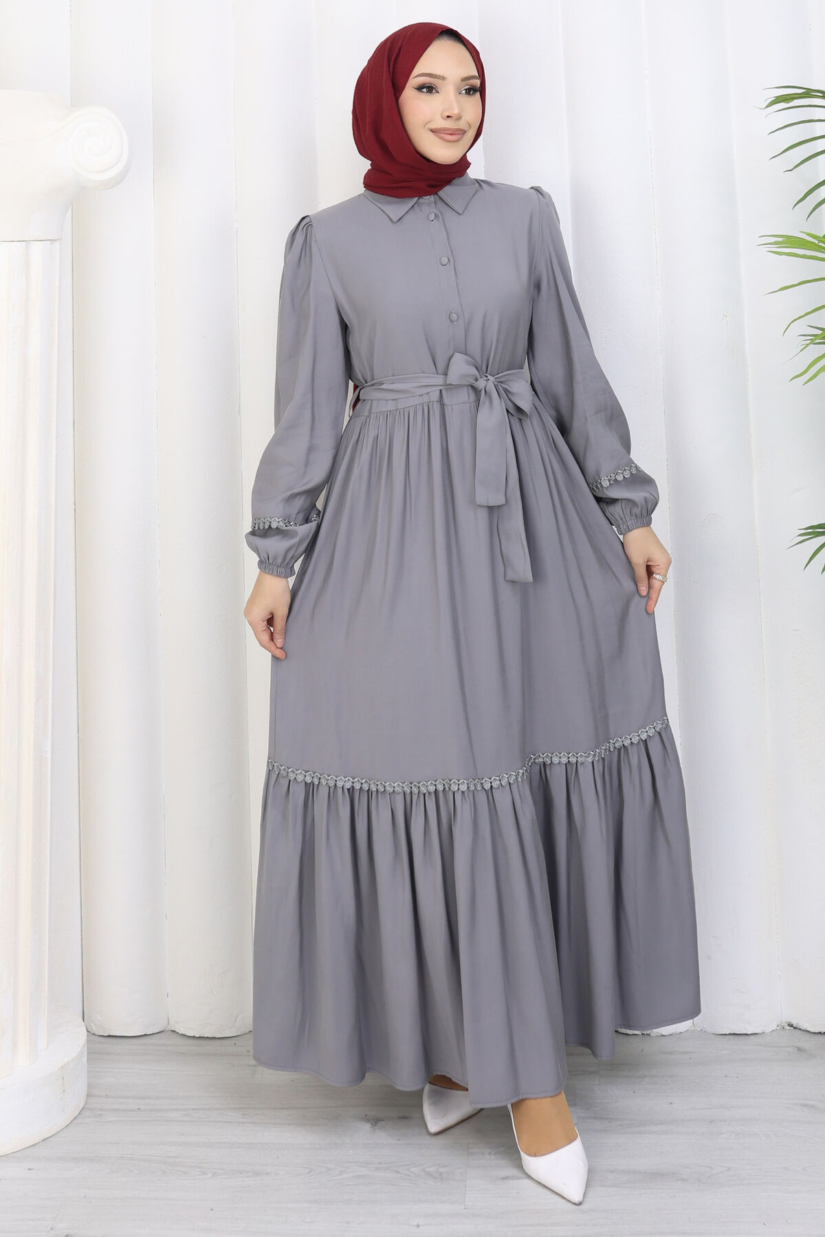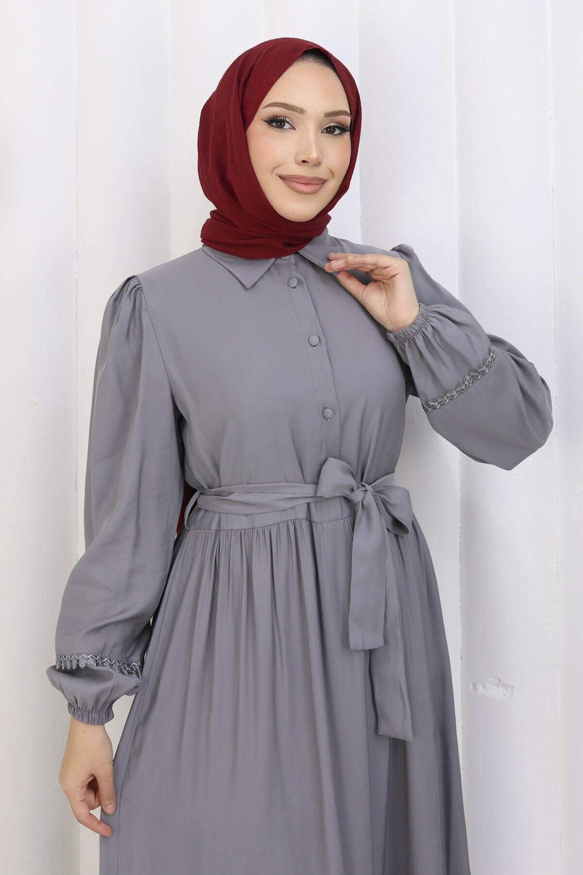 Rose Kuşaklı Yarım Düğmeli Elbise Gri Yorumları