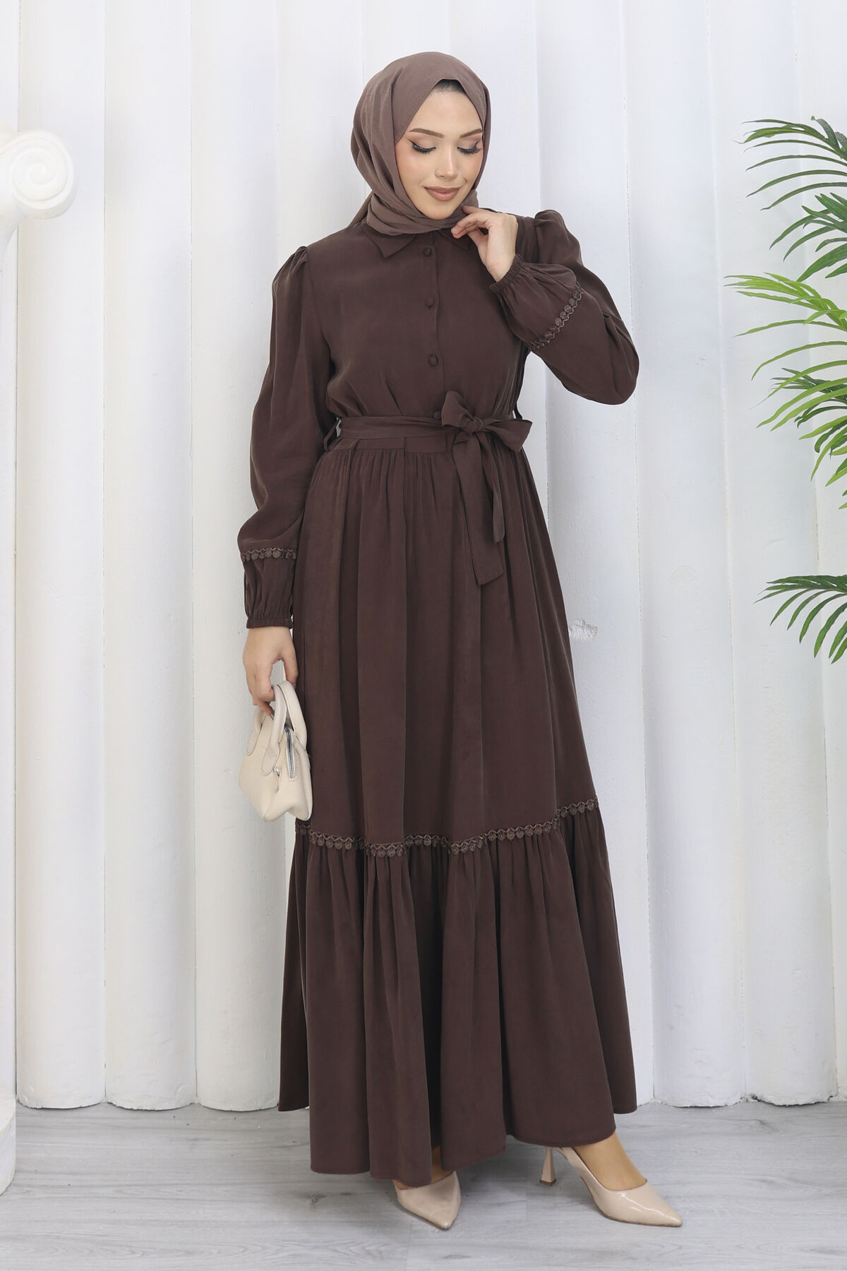 Rose Kuşaklı Yarım Düğmeli Elbise Kahve Yorumları