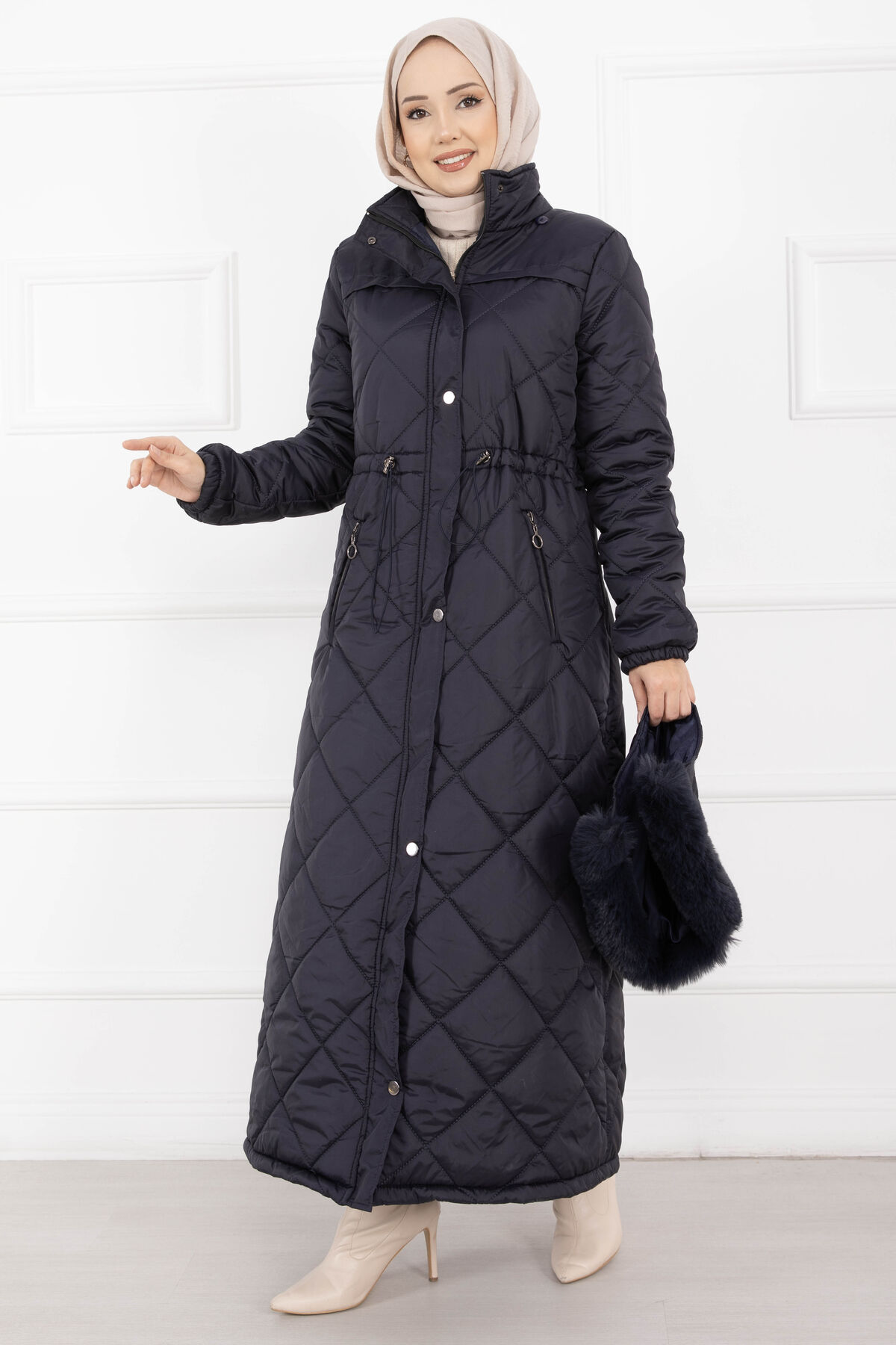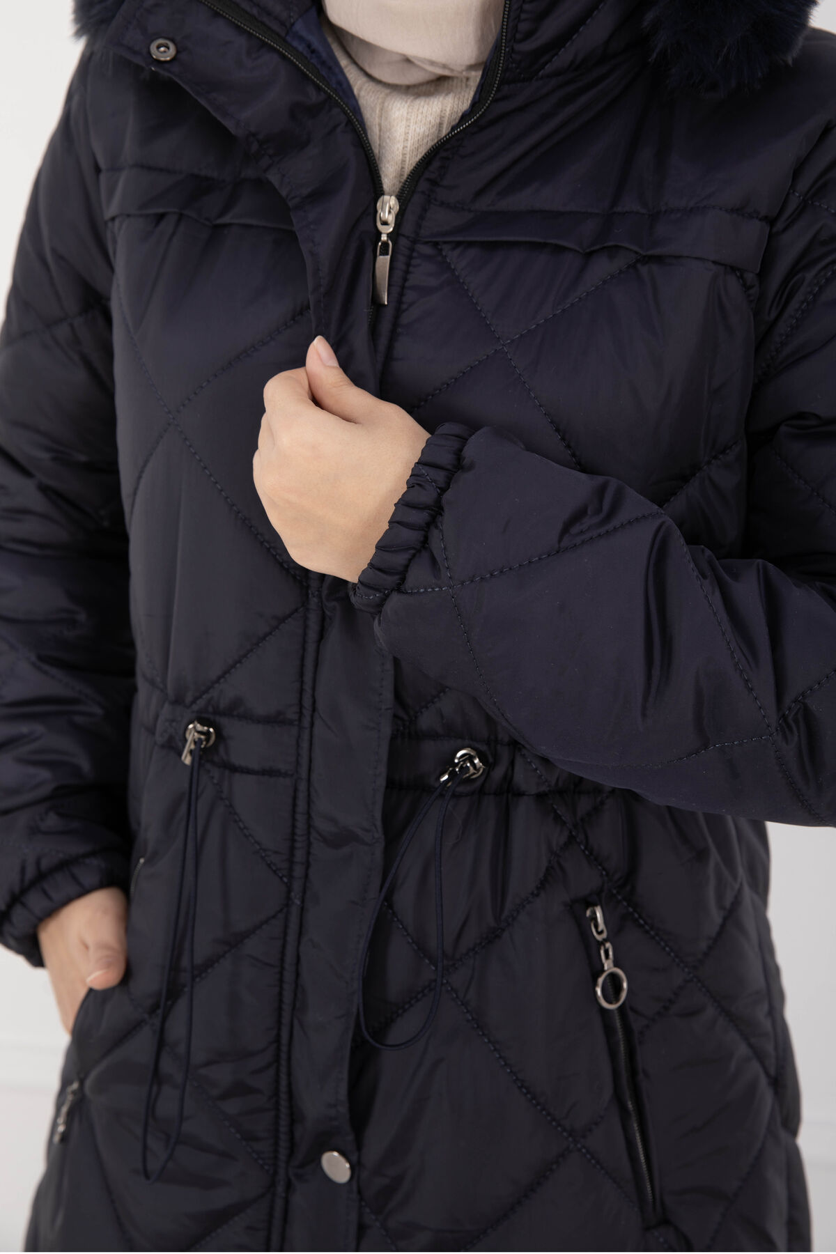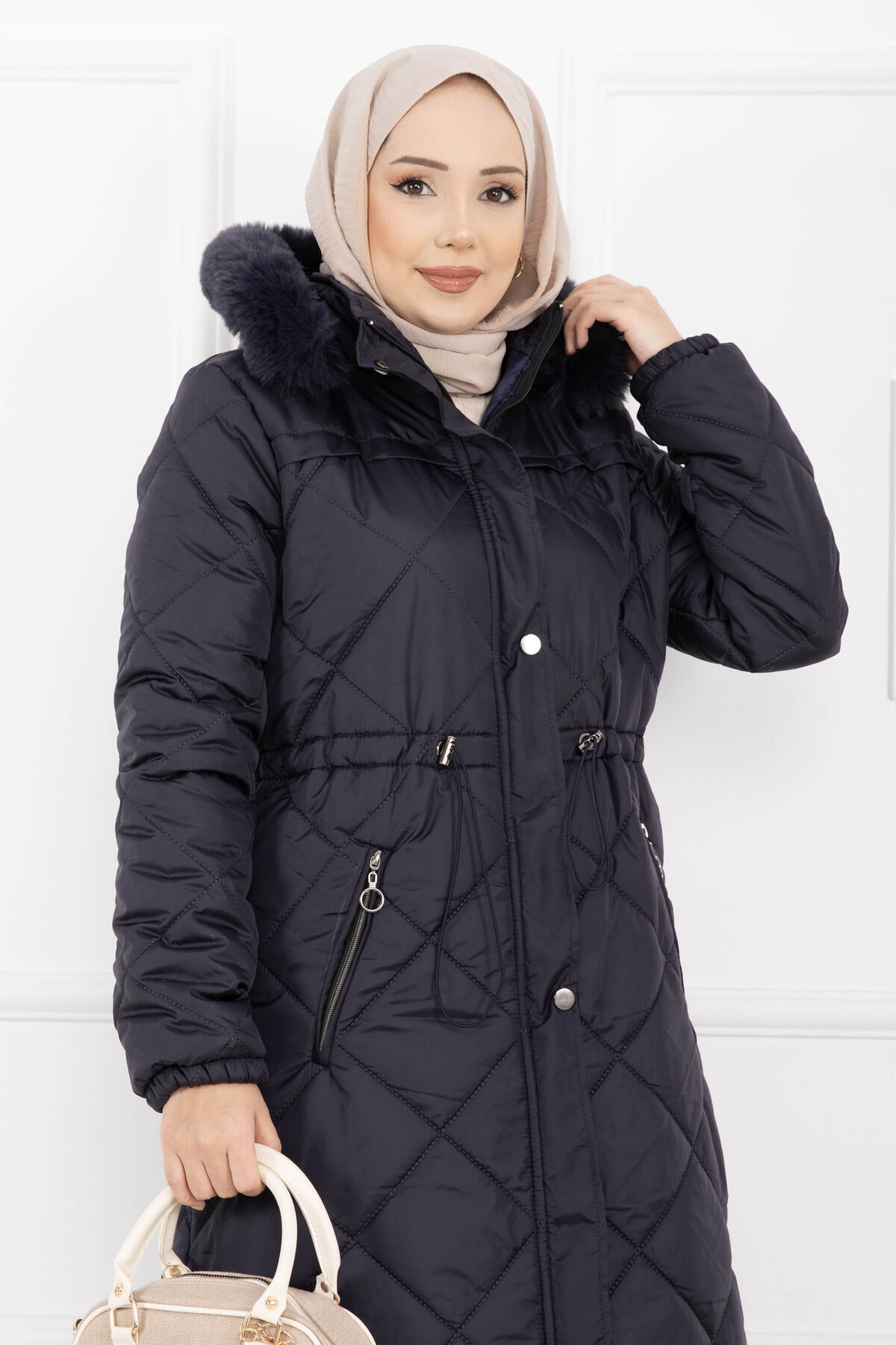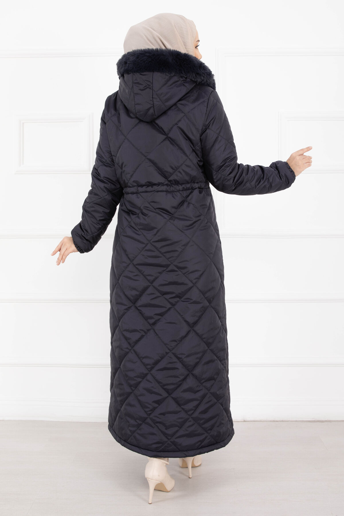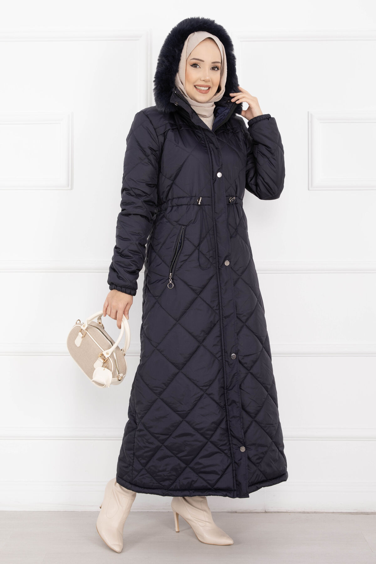Royal Kapitone Kürk Kapüşonlu Uzun Şişme Mont Lacivert