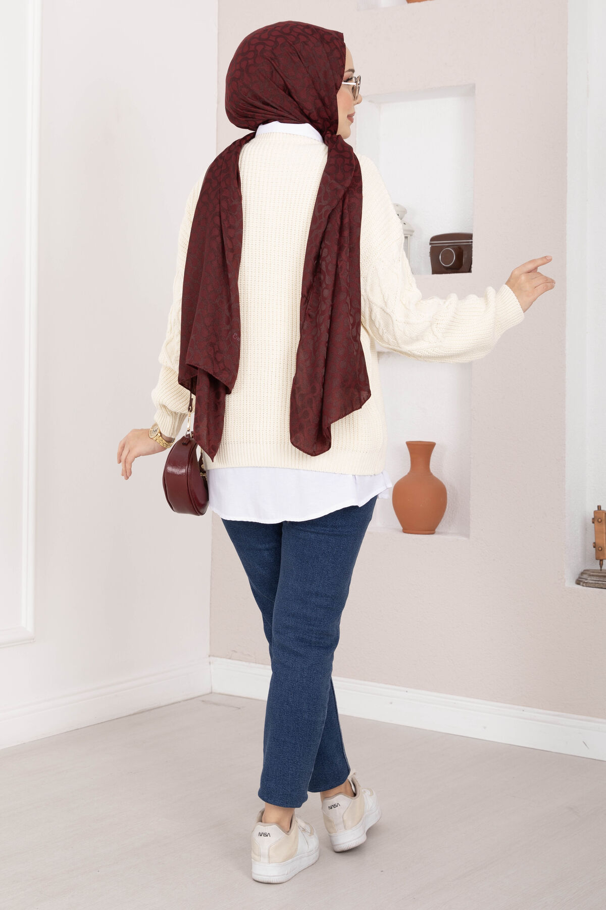 Zarif saç örgü desen detaylarıyla öne çıkan bu triko kazak, hem günlük hem de şık kombinlerinizde rahatlıkla tercih edebileceğiniz özel bir parçadır. Yumuşak dokulu triko kumaşı sayesinde gün boyu konfor sunarken, modern ve rahat kesimiyle her stile kolayca uyum sağlar.