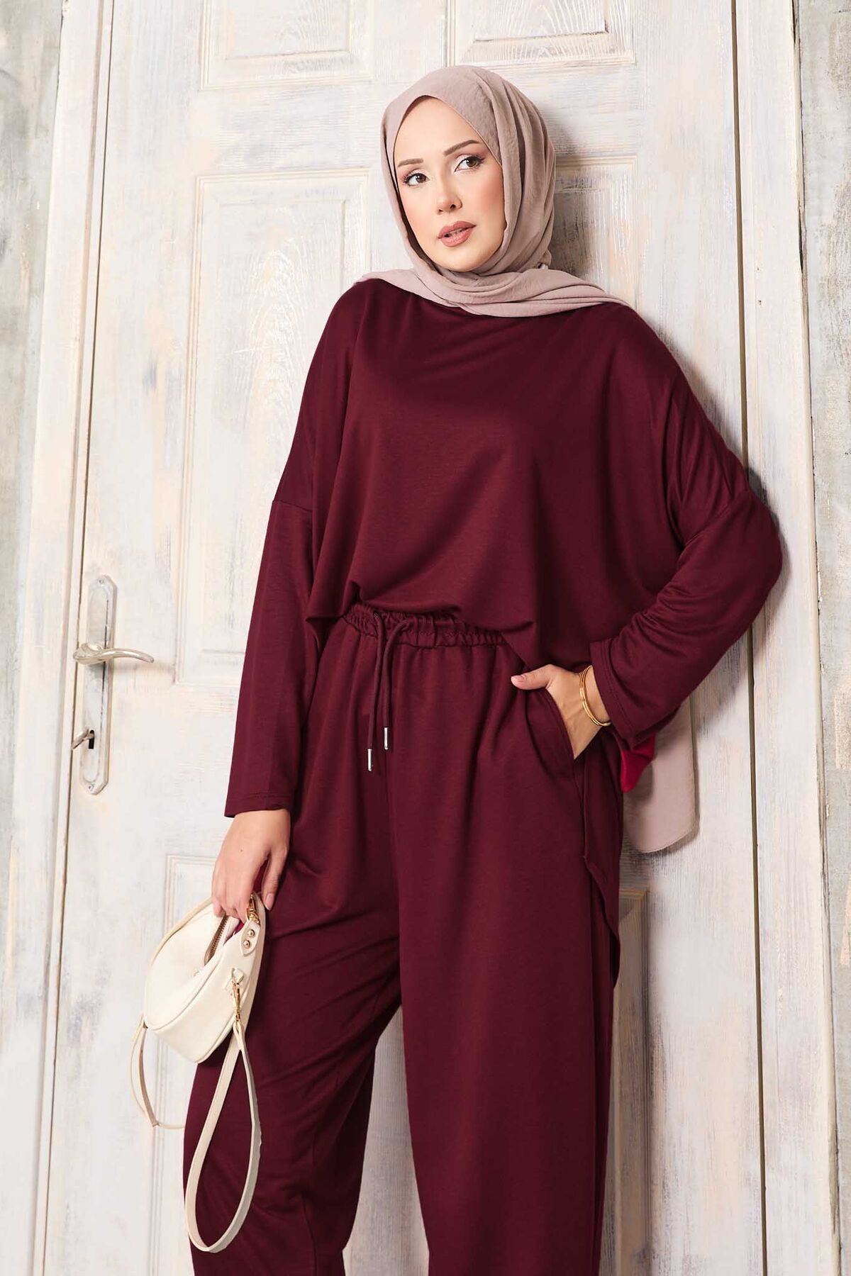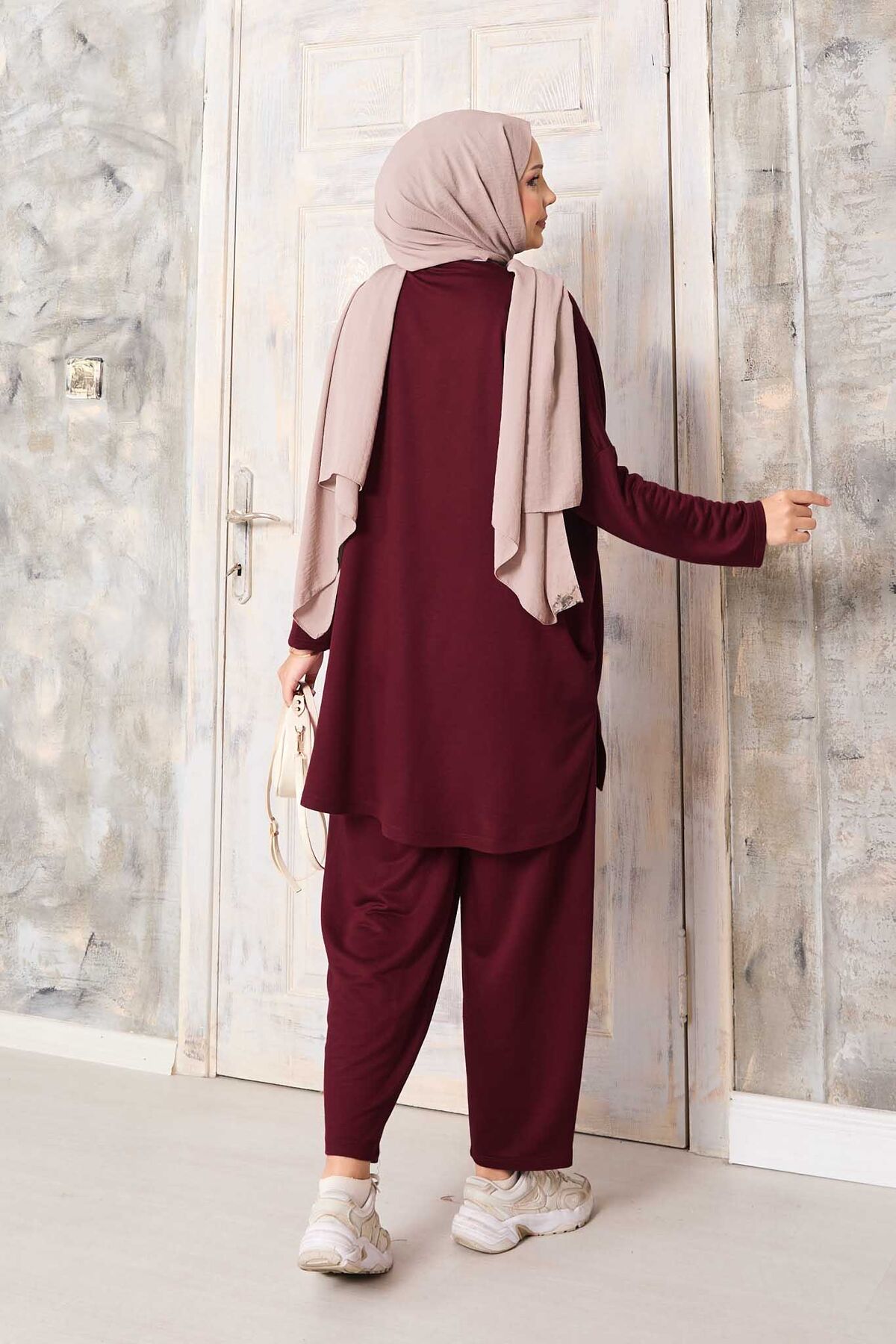 Salaş Kesim Şalvar Pantolonlu Takım Bordo