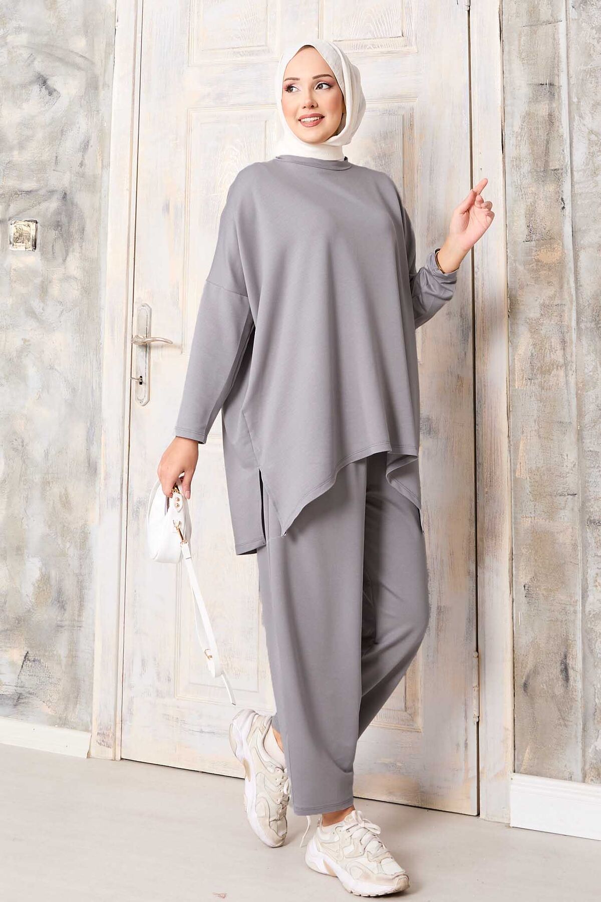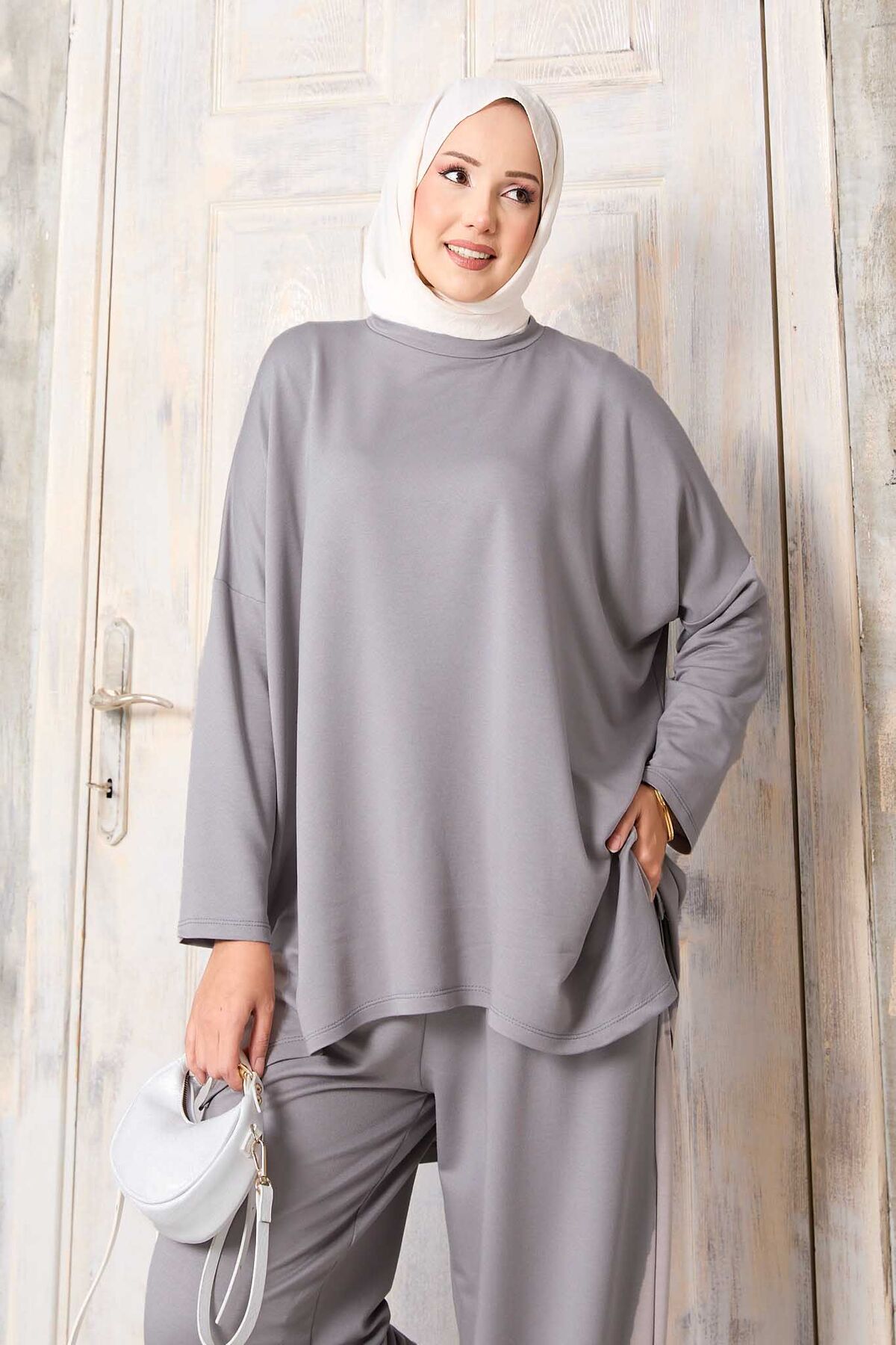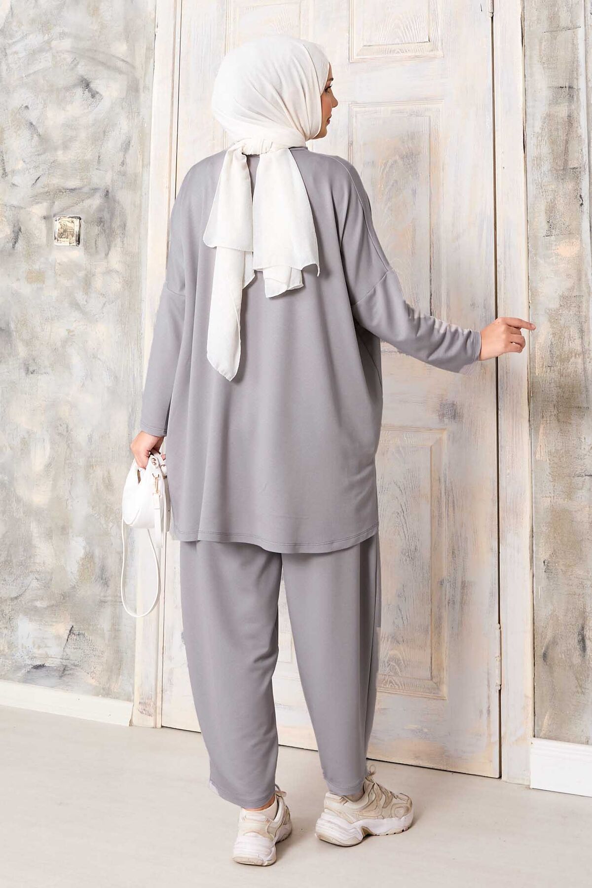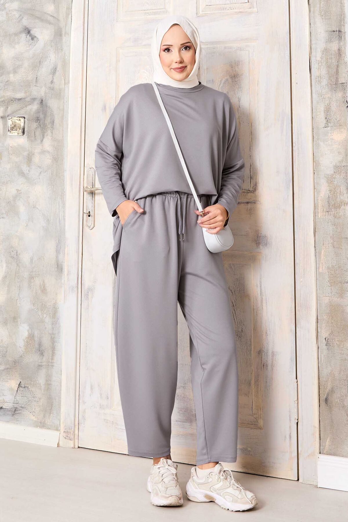 Salaş Kesim Şalvar Pantolonlu Takım Gri