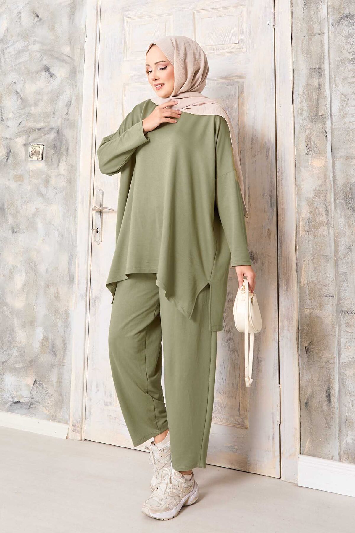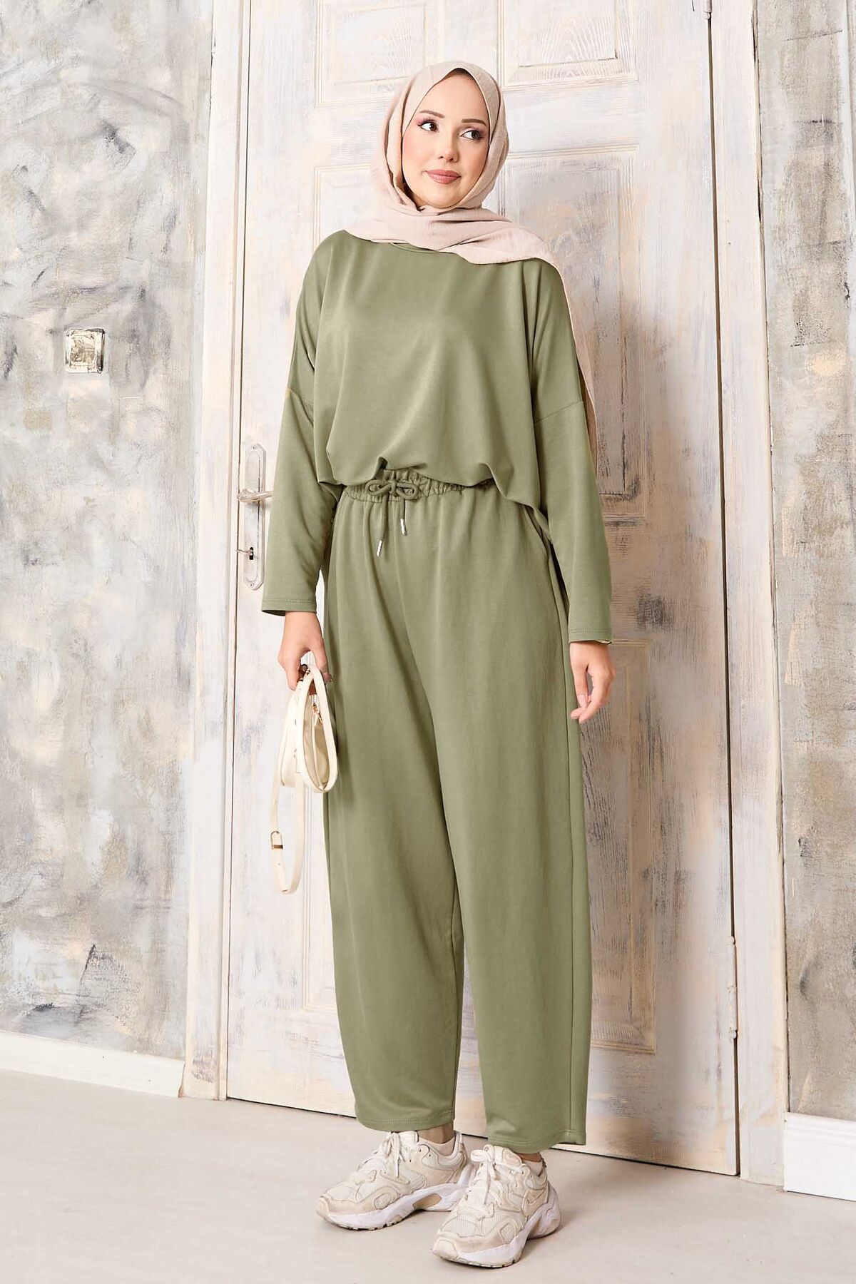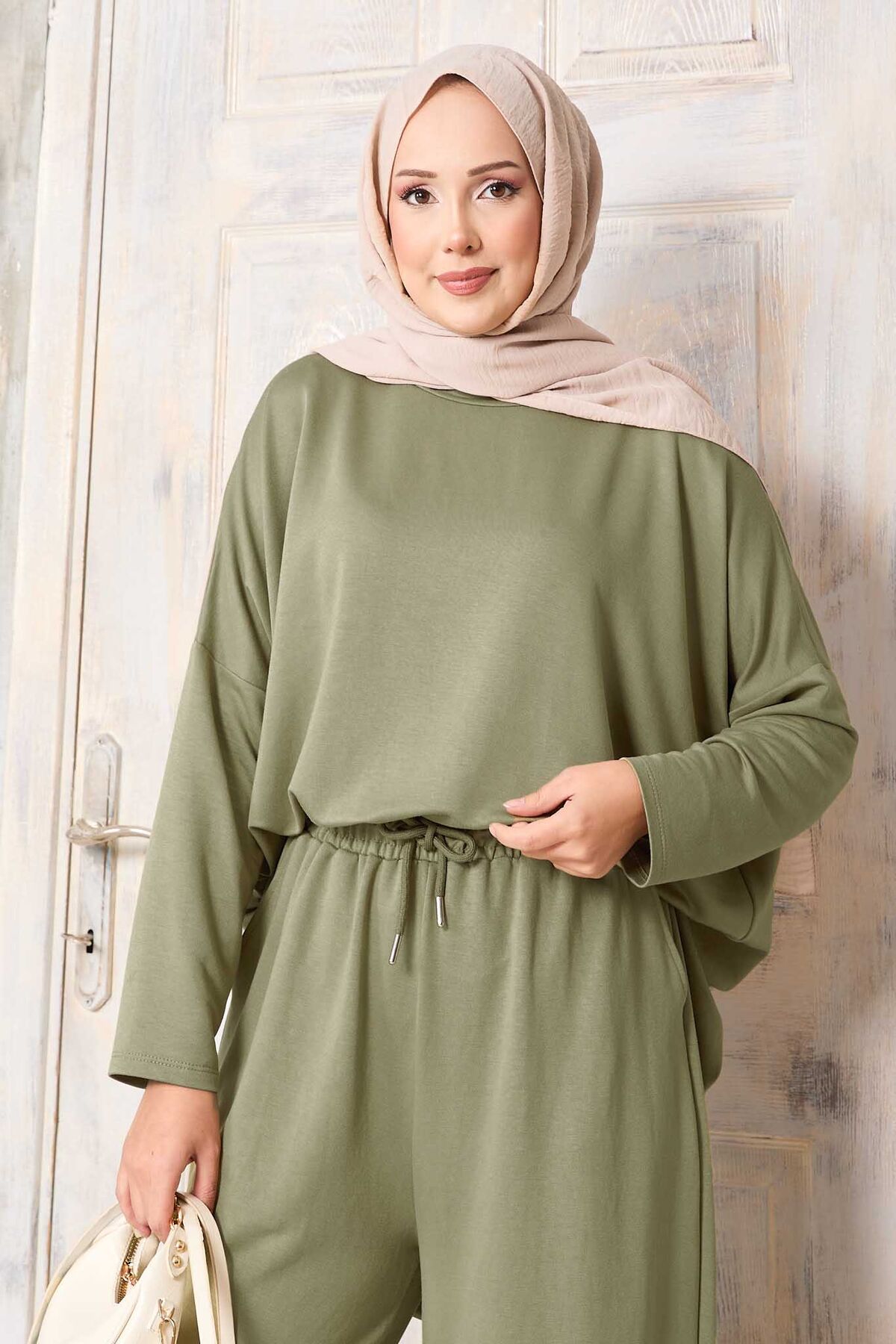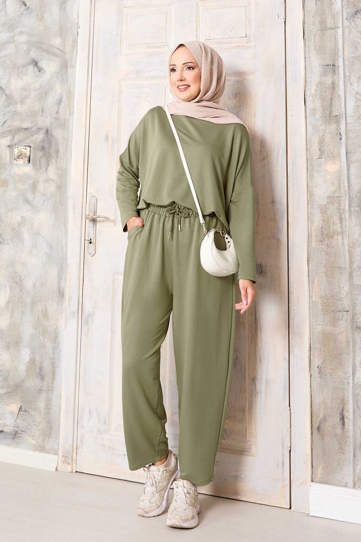 Salaş Kesim Şalvar Pantolonlu Takım Haki
