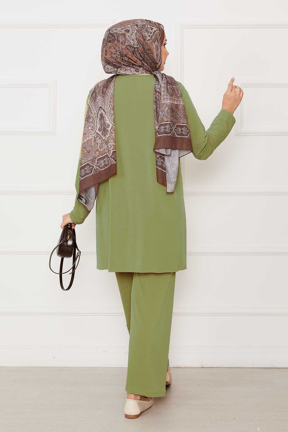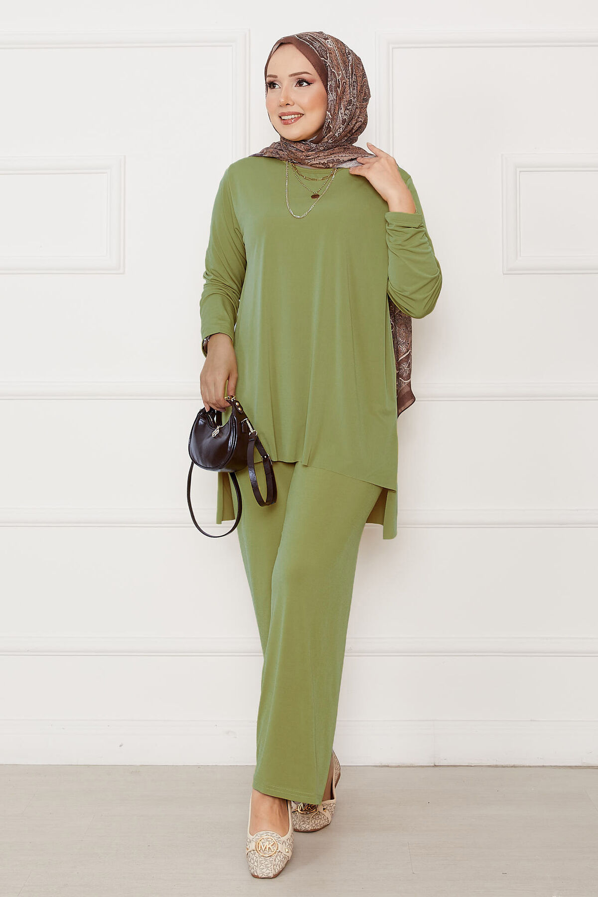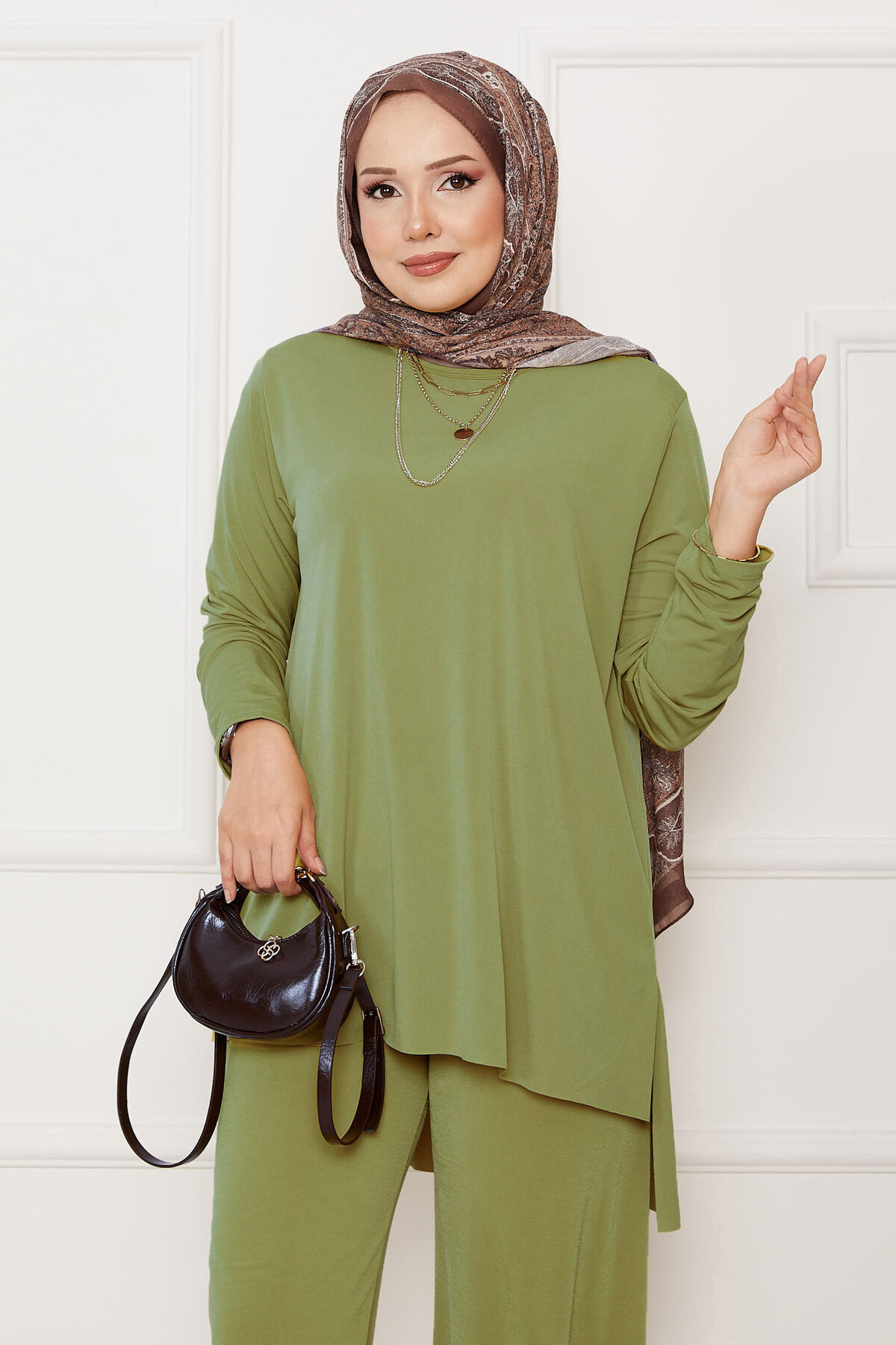 - Ürün mevsimliktir. Ürün tunik ve pantolon olmak üzere iki parçadan oluşmaktadır. Tunik önü kısa arkası uzun modellerdendir. Pantolon beli lastikli olup çok rahat bir takımdır.