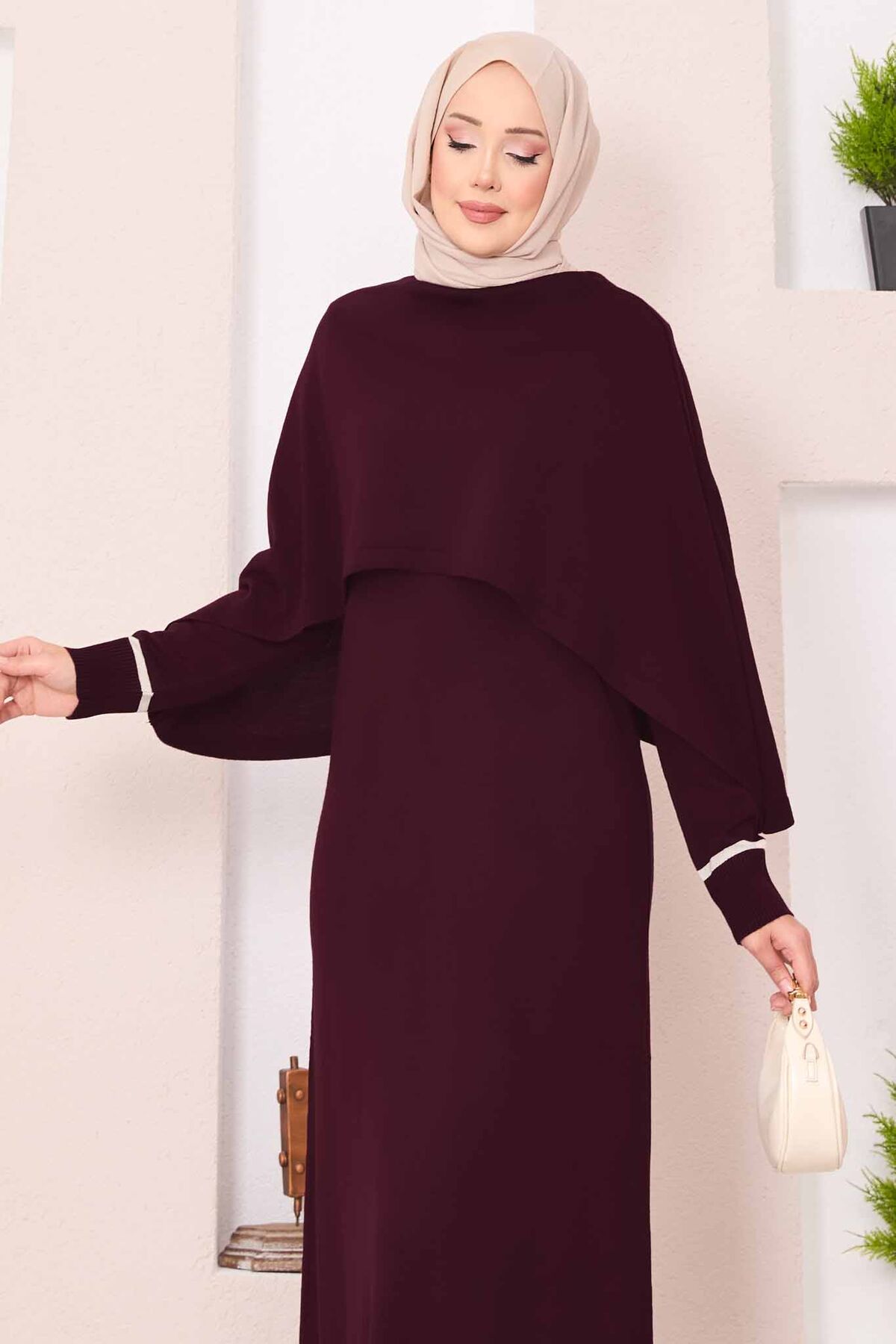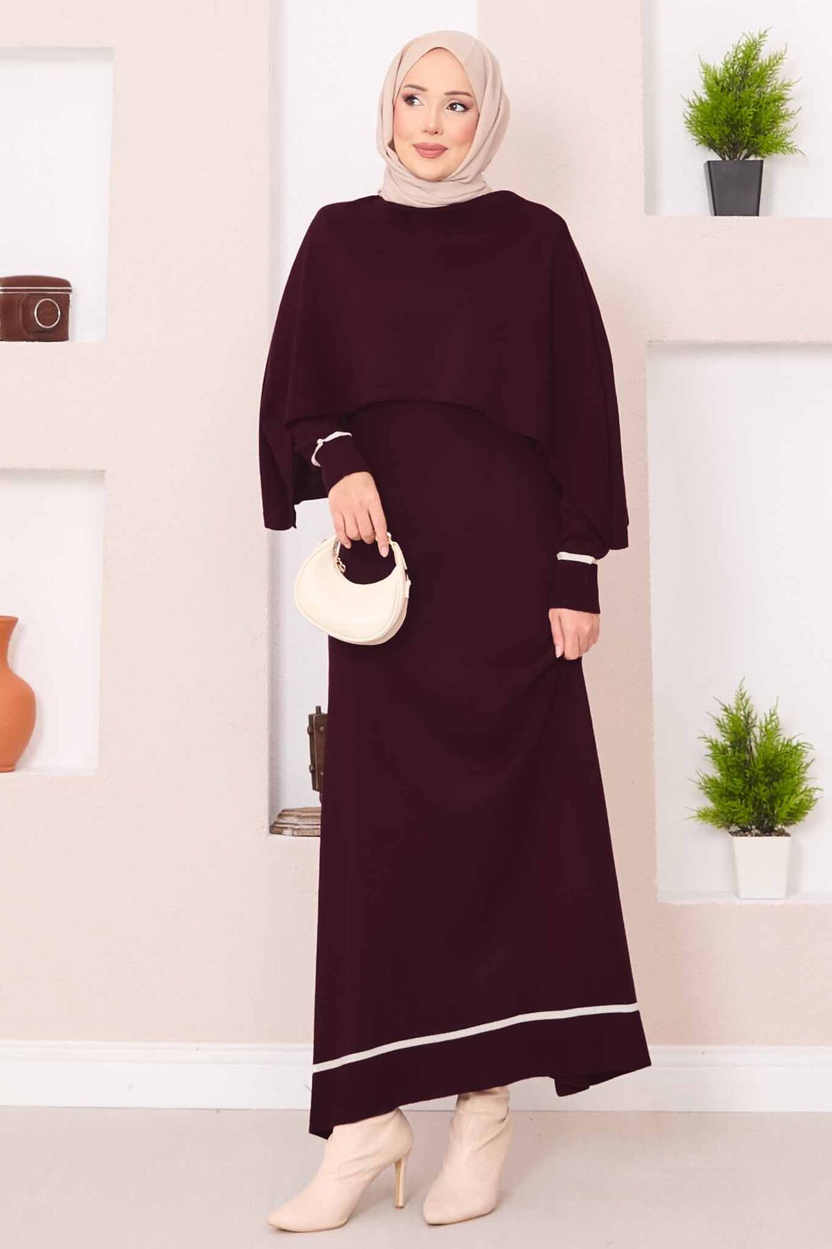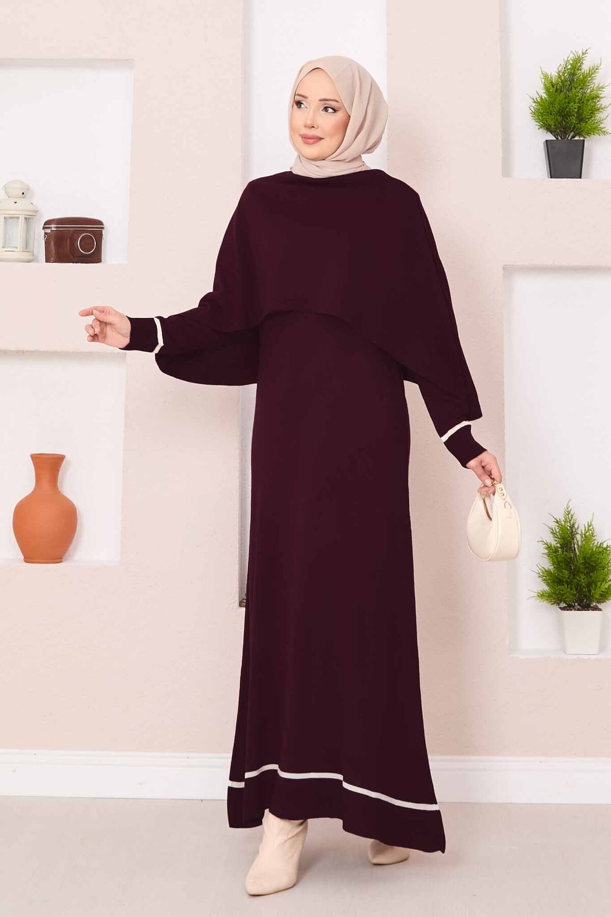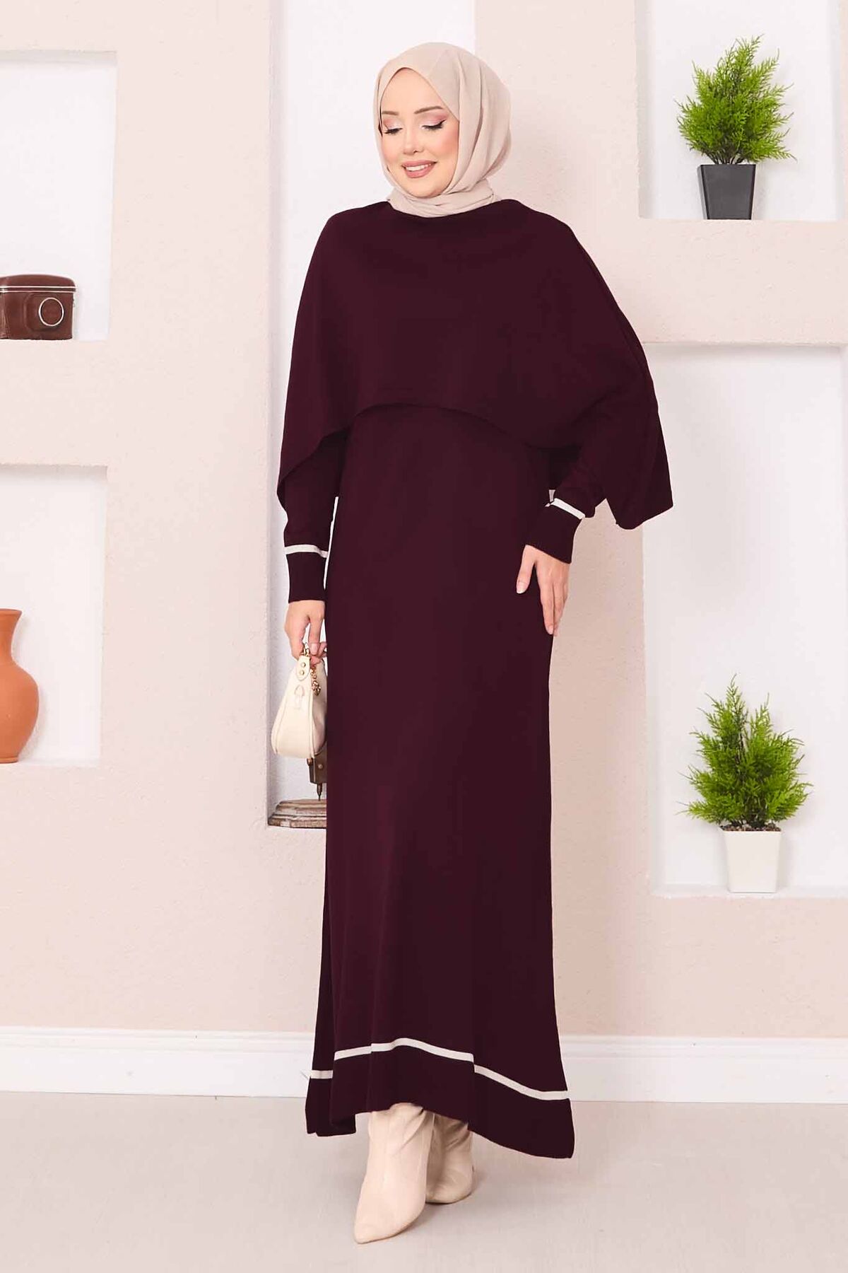 Şallı Çizgi Detaylı Tesettür Triko Elbise Bordo Yorumları