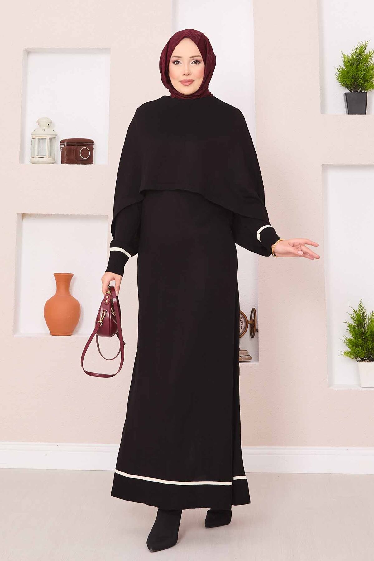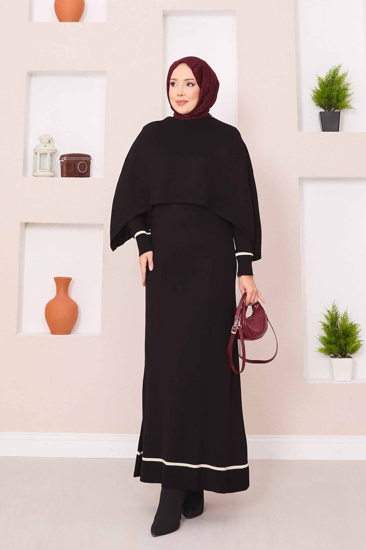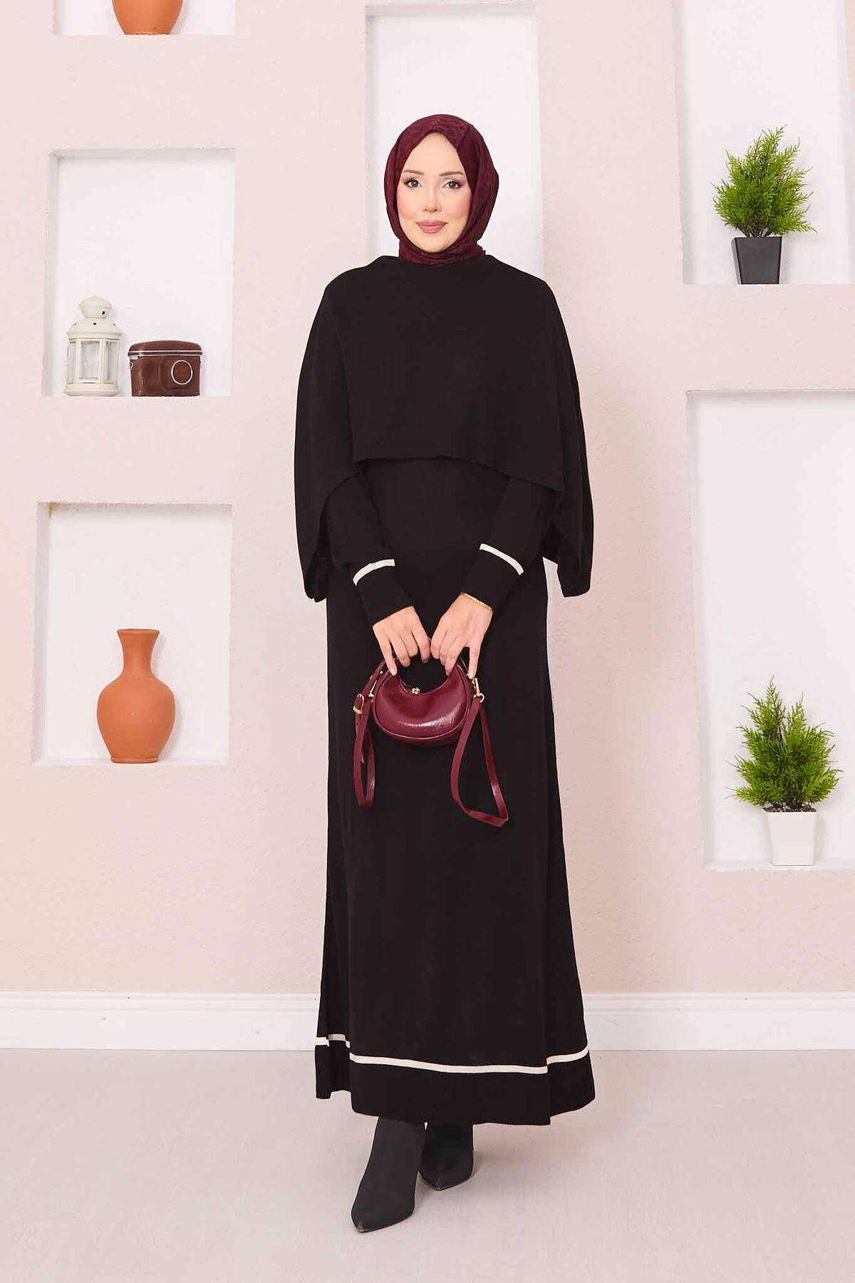 Şallı Çizgi Detaylı Tesettür Triko Elbise Siyah Yorumları