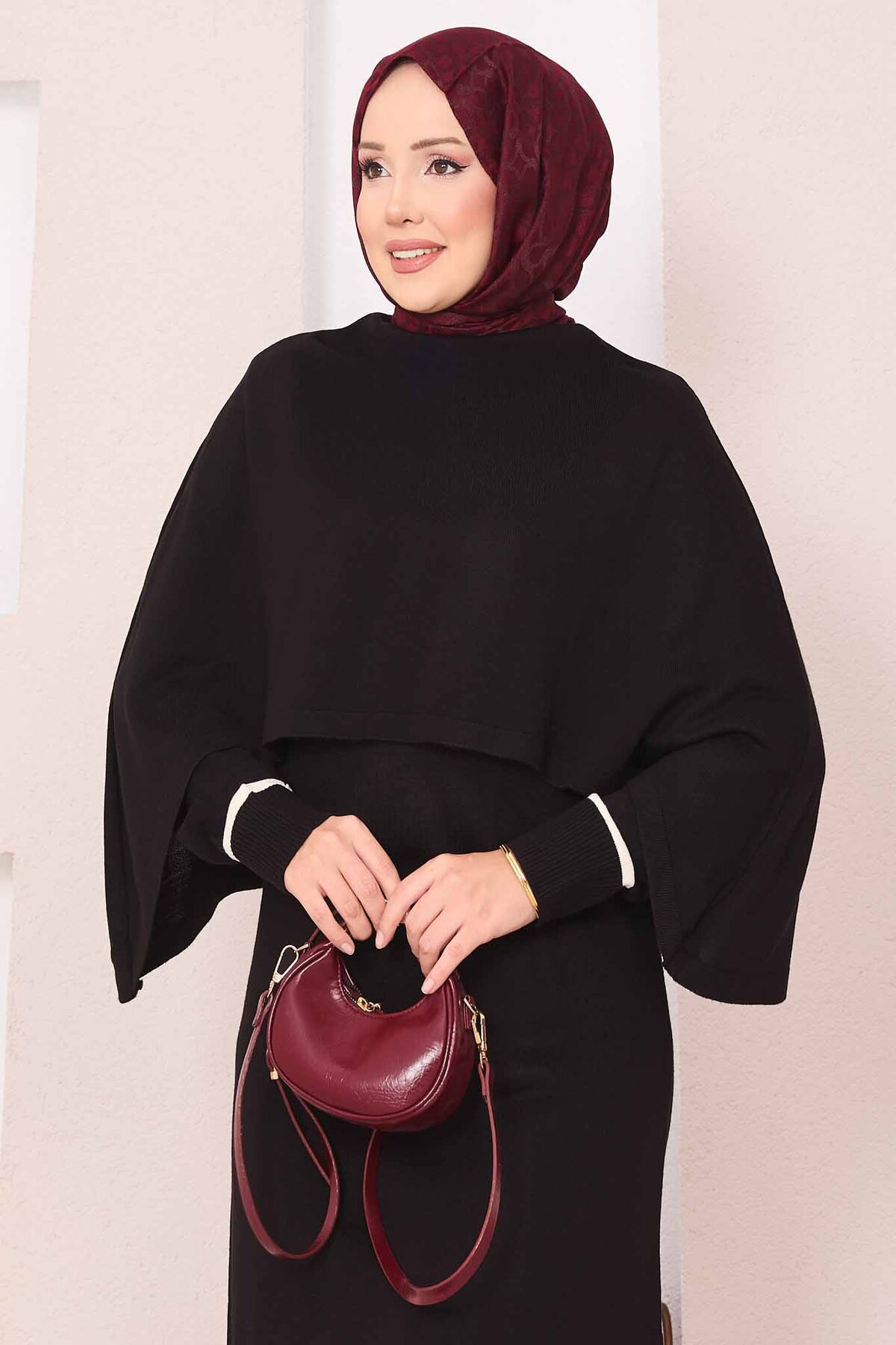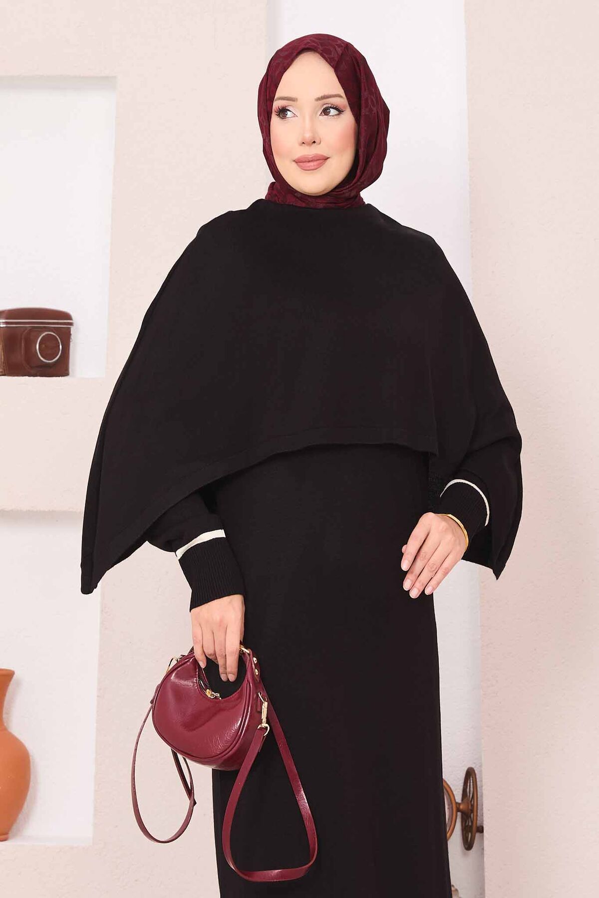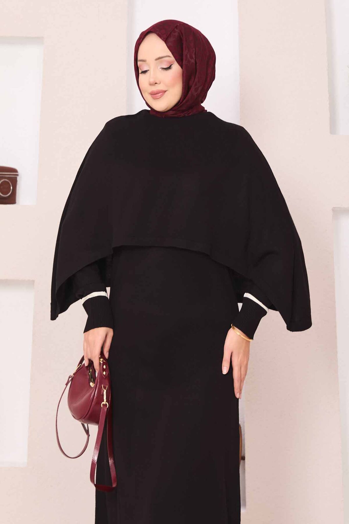 Şallı Çizgi Detaylı Tesettür Triko Elbise Siyah Yorumları