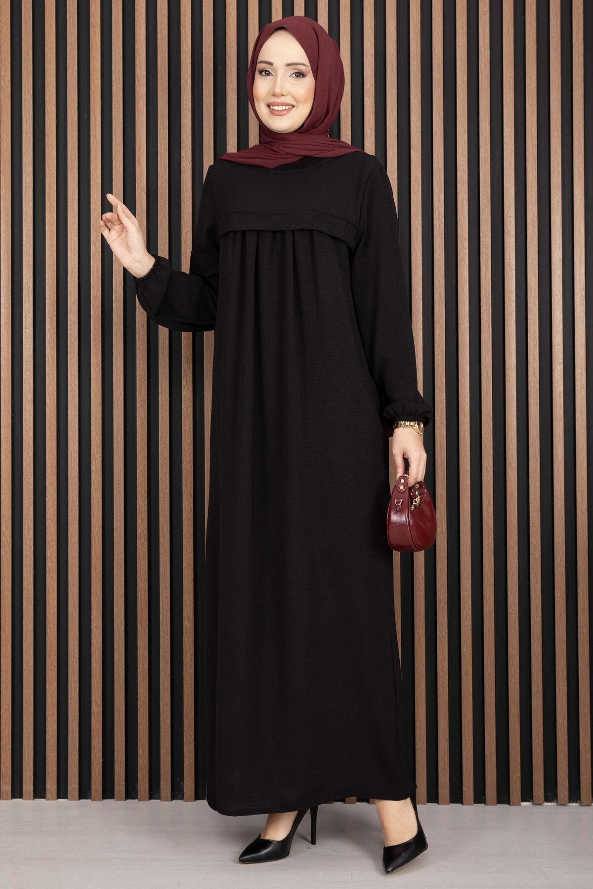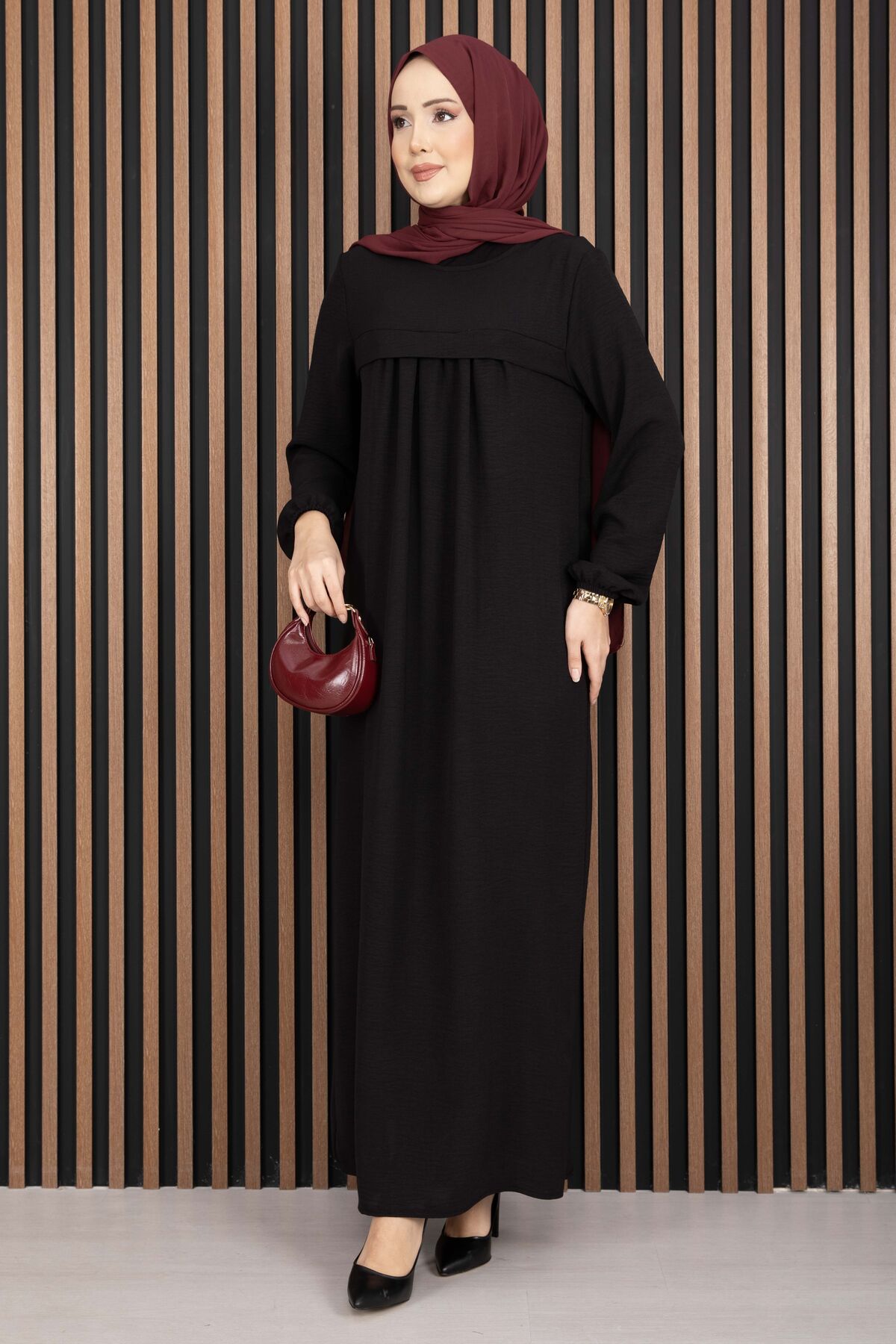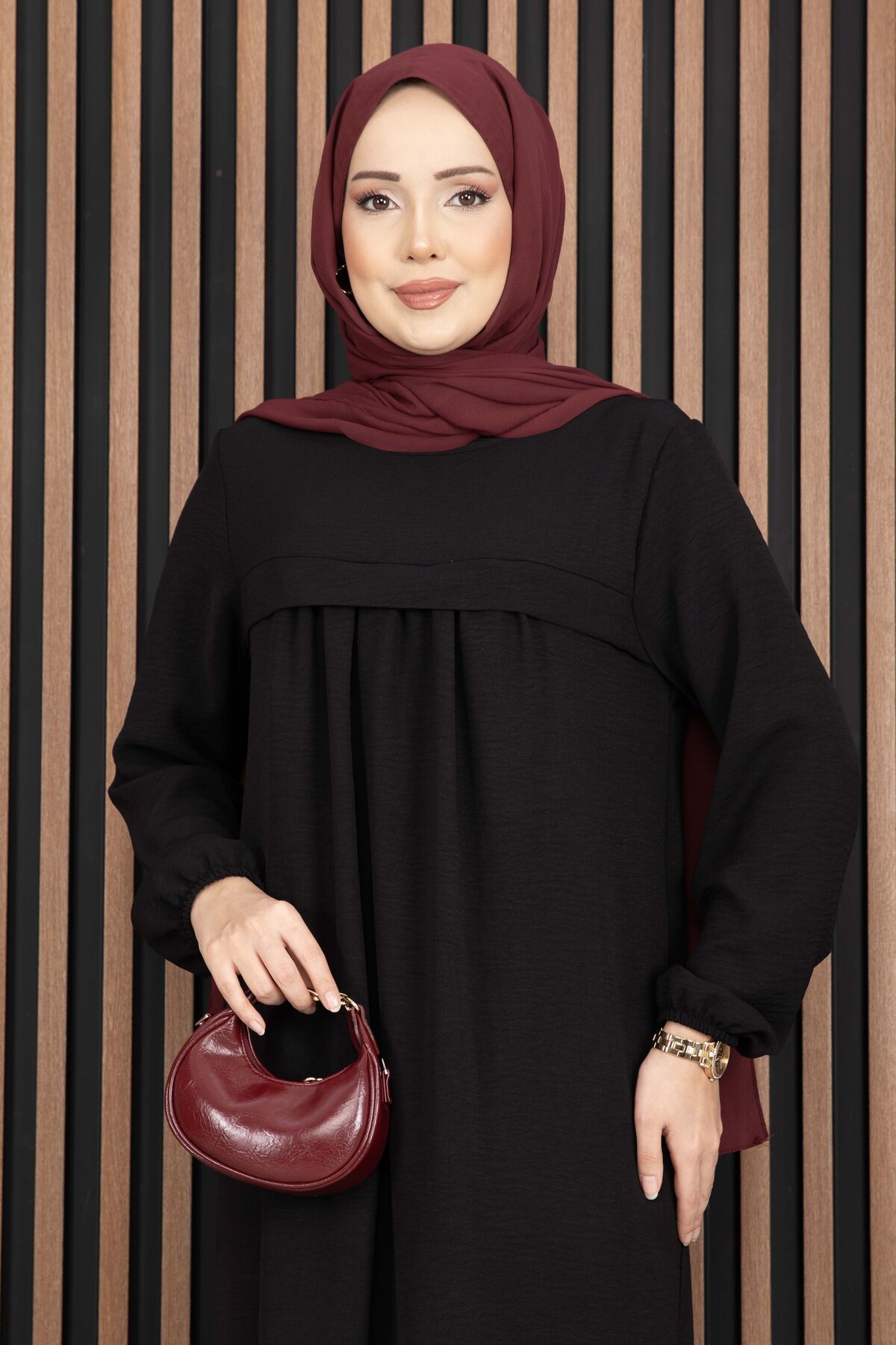 Zarif ve modern tasarımıyla öne çıkan Sare Roba Detaylı Tesettür Elbise, günlük kullanımda ve özel günlerde şık bir görünüm sunar. Akıcı duruşu ve rahat kalıbı sayesinde gün boyu konfor sağlar.
