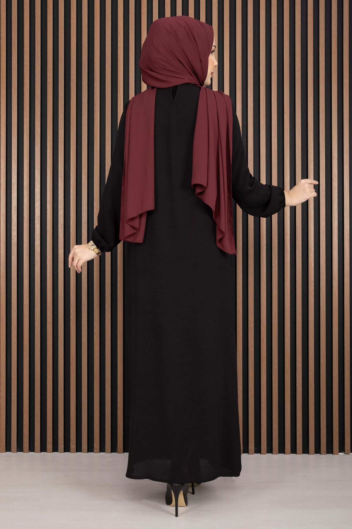 Sare Roba Detaylı Tesettür Elbise Siyah