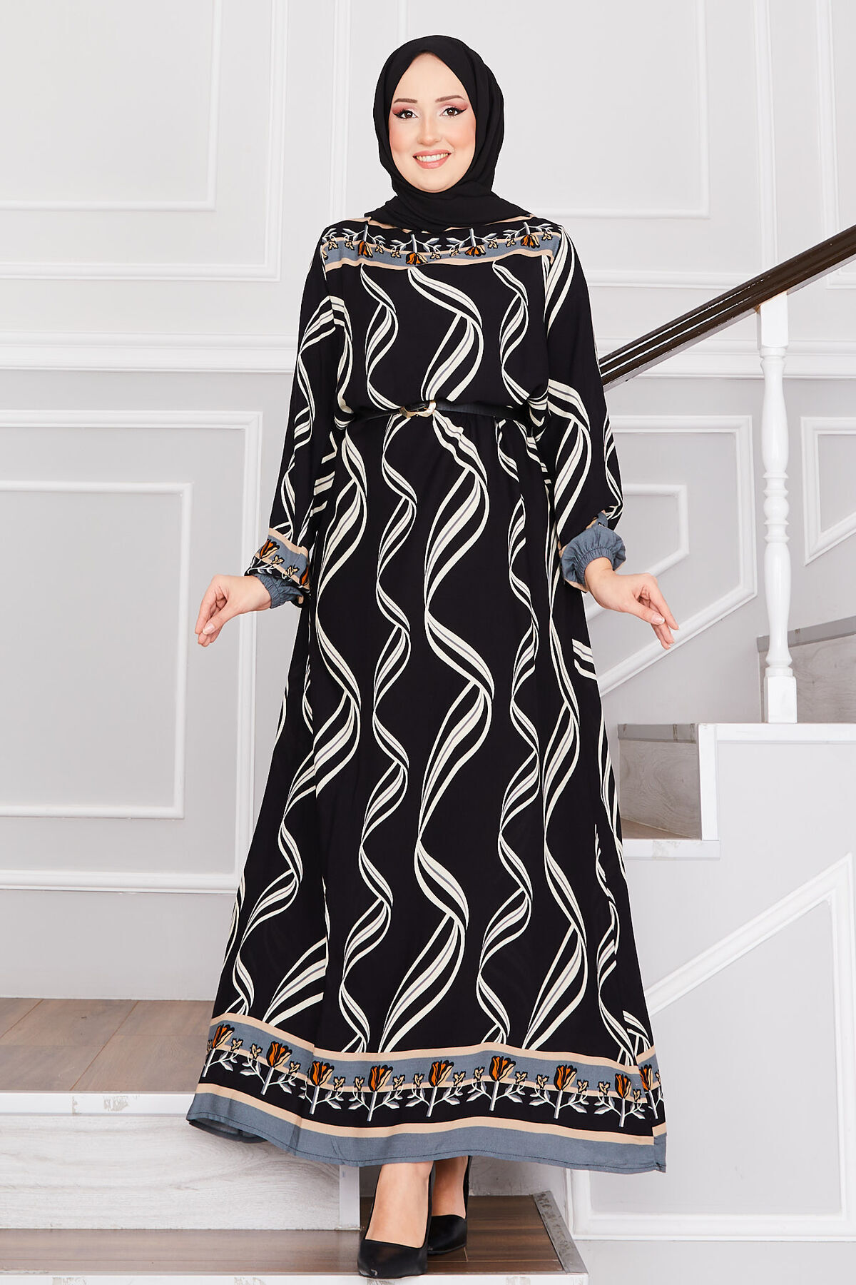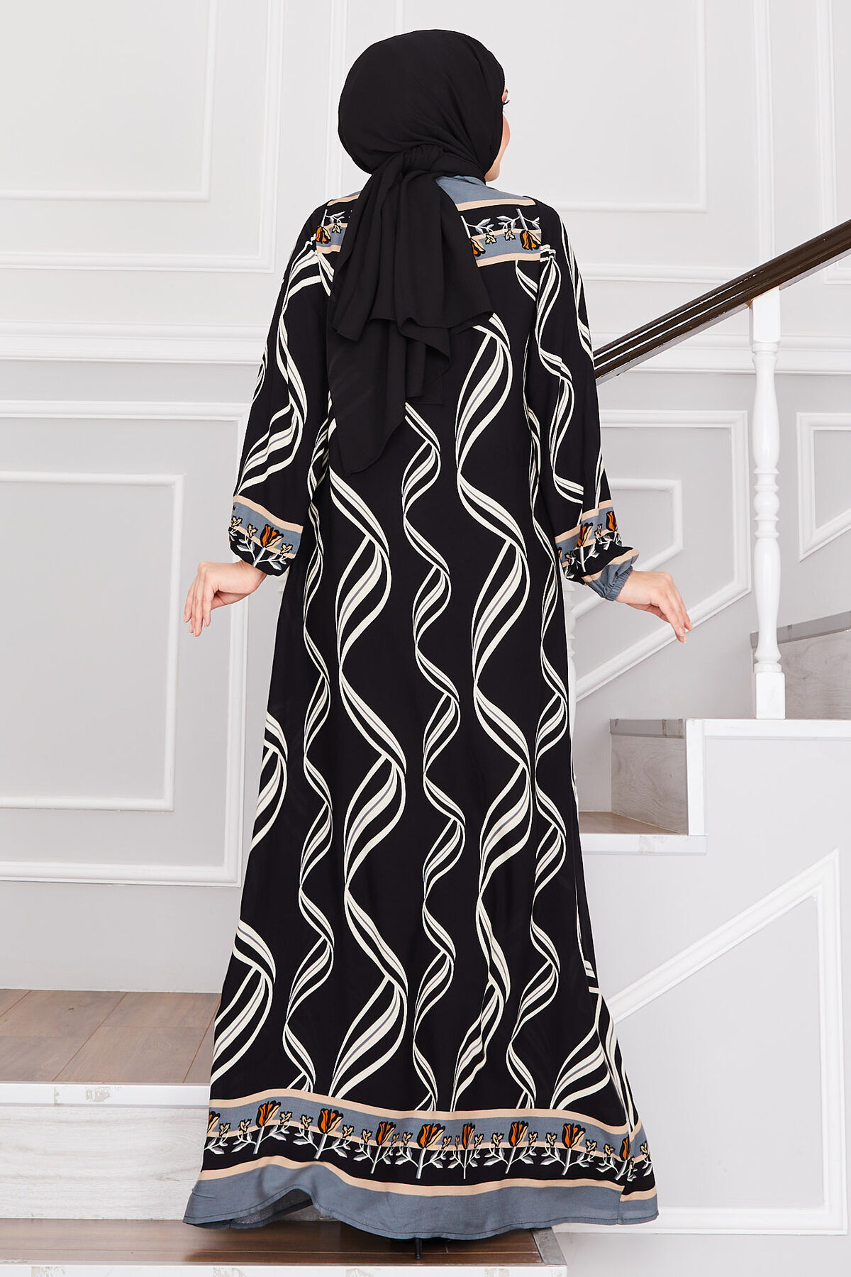 Sarmaşık Desenli Tesettür Elbise Siyah