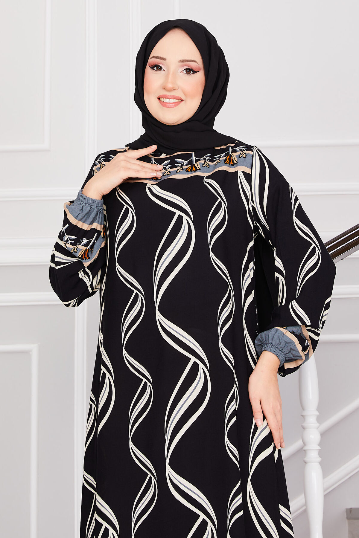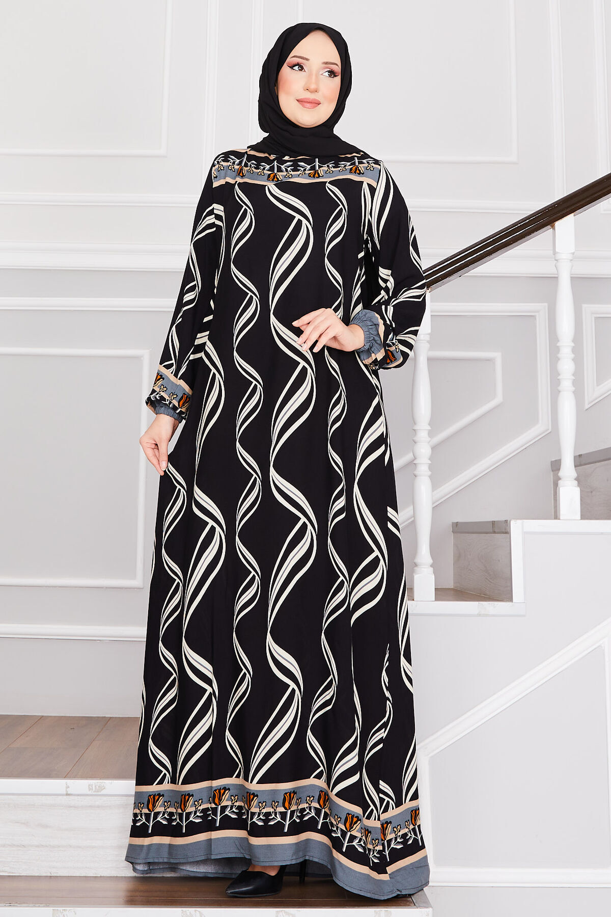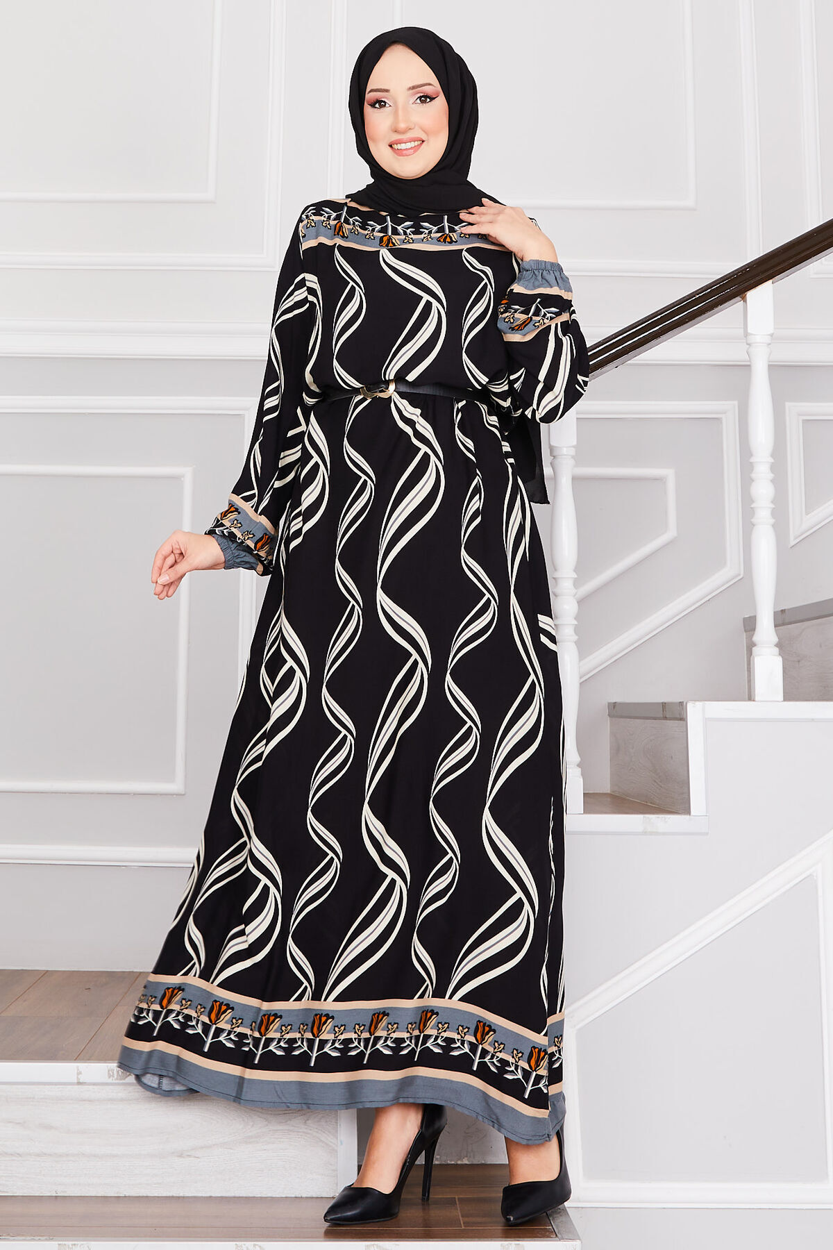 Sarmaşık Desenli Tesettür Elbise Siyah Yorumları
