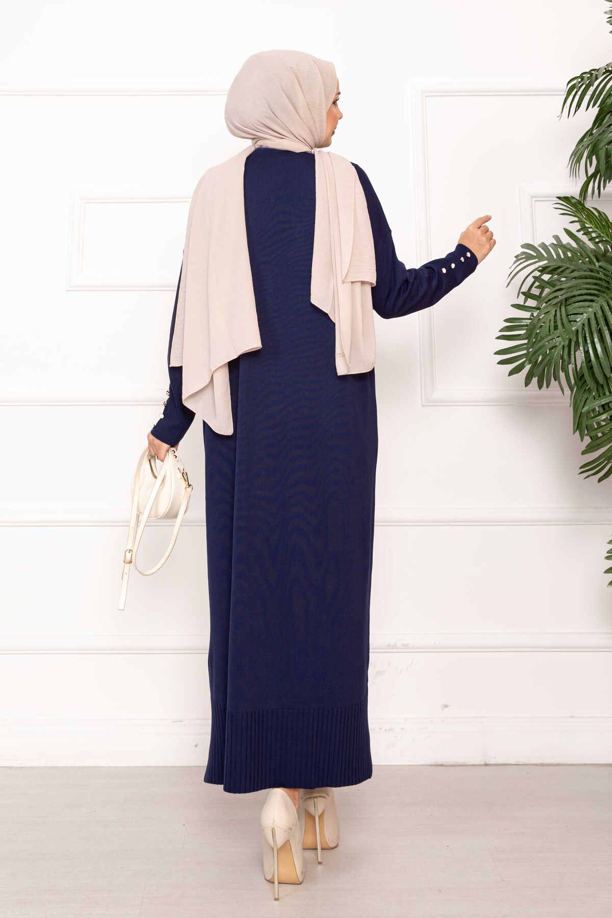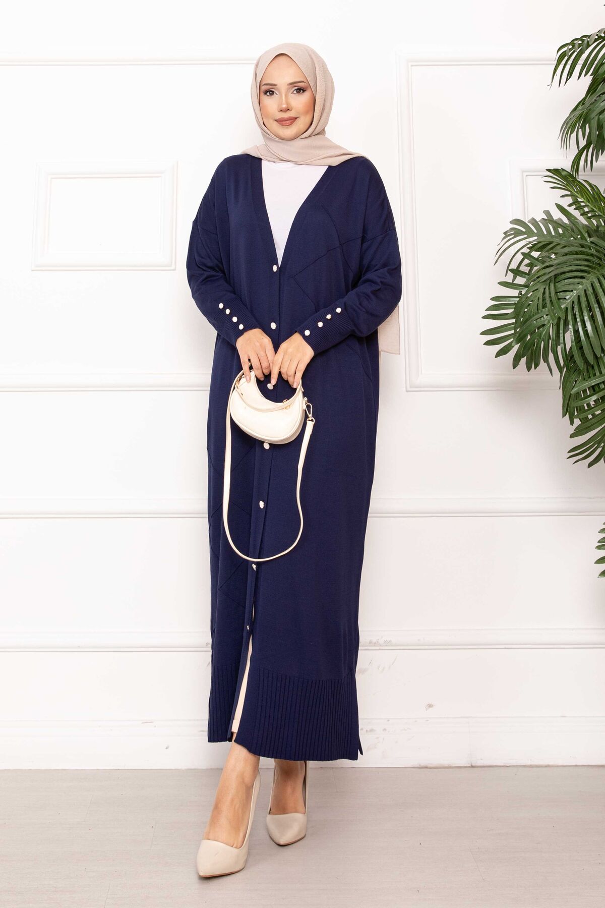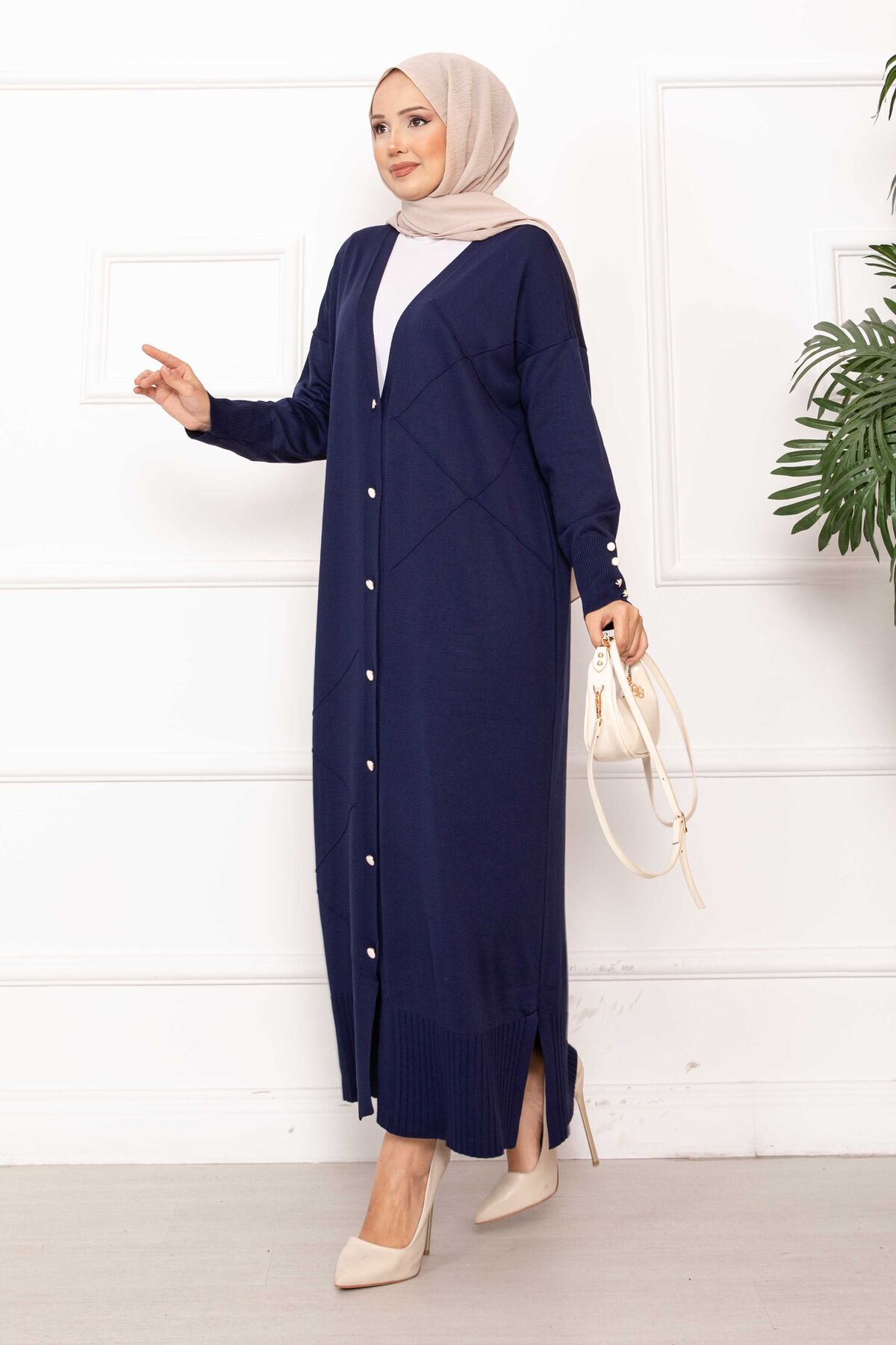 Sedef Düğmeli Uzun Triko Hırka Lacivert