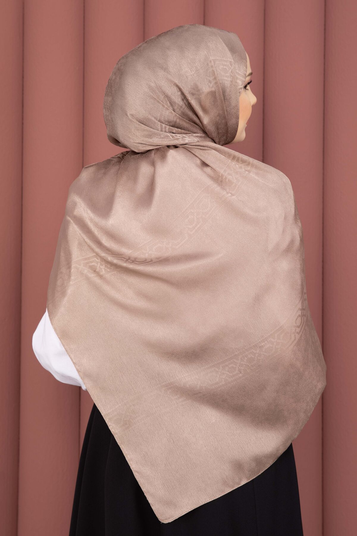 Şerit Detaylı Jakar Şal Serisi Vizon