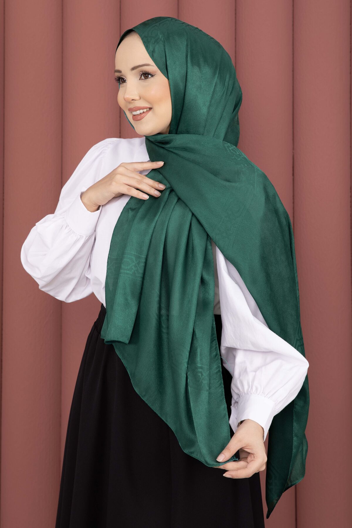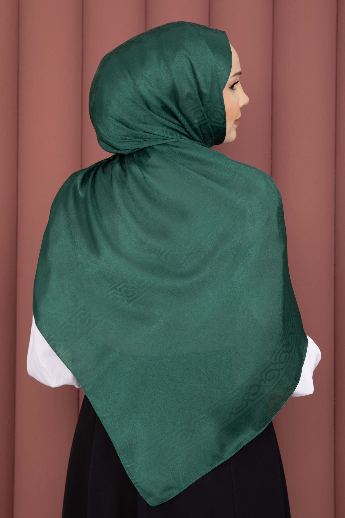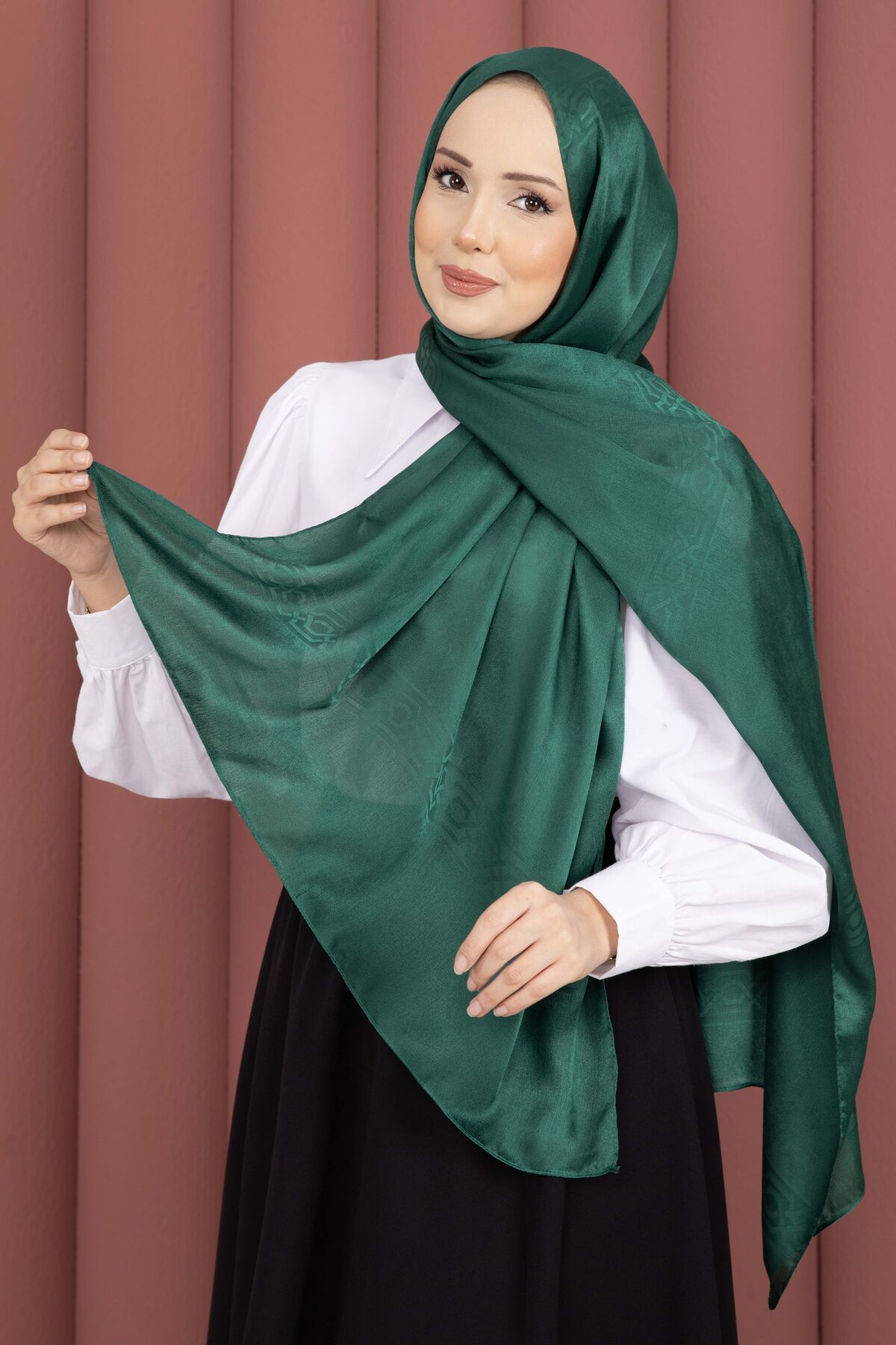 Şerit Detaylı Jakar Şal Serisi Zümrüt