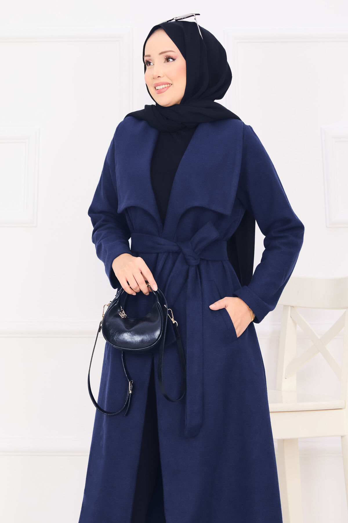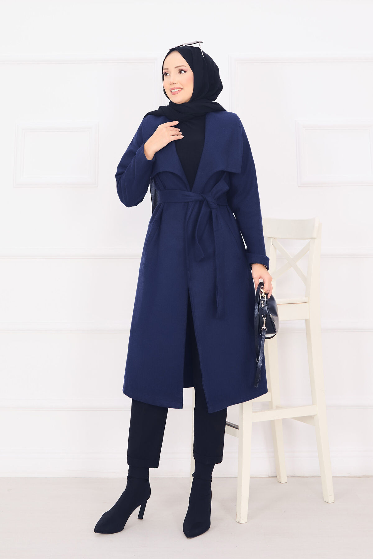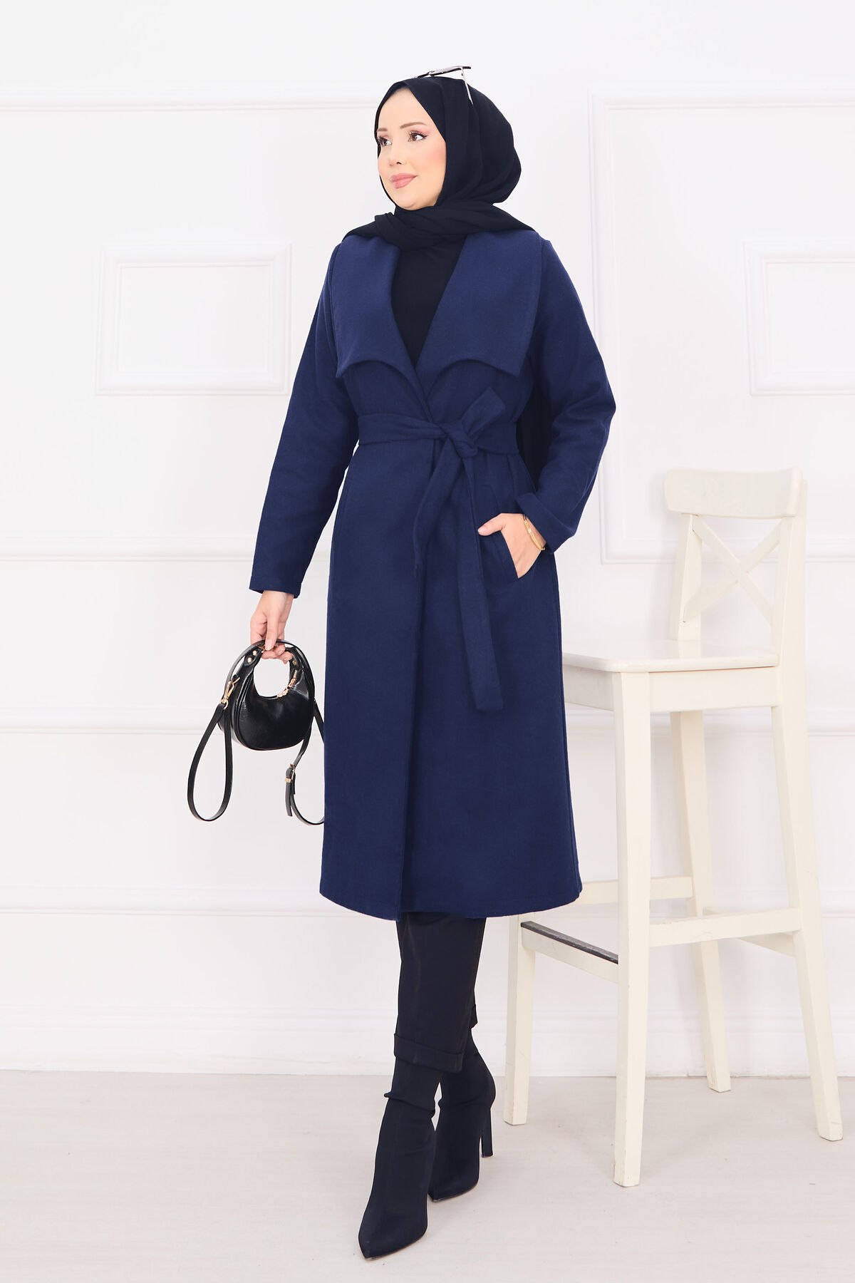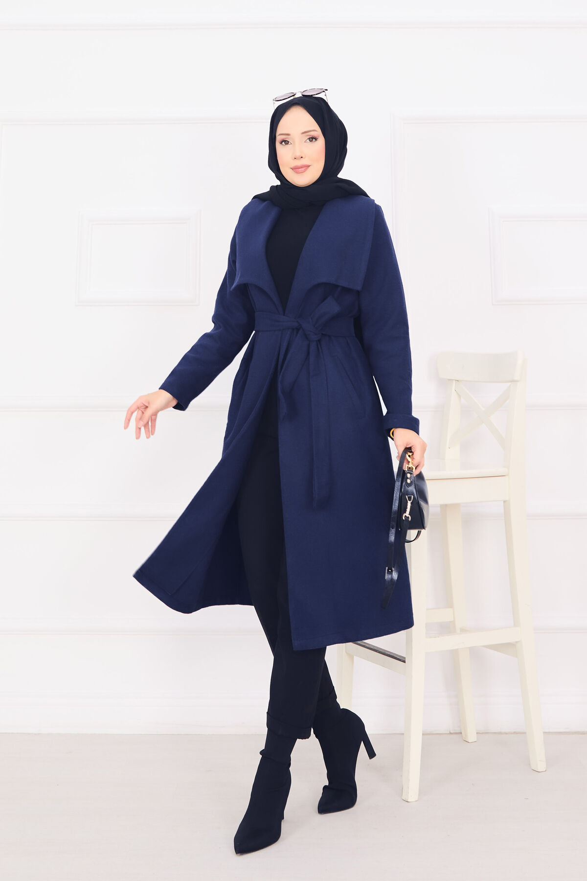 Seyyar Kuşaklı Şal Yaka Kaşe Kaban Lacivert Yorumları
