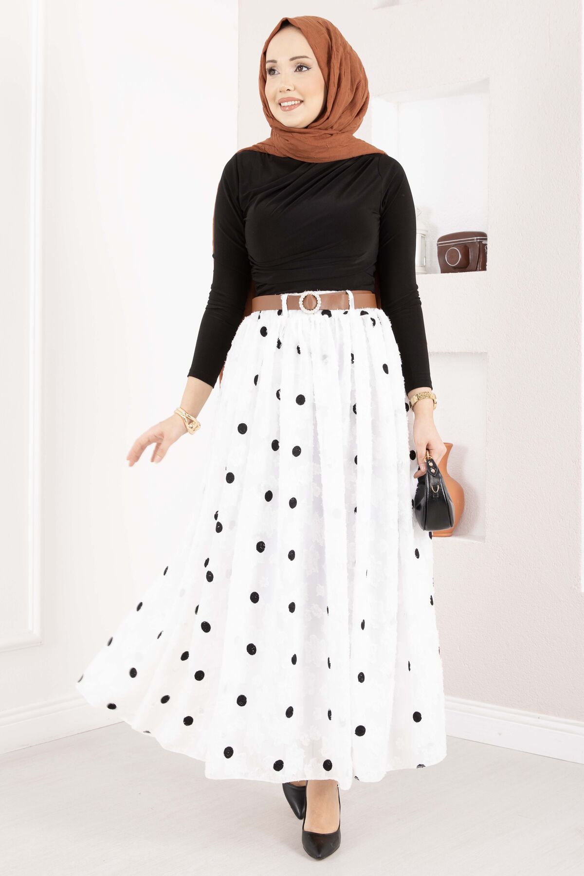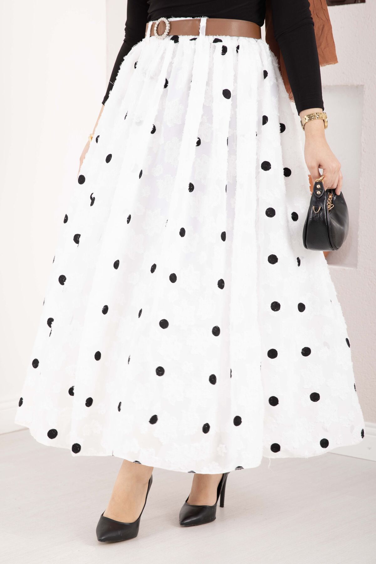 Şifon Puantiyeli Balon Etek Beyaz