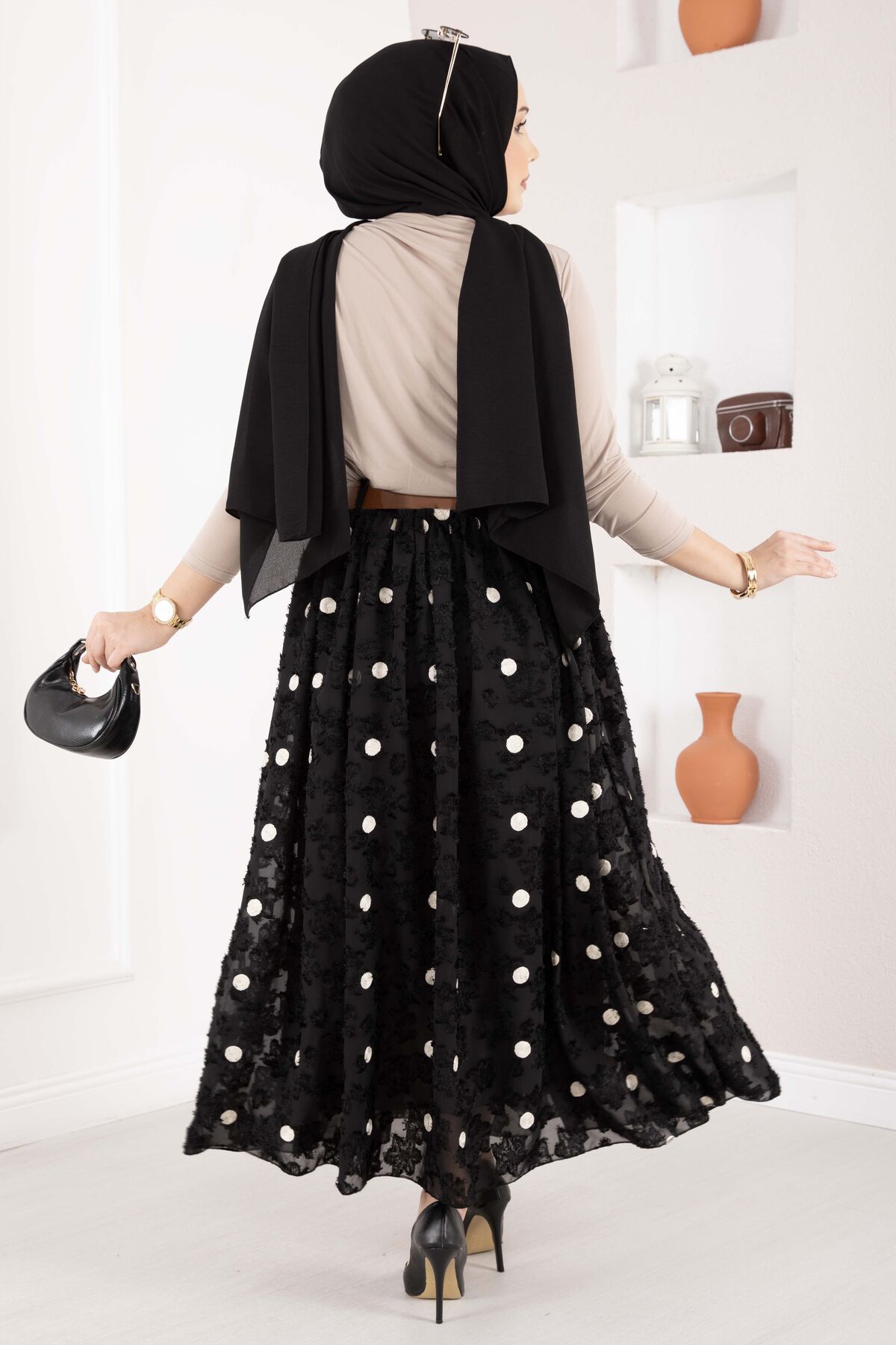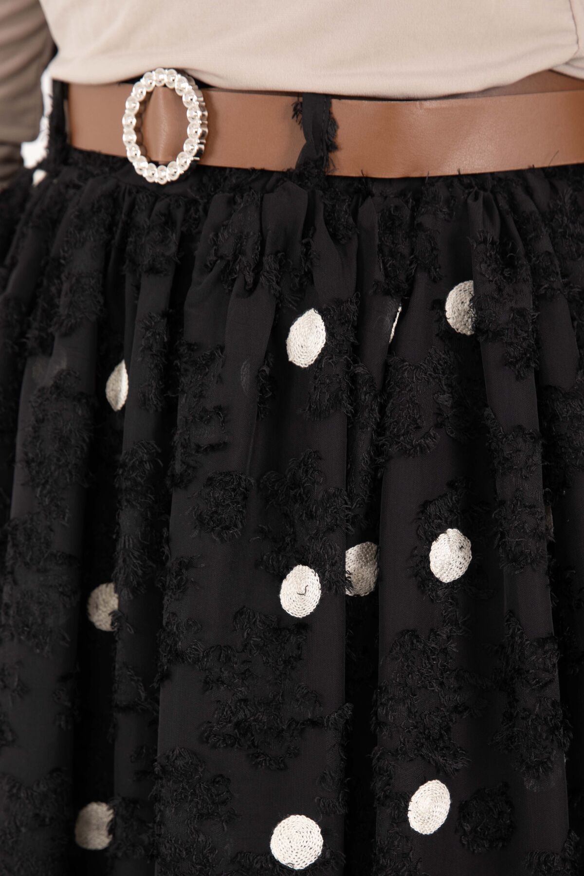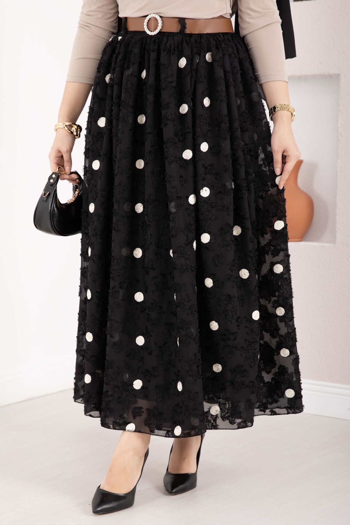 Şifon Puantiyeli Balon Etek Siyah