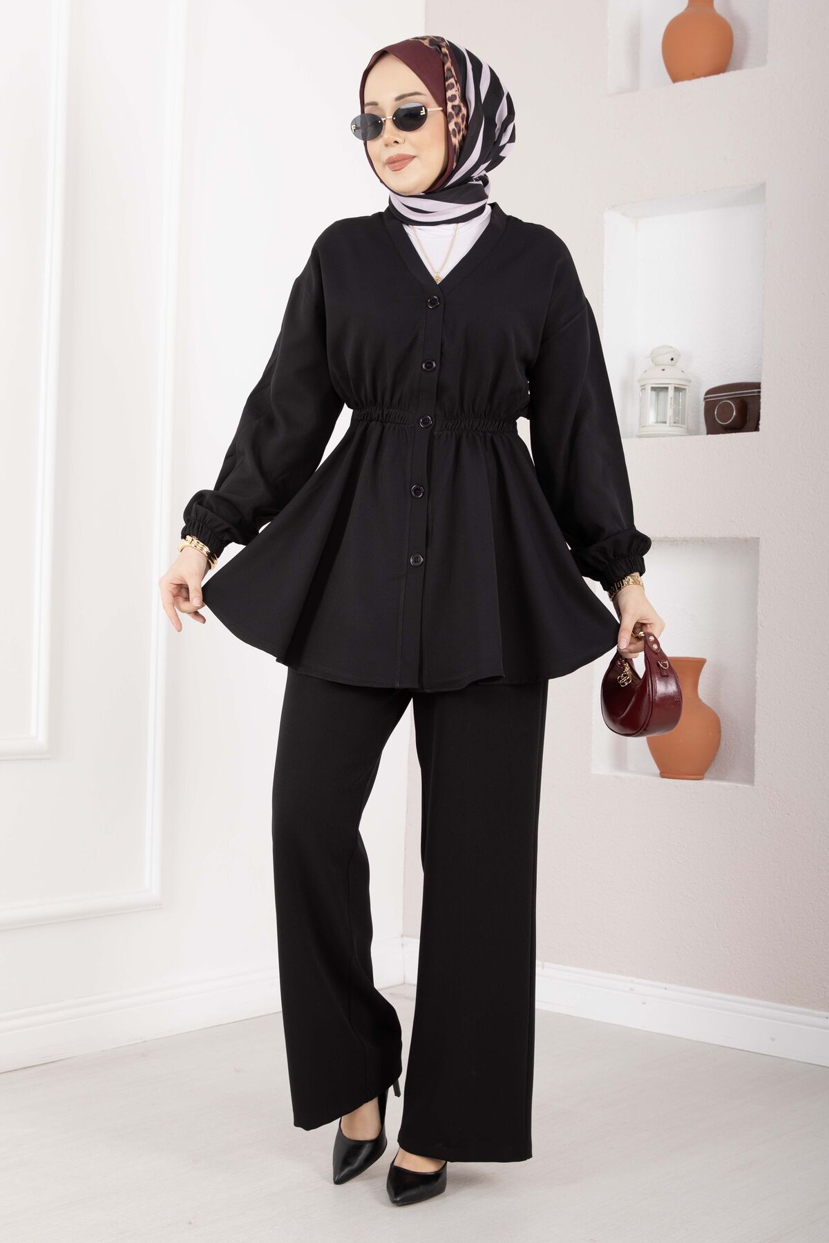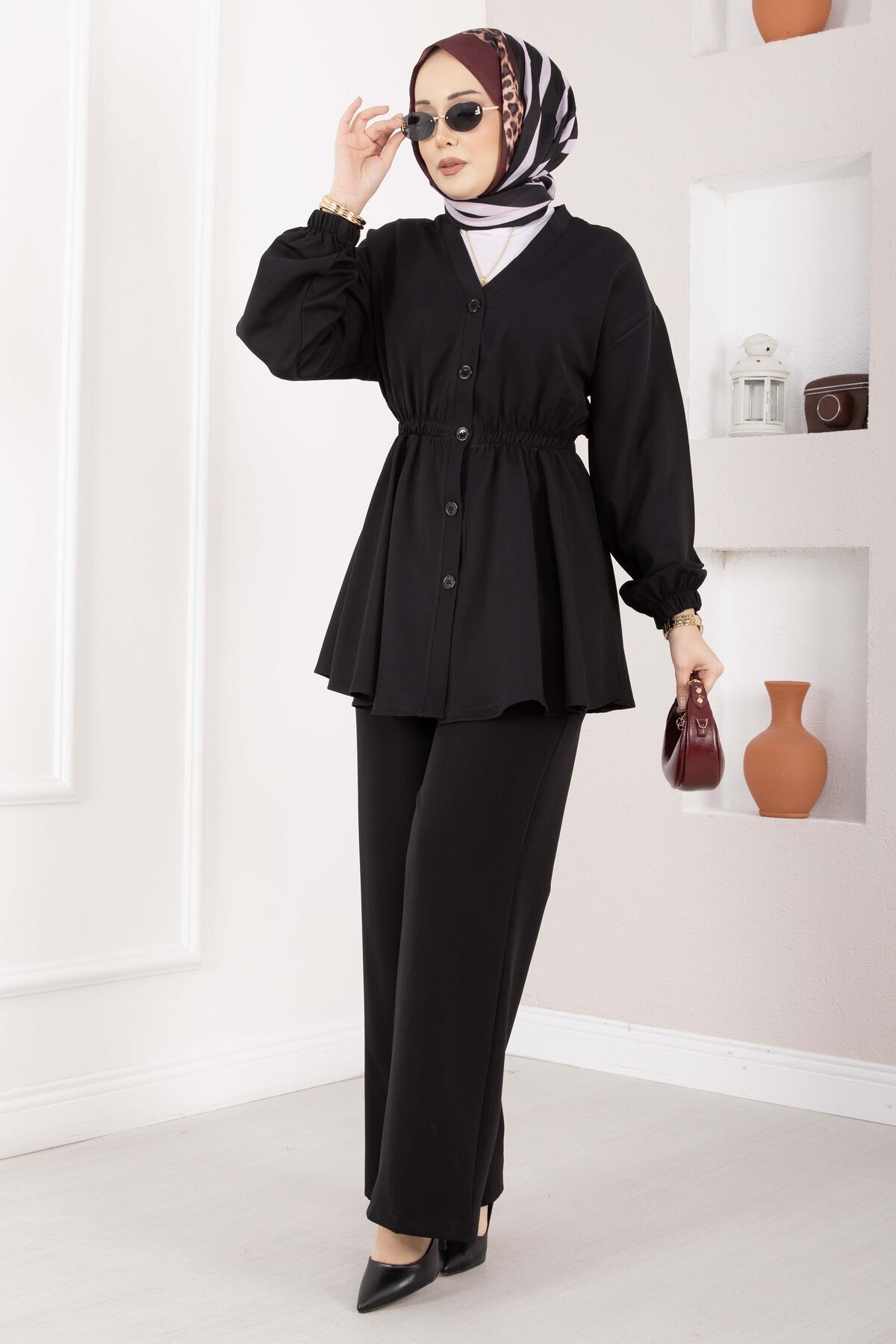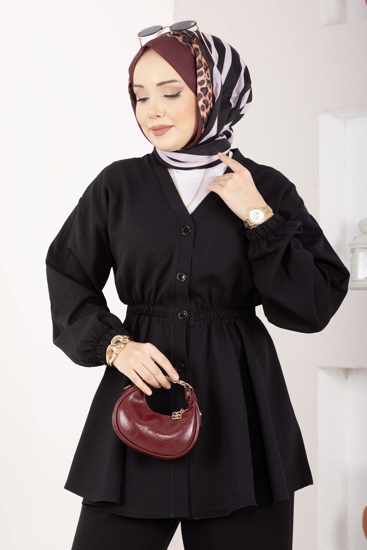 Şıklık ve konforu bir arada sunan Silva Beli Büzgülü Tunik Takım, modern ve zarif tasarımıyla günlük kombinlerinize estetik bir dokunuş katar. Önden düğmeli tunik modeli ve beli büzgülü yapısı sayesinde hem feminen hem de rahat bir duruş sunar. Gün boyu konforlu kullanım sağlar.