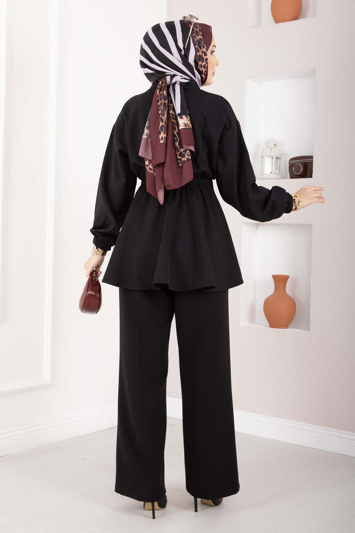 Tunik ve pantolon olmak üzere iki parçadan oluşur