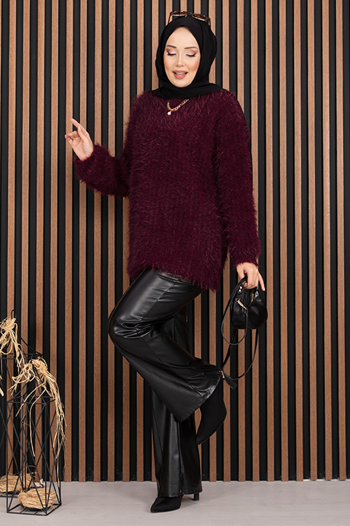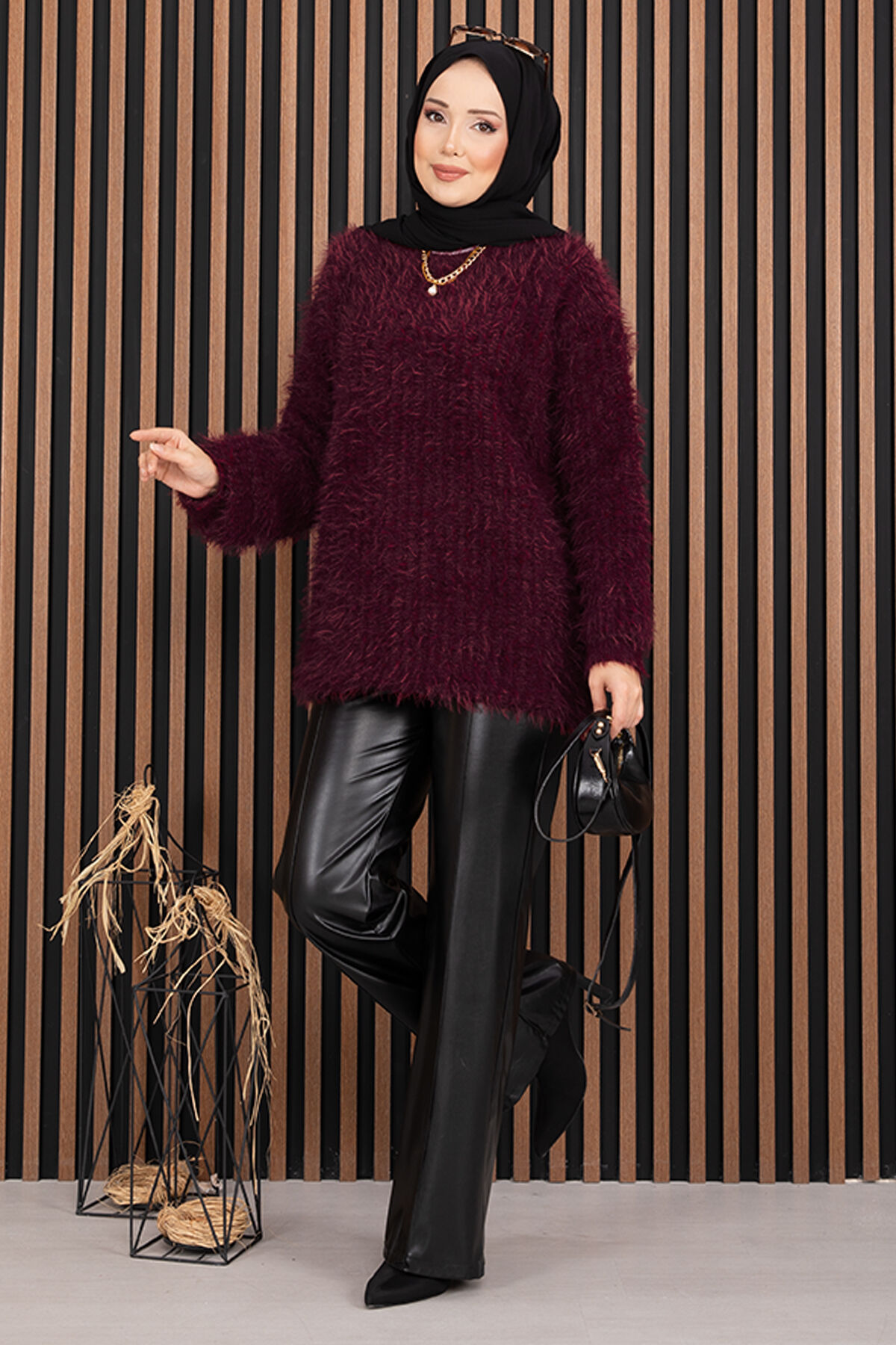 Softy Peluş Dokulu Triko Kazak Bordo