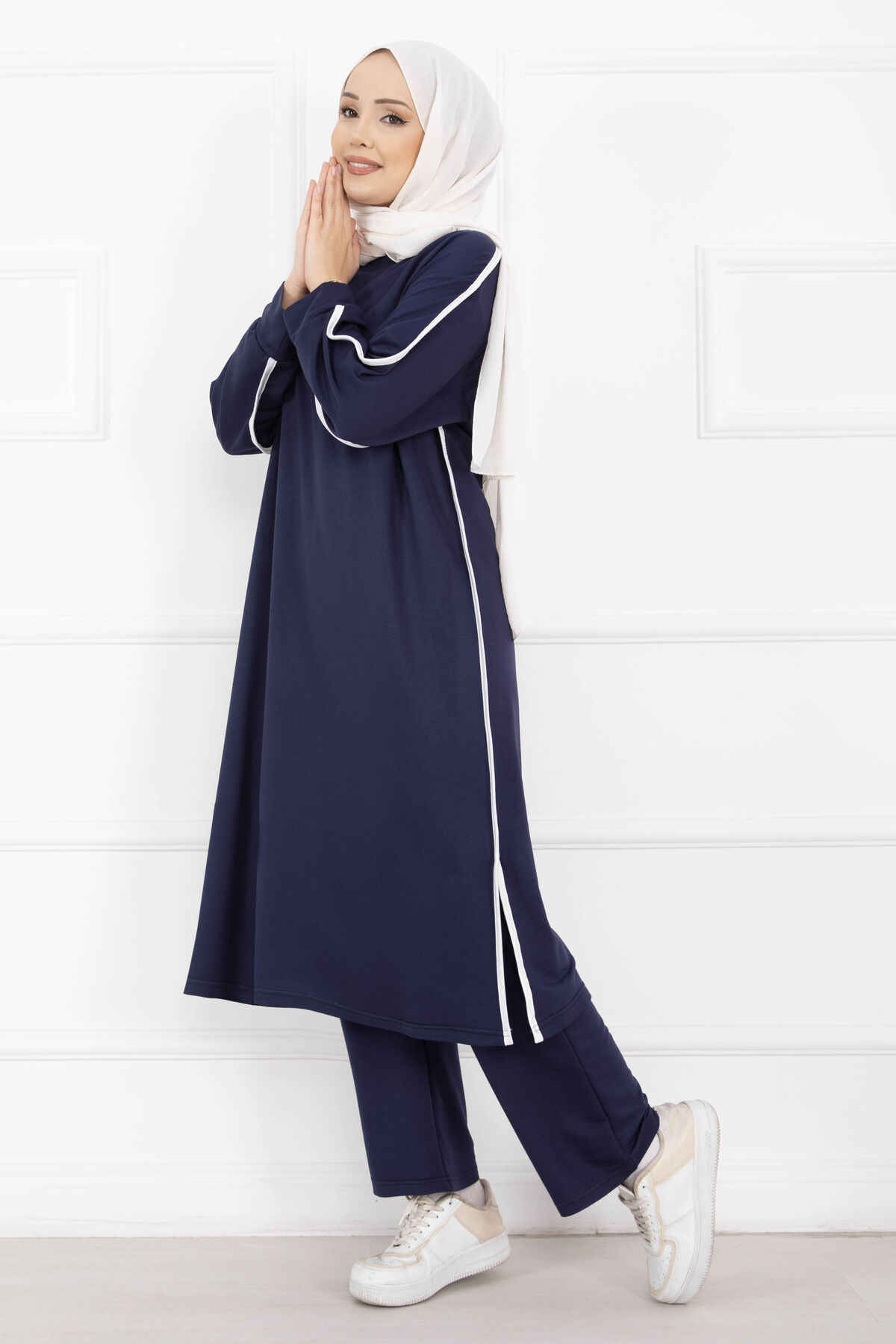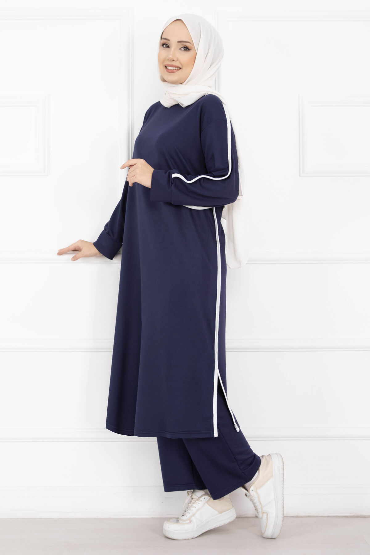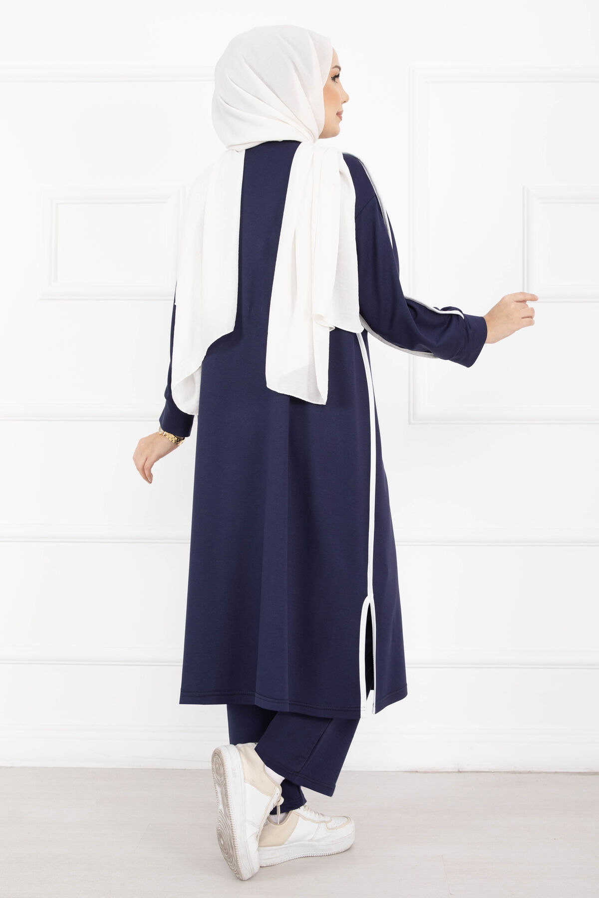 Sportif Biye Detaylı Uzun Tesettür Takım Lacivert