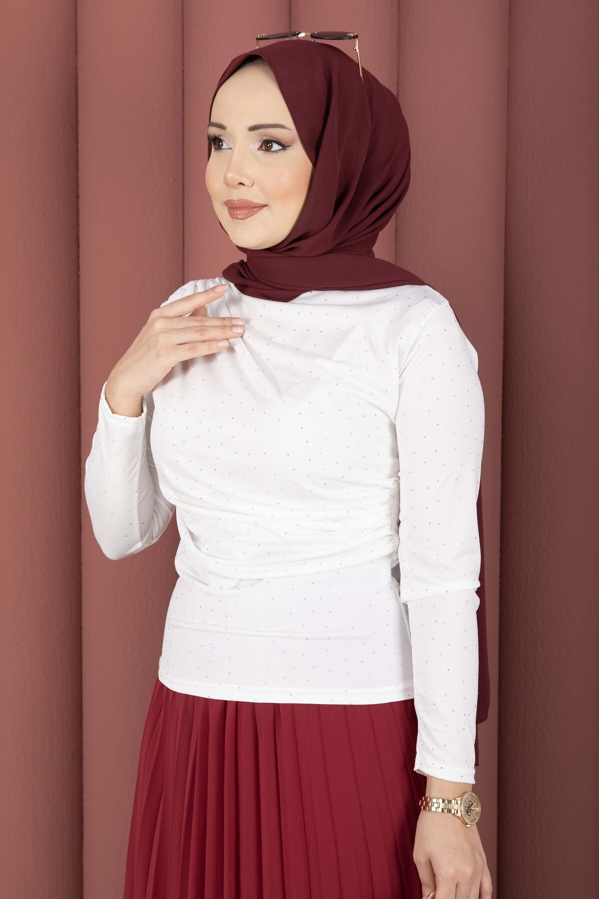 Taş Detaylı Sandy Body Ekru