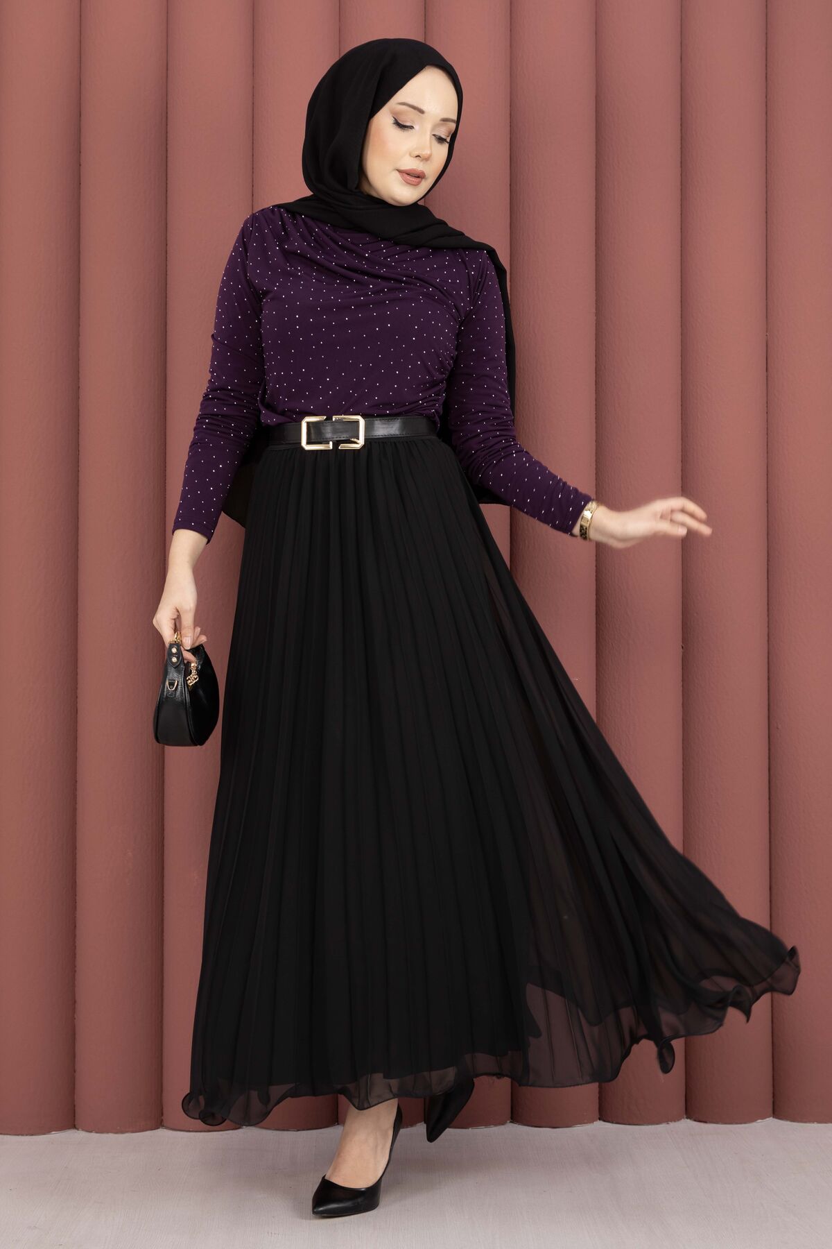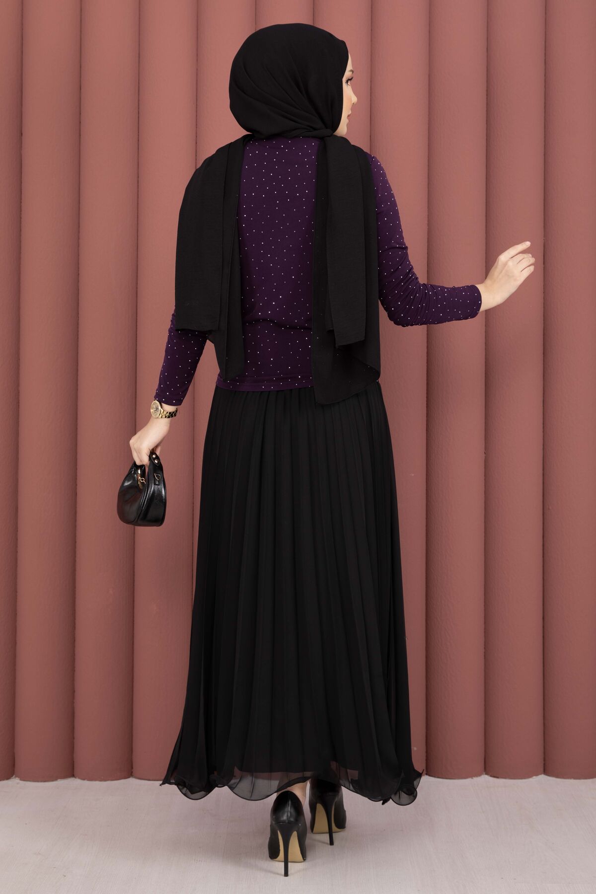 Taş Detaylı Sandy Body Mürdüm