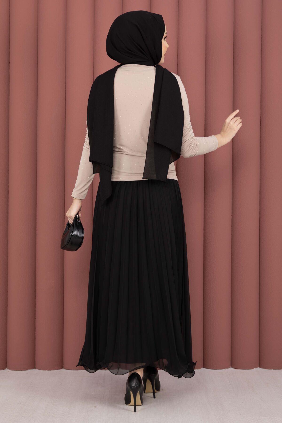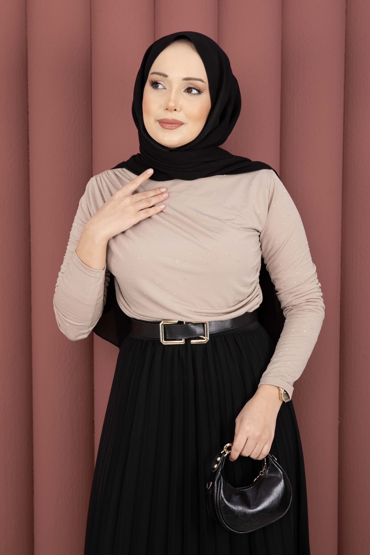 Vücuda oturan yapısı ve esnek sandy kumaşı sayesinde konforlu bir kullanım sunar. Hem etek hem pantolon kombinlerinde rahatlıkla tercih edilebilir.