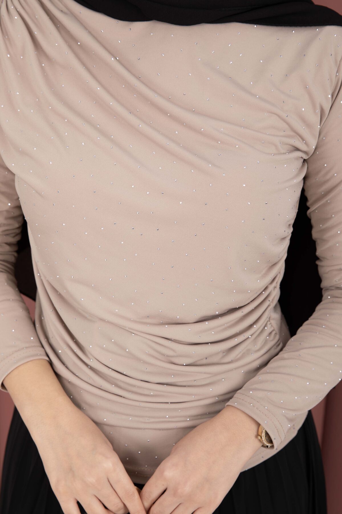 Şıklığı zarif detaylarla buluşturan Taş Detaylı Sandy Body, tek omuz tasarımı ve omuz büzgü pilise detayıyla modern ve iddialı bir duruş sunar. Üzerinde yer alan ışıltılı Swarovski taş detayları sayesinde özel gün ve davet kombinlerinde göz alıcı bir görünüm sağlar.