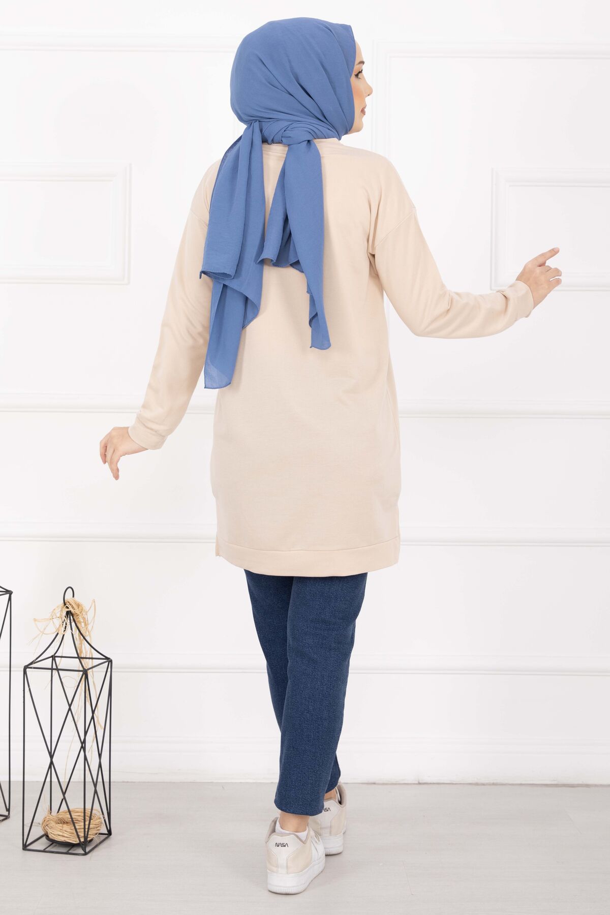 Taş İşlemeli Ponponlu Tesettür Tunik Bej Yorumları