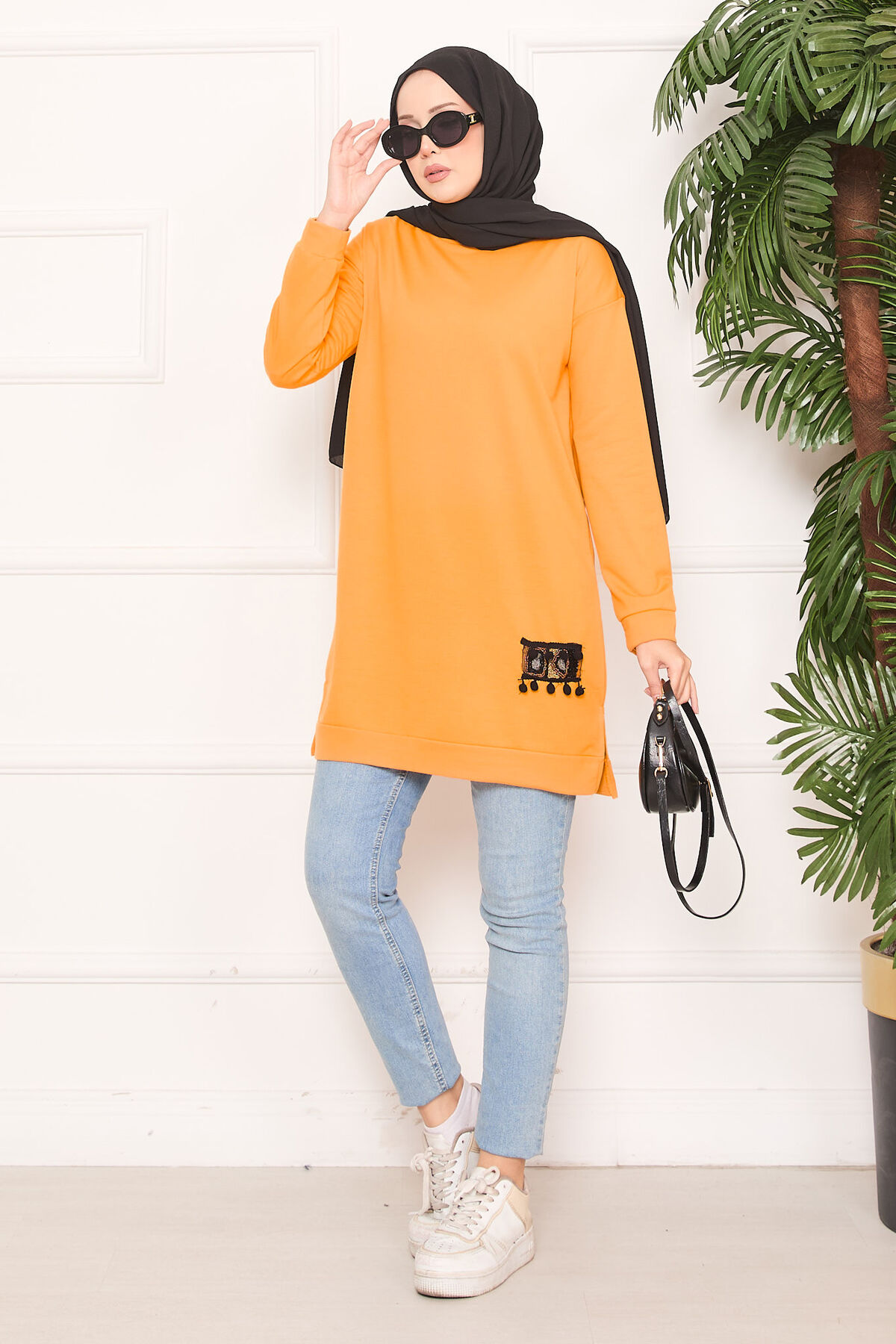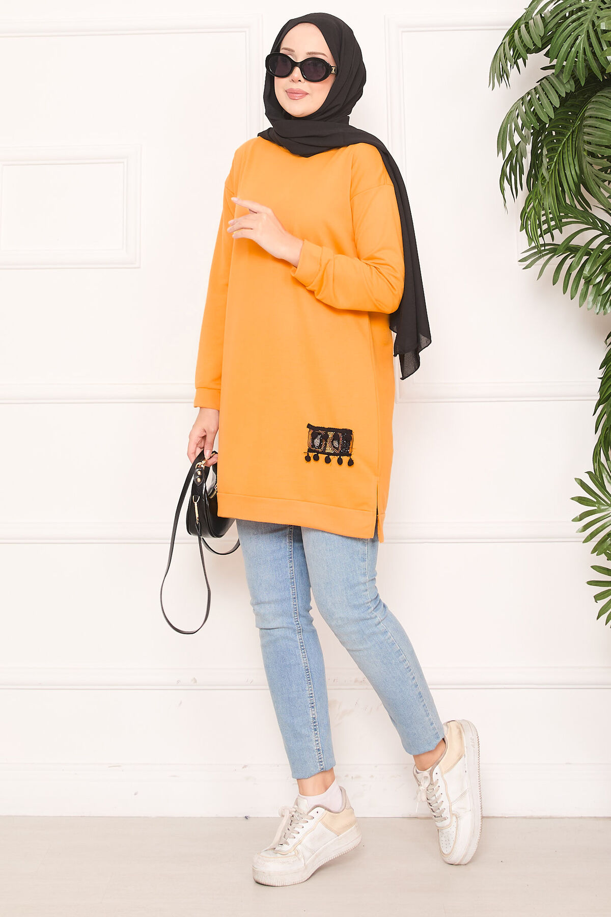 Taş İşlemeli Ponponlu Tesettür Tunik Hardal Yorumları