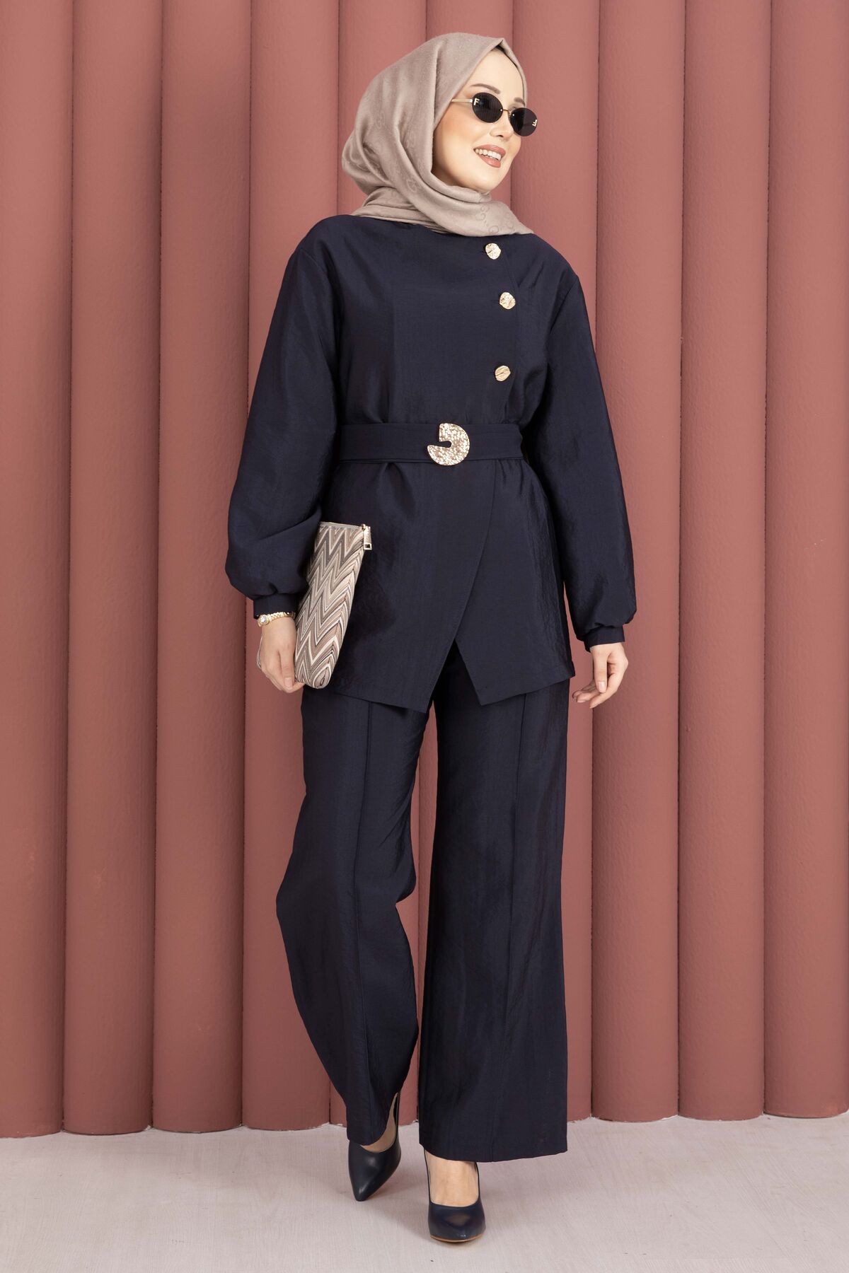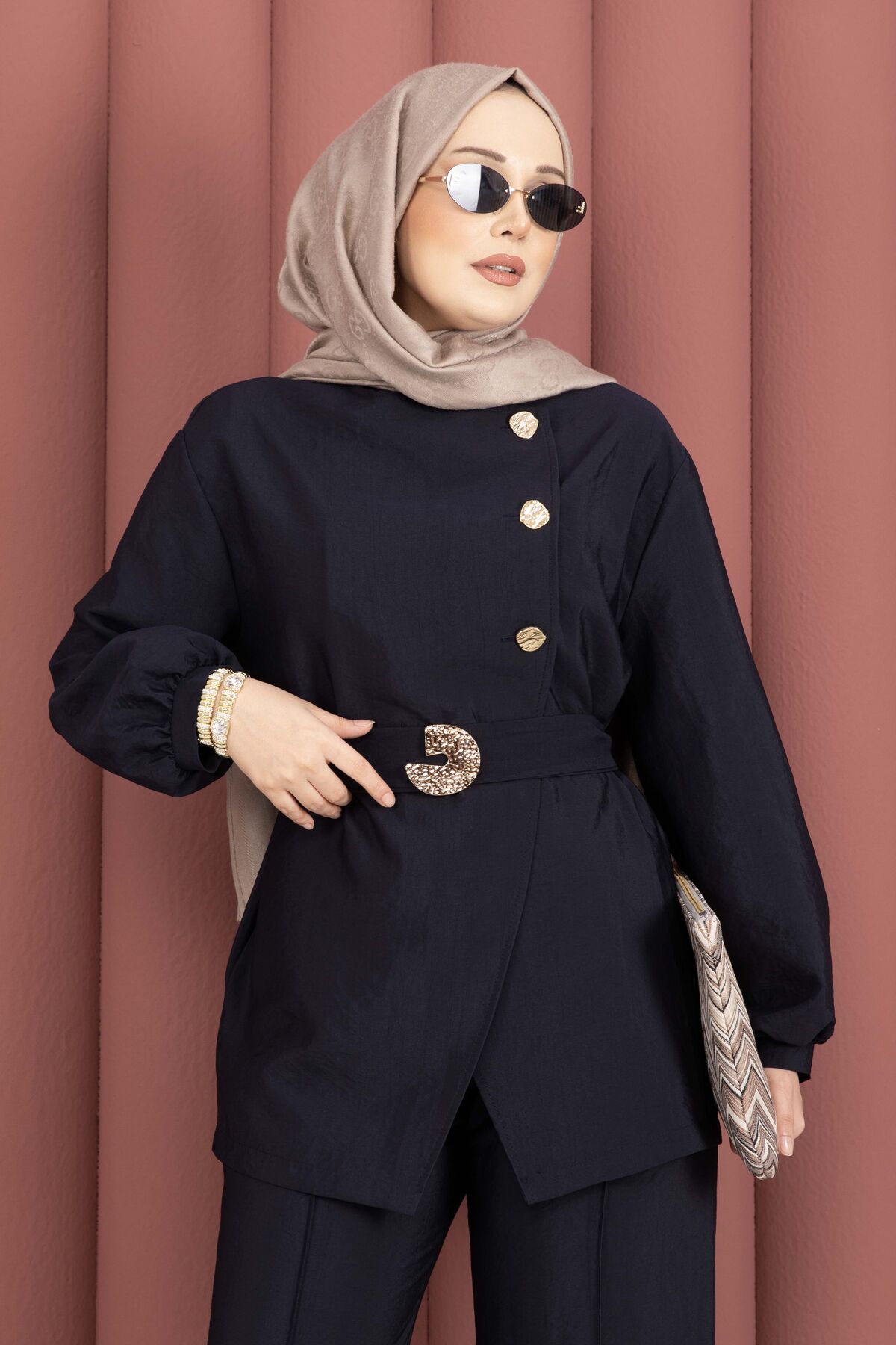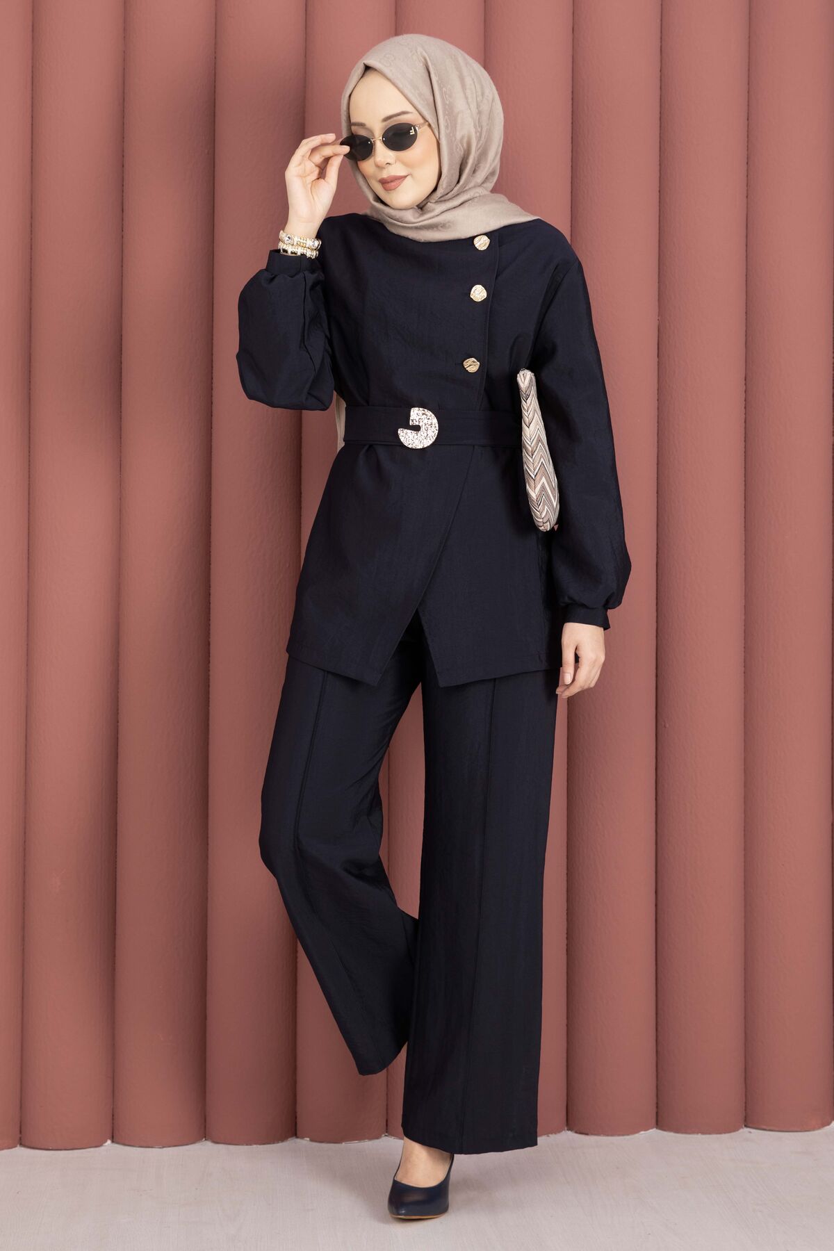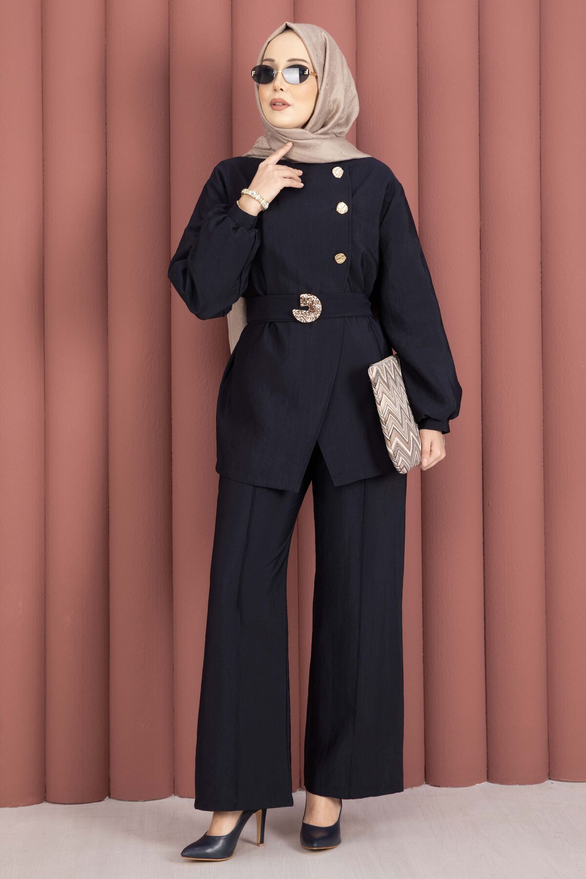 Tasarım Gold Düğmeli Kemerli İkili Takım Lacivert Yorumları