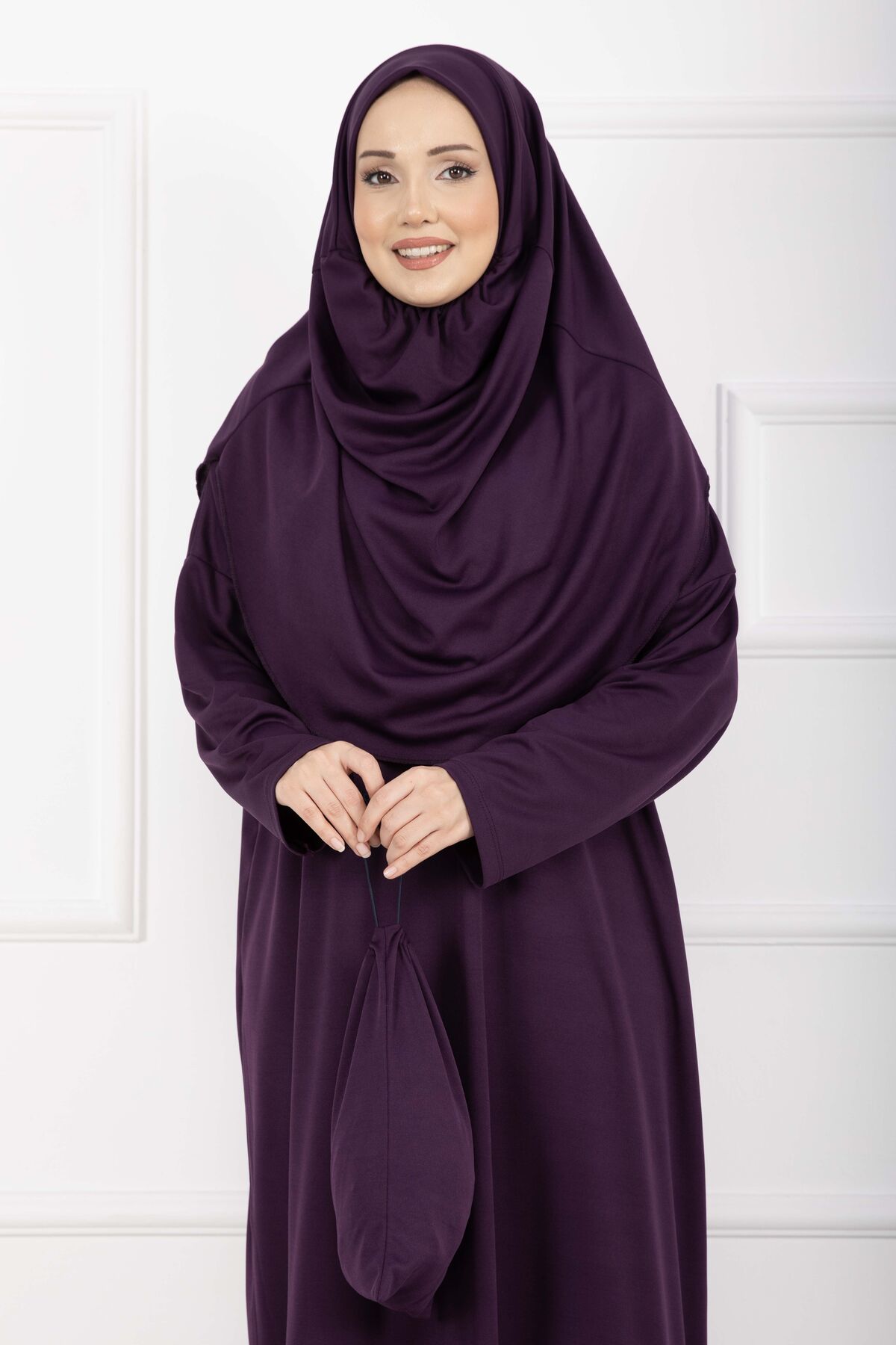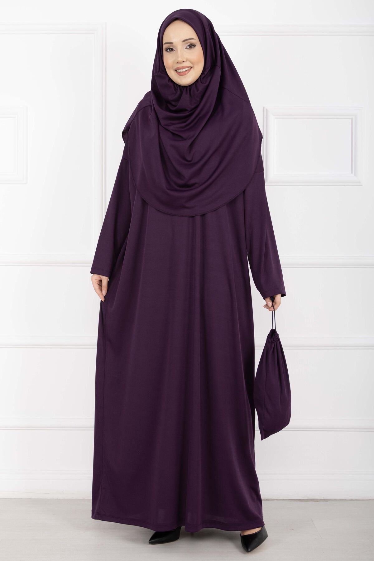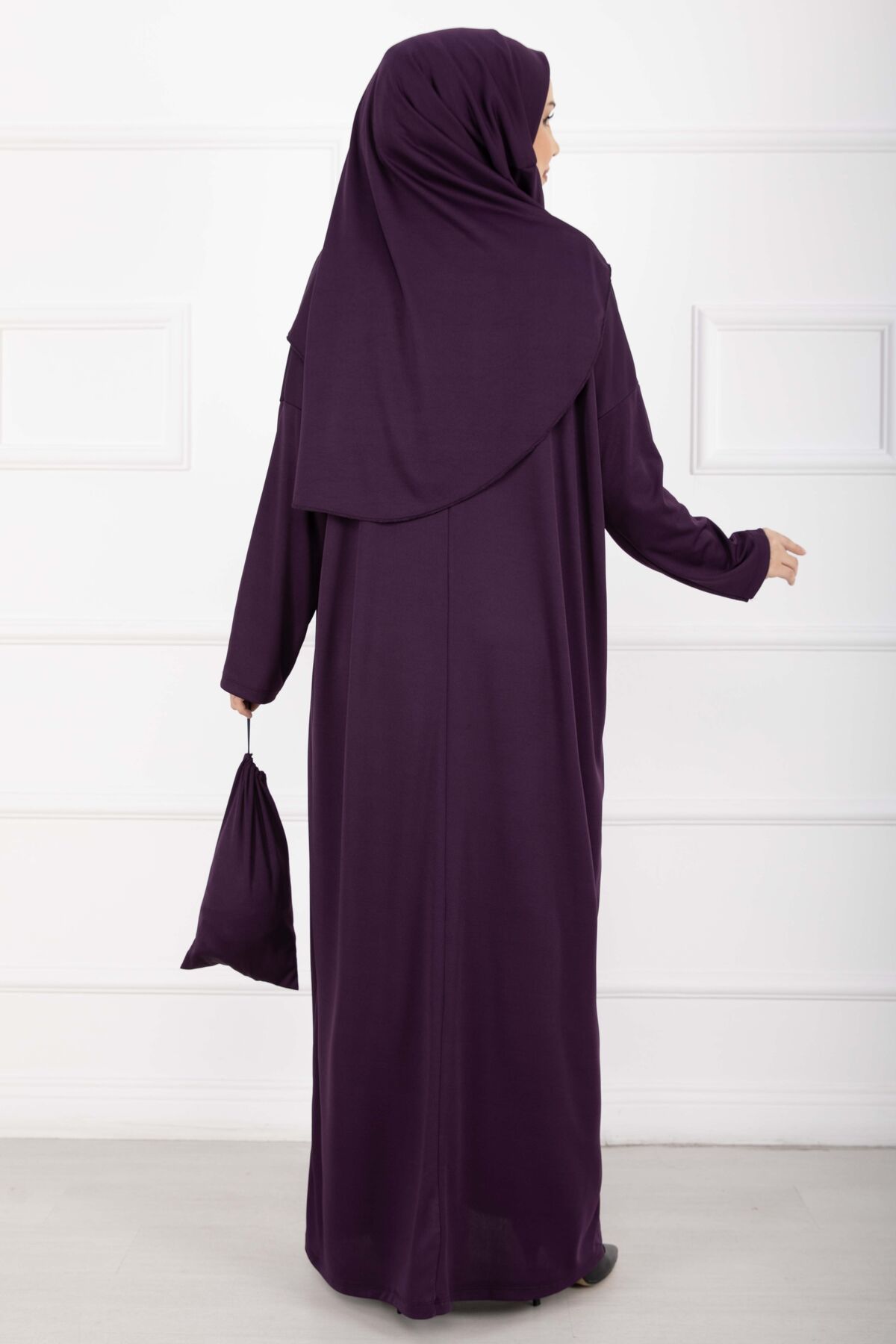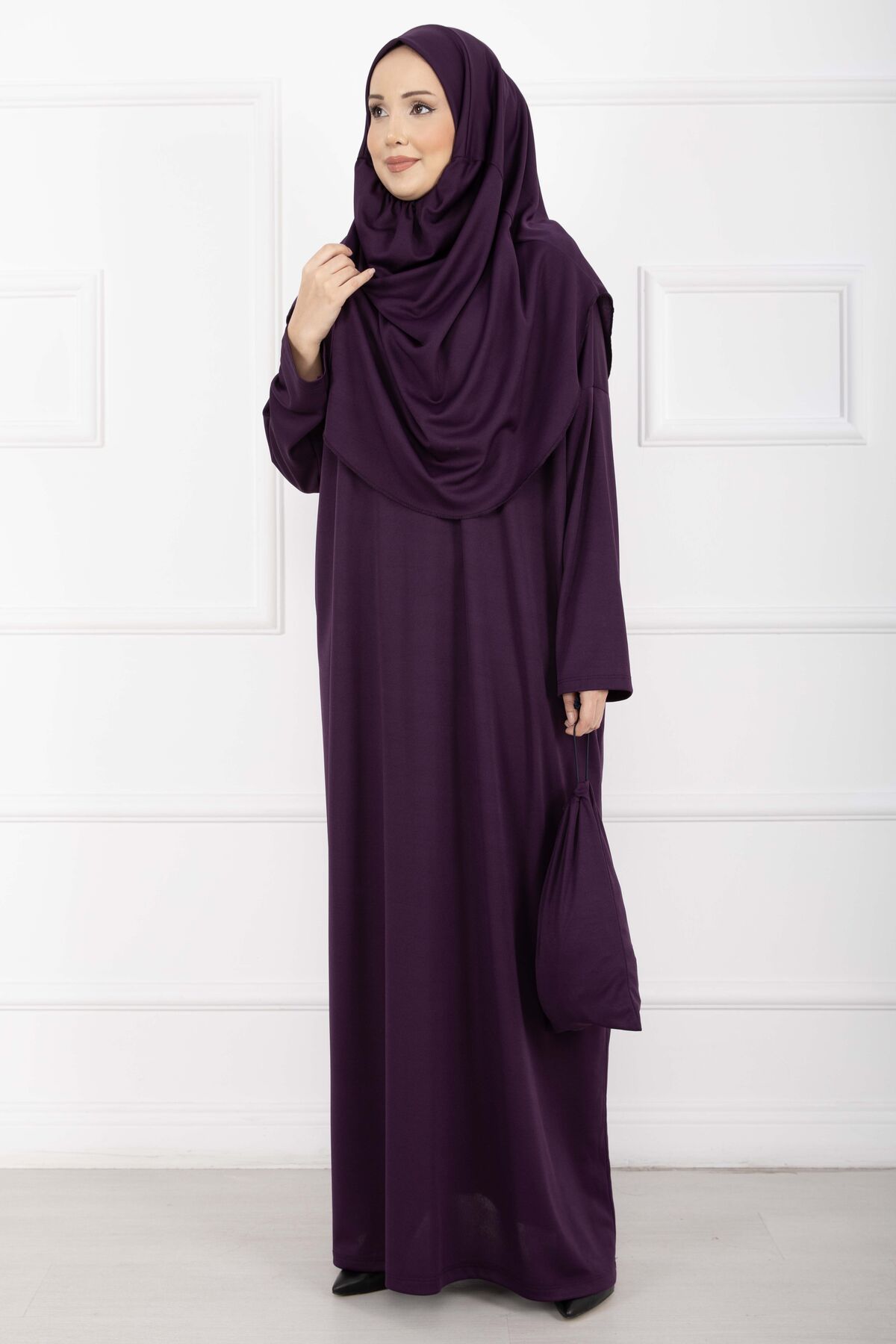 Taşıma Çantalı Tesettür Namaz Elbisesi Mor