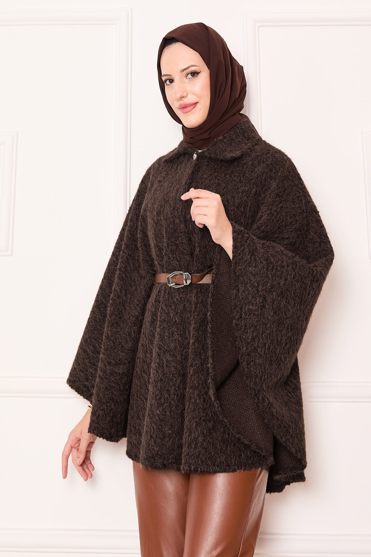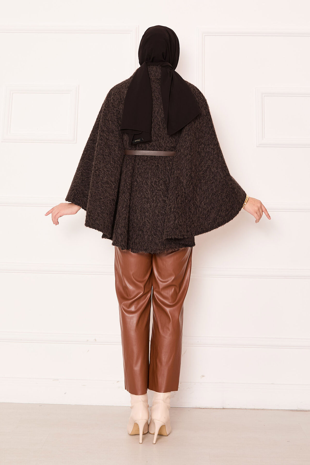 Tek Düğmeli Ve Kemerli Panço Kahve