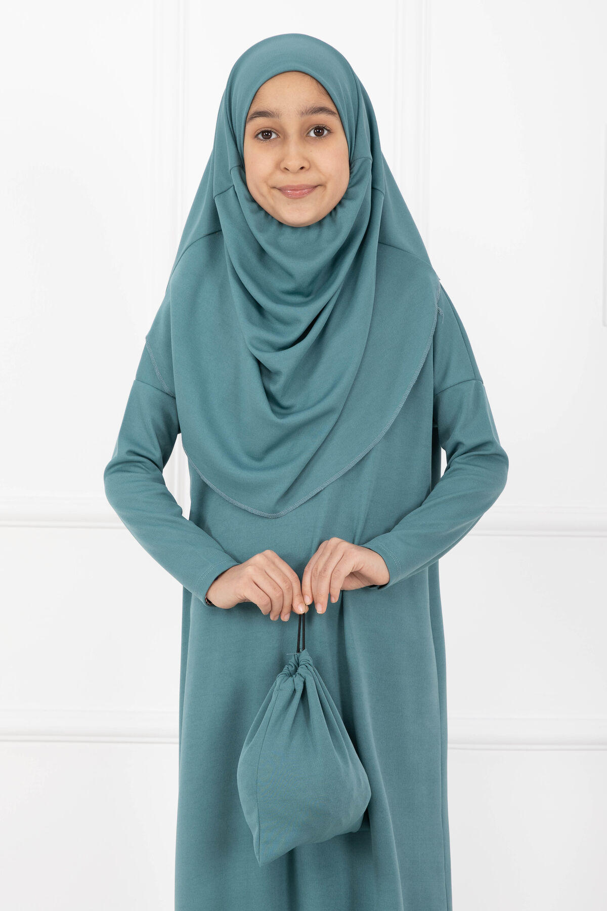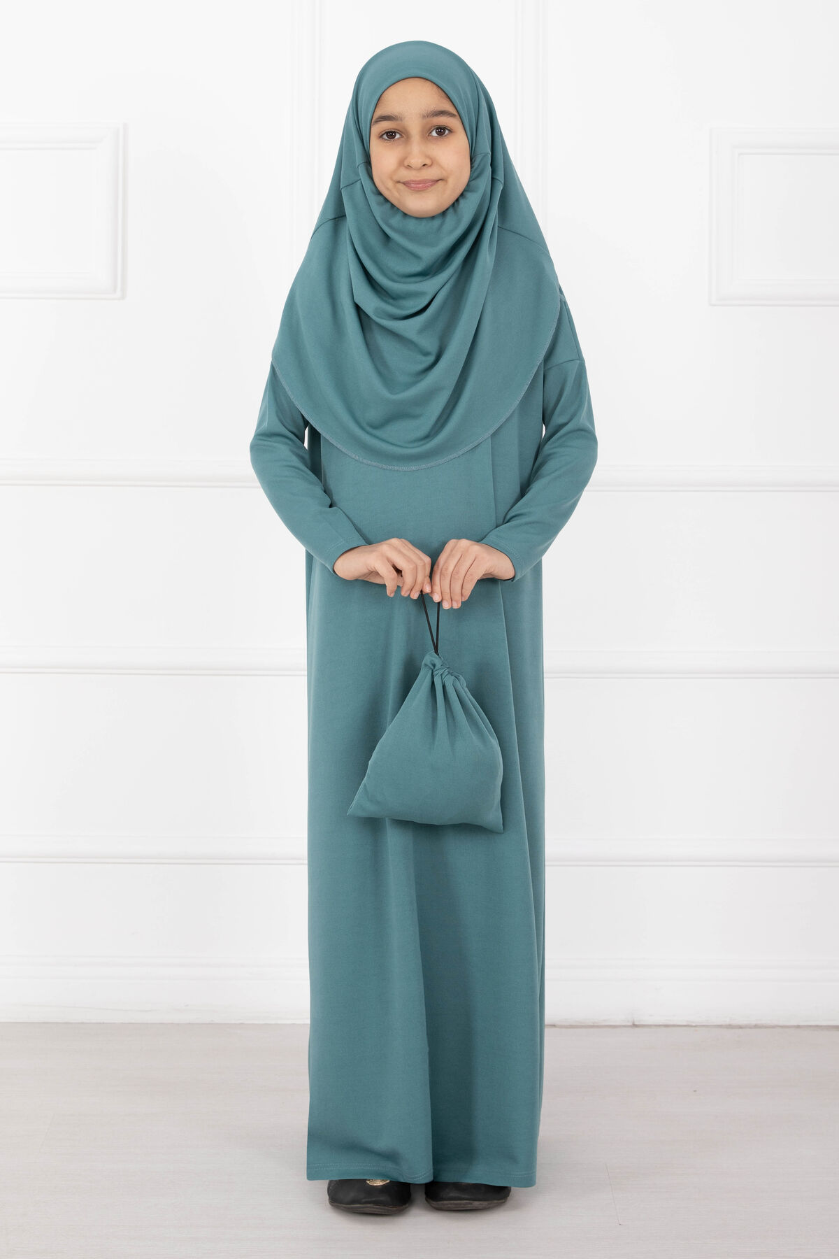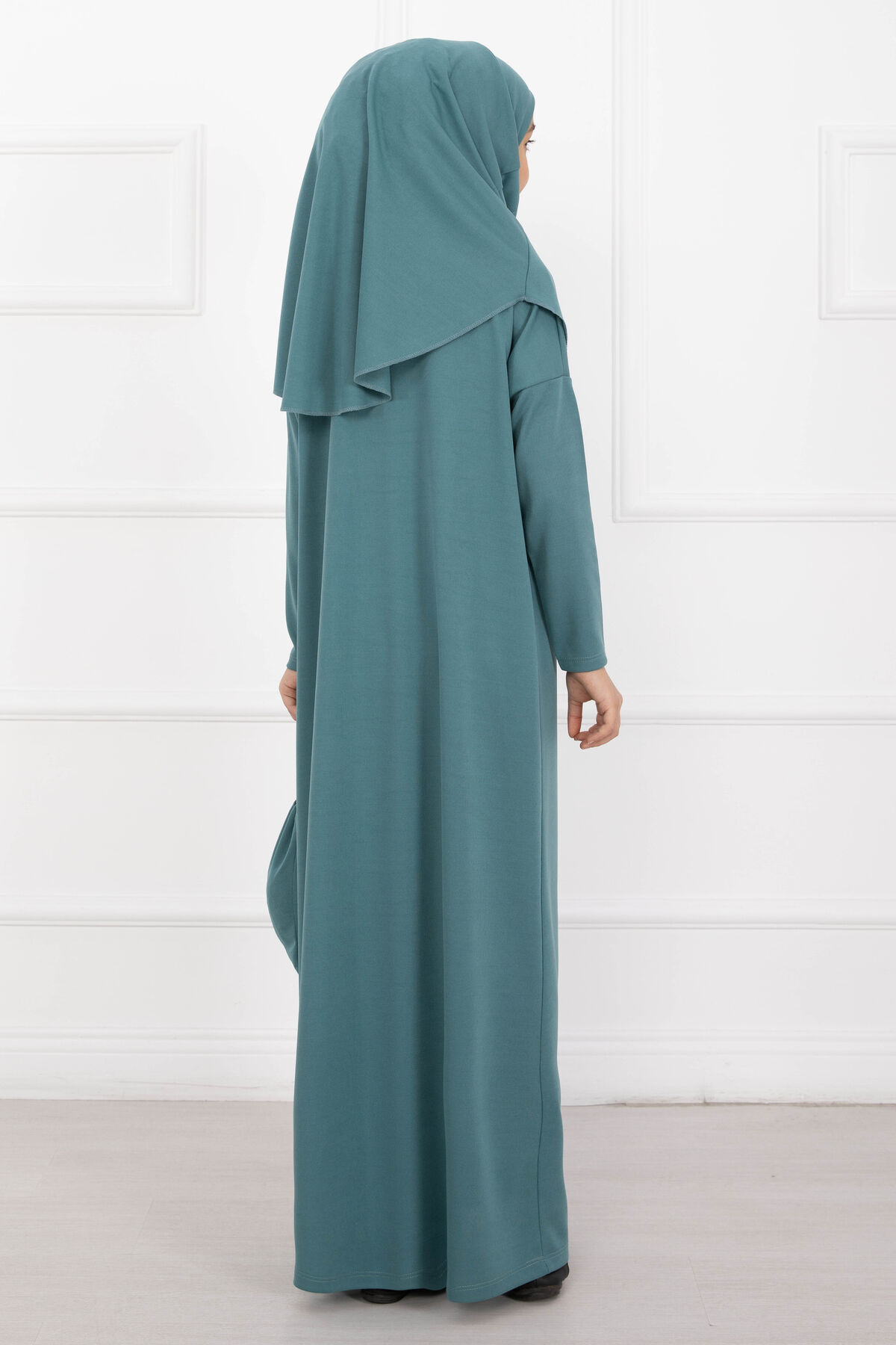 Dört mevsim kullanıma uygun, yeni sezon tesettür çocuk namaz elbisesidir. Rahat kesimlidir ve konforlu kullanım sunar.