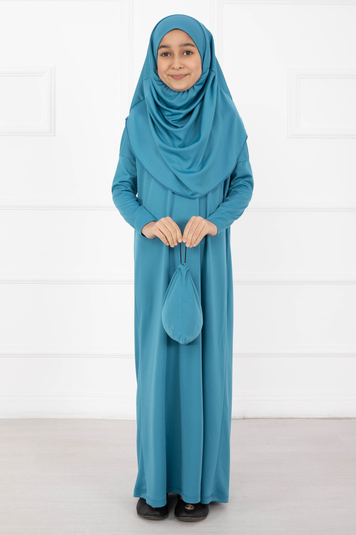 Tesettür Çocuk Namaz Elbisesi Turkuaz