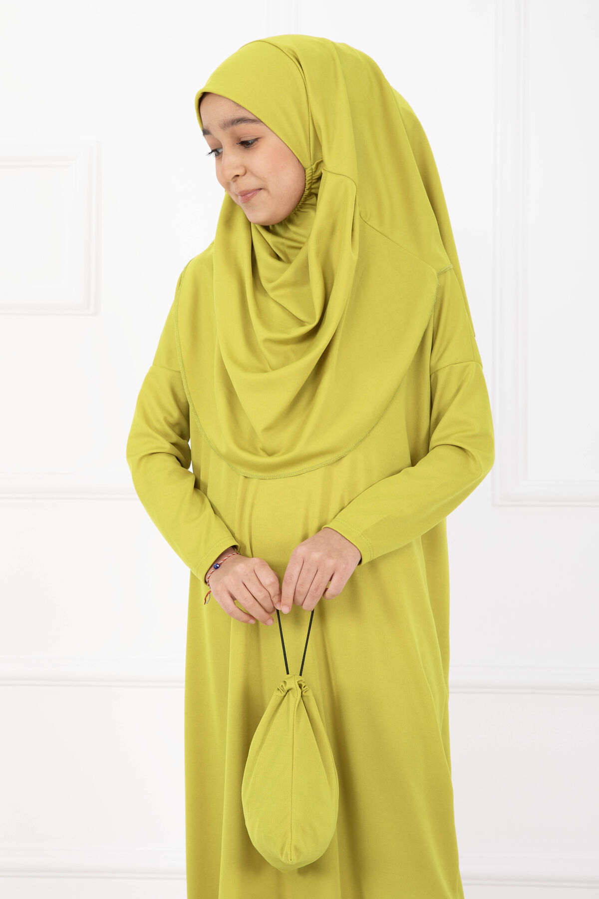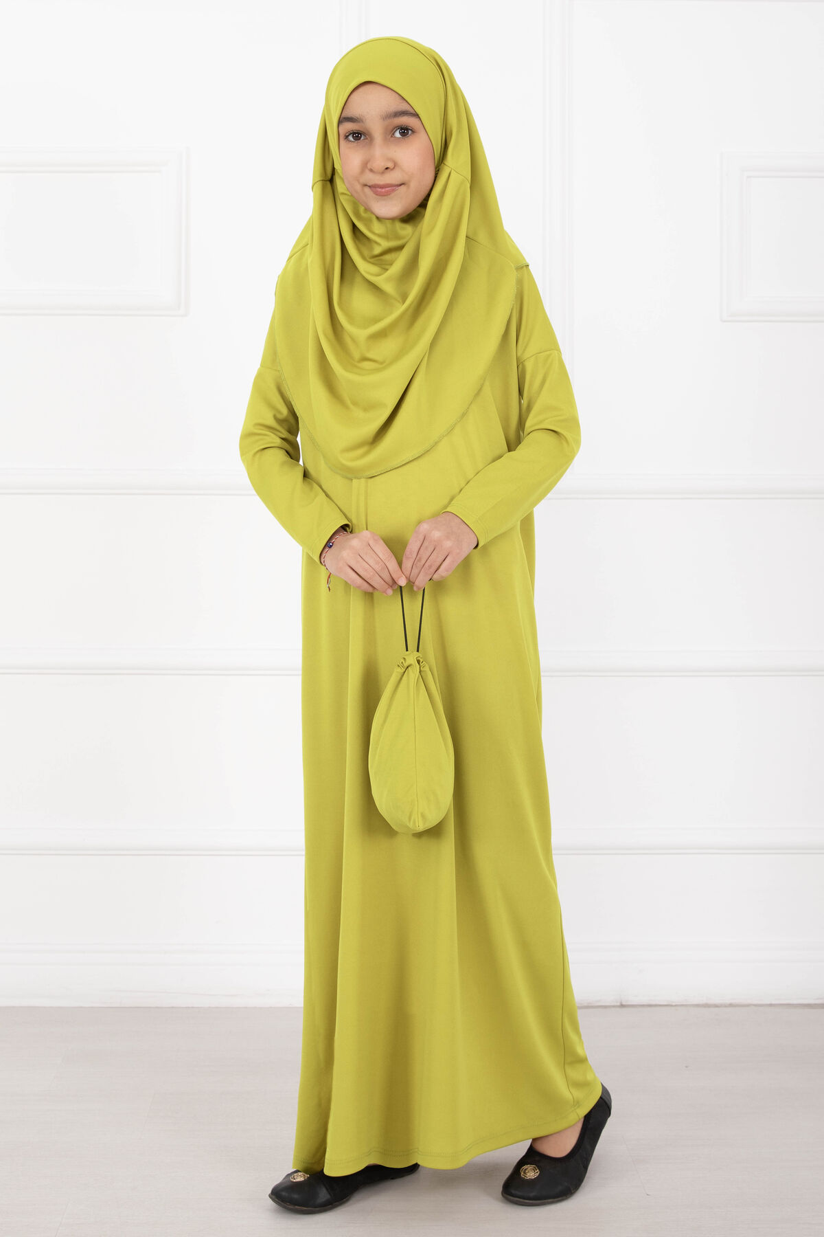 Tesettür Çocuk Namaz Elbisesi Yağ Yeşil