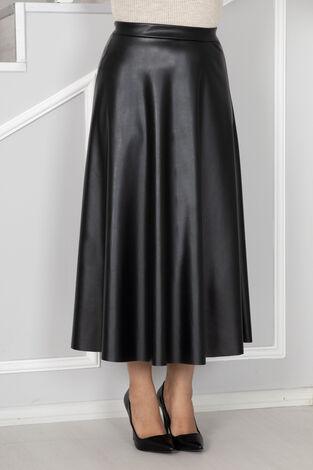 Beli Lastikli Tesettür Deri Pantolon Camel