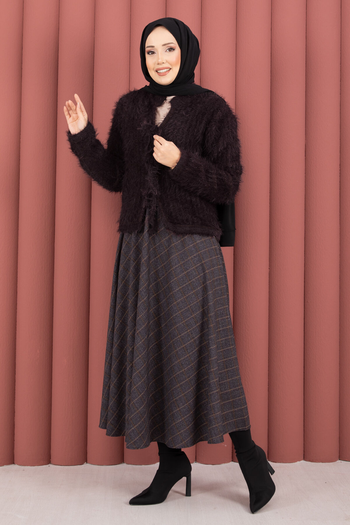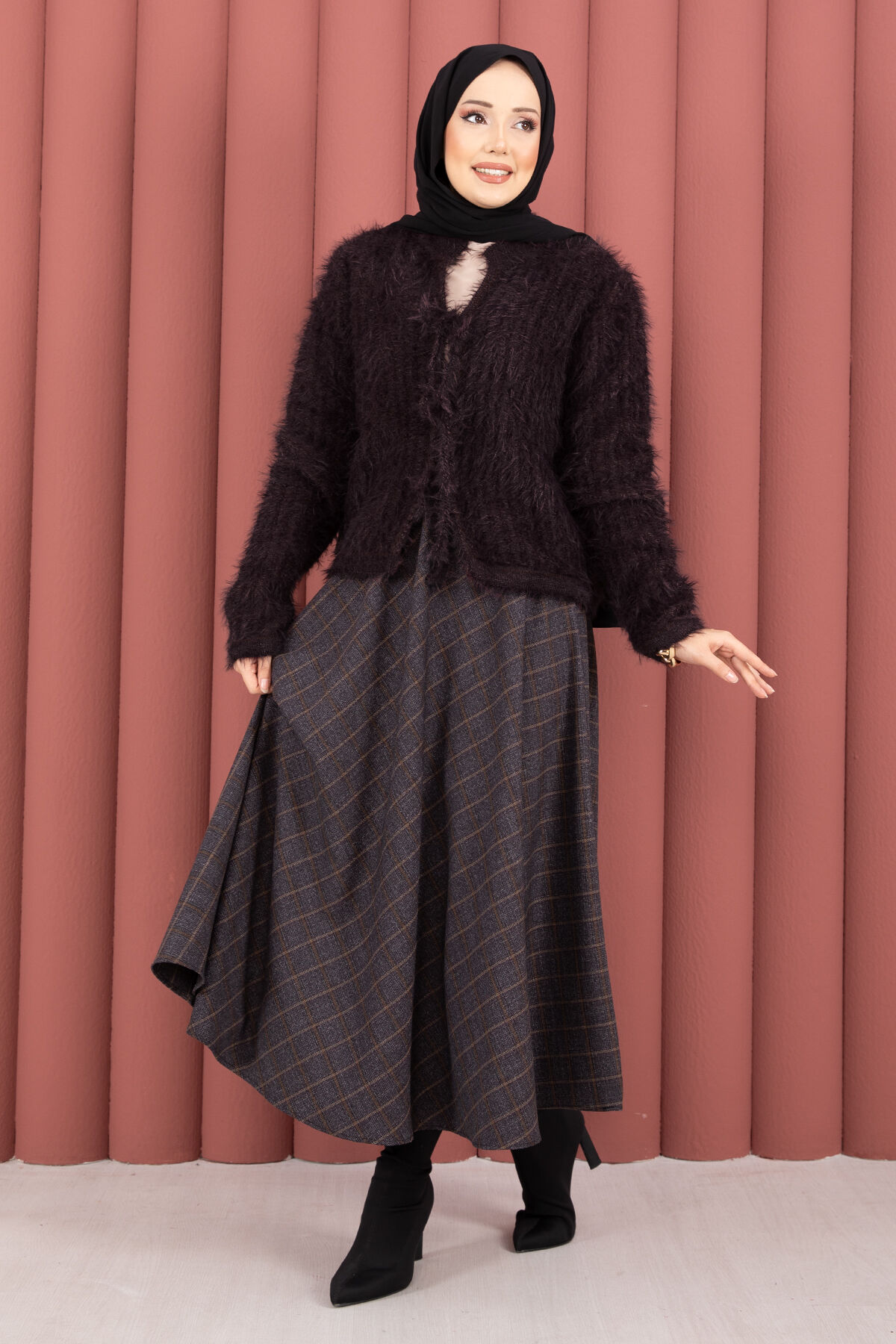 Vera Önden Bağlamalı Peluş Hırka Mürdüm