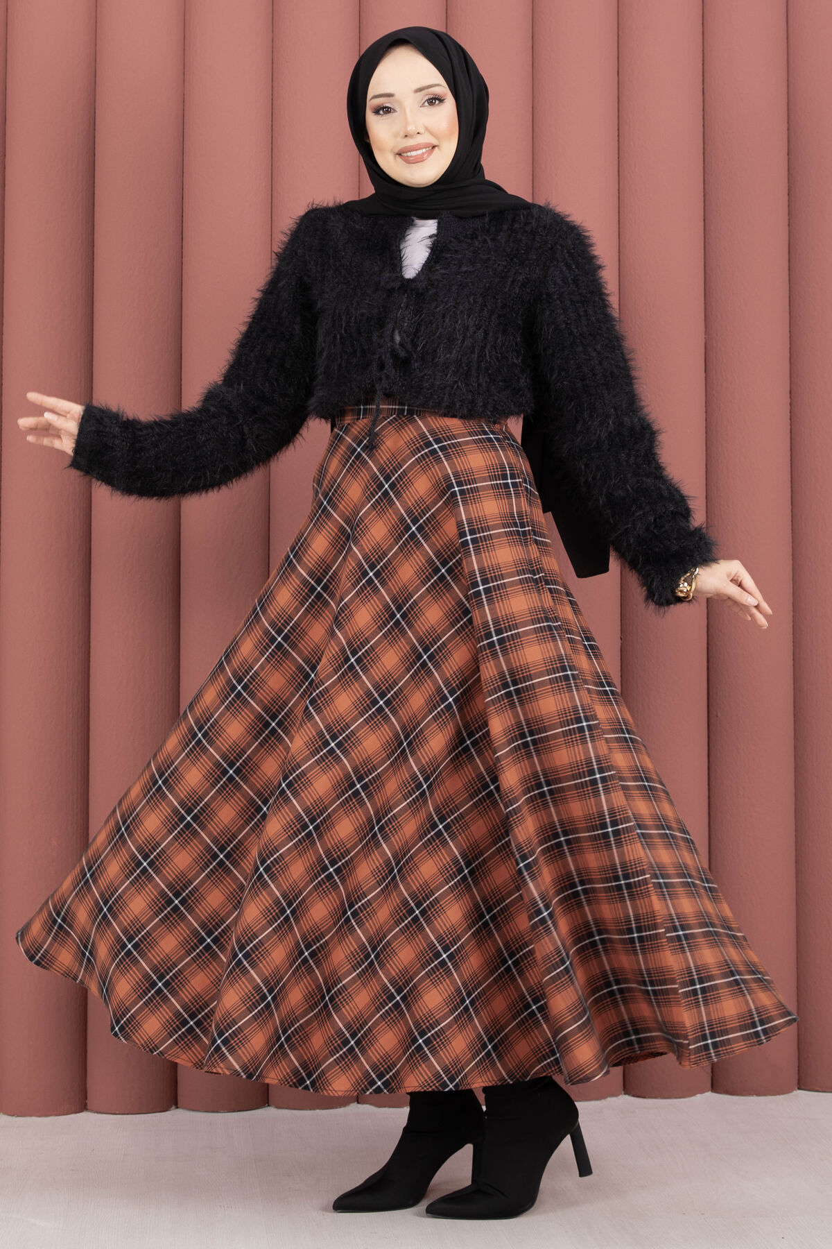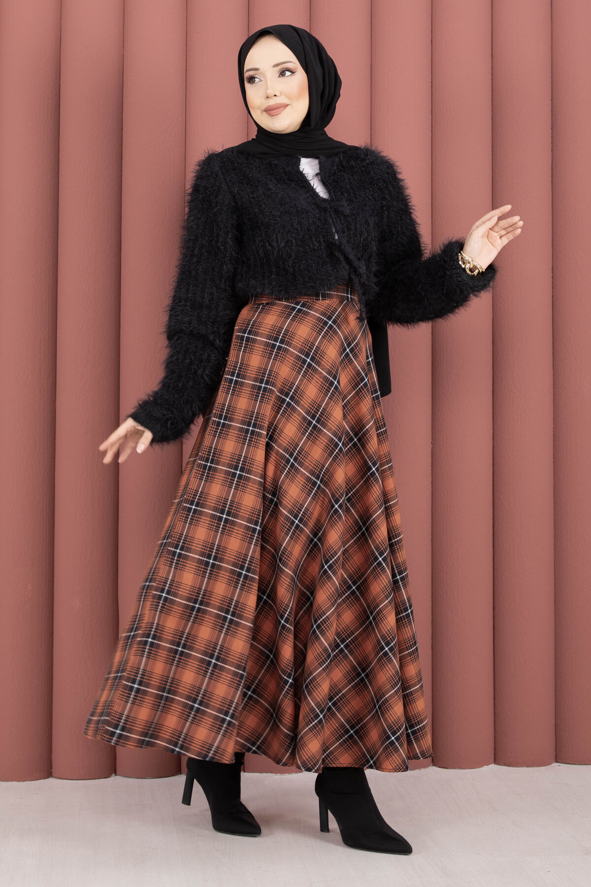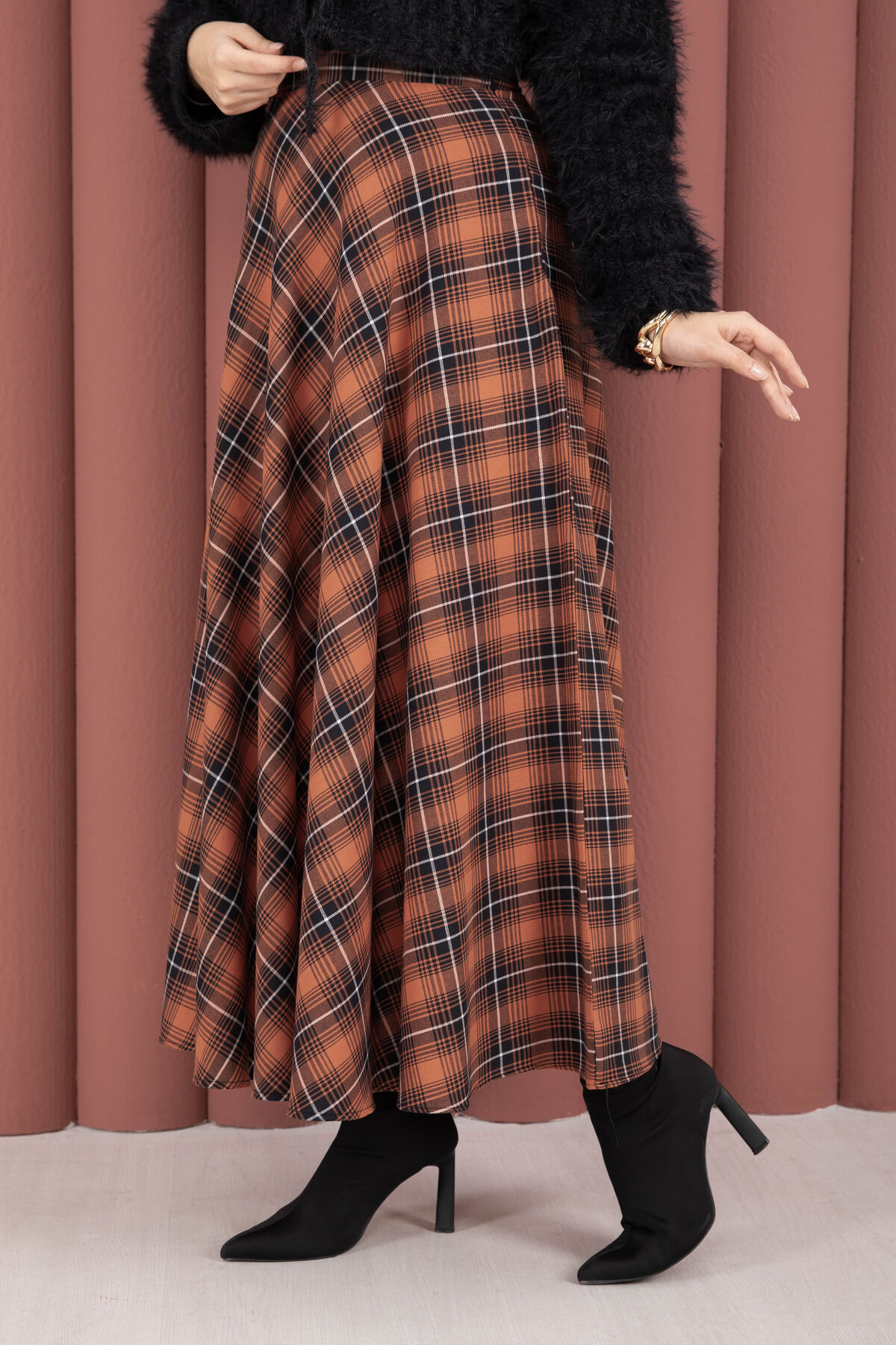 Şıklığı ve konforu bir araya getiren Verev Ekose Desen Etek, modern kesimi ile dolabınızın favori parçalarından biri olmaya aday. Günlük kombinlerden özel davetlere kadar geniş bir kullanım alanı sunan bu etek, zamansız ekose deseni ve verev kesimiyle tarzınızı tamamlar.