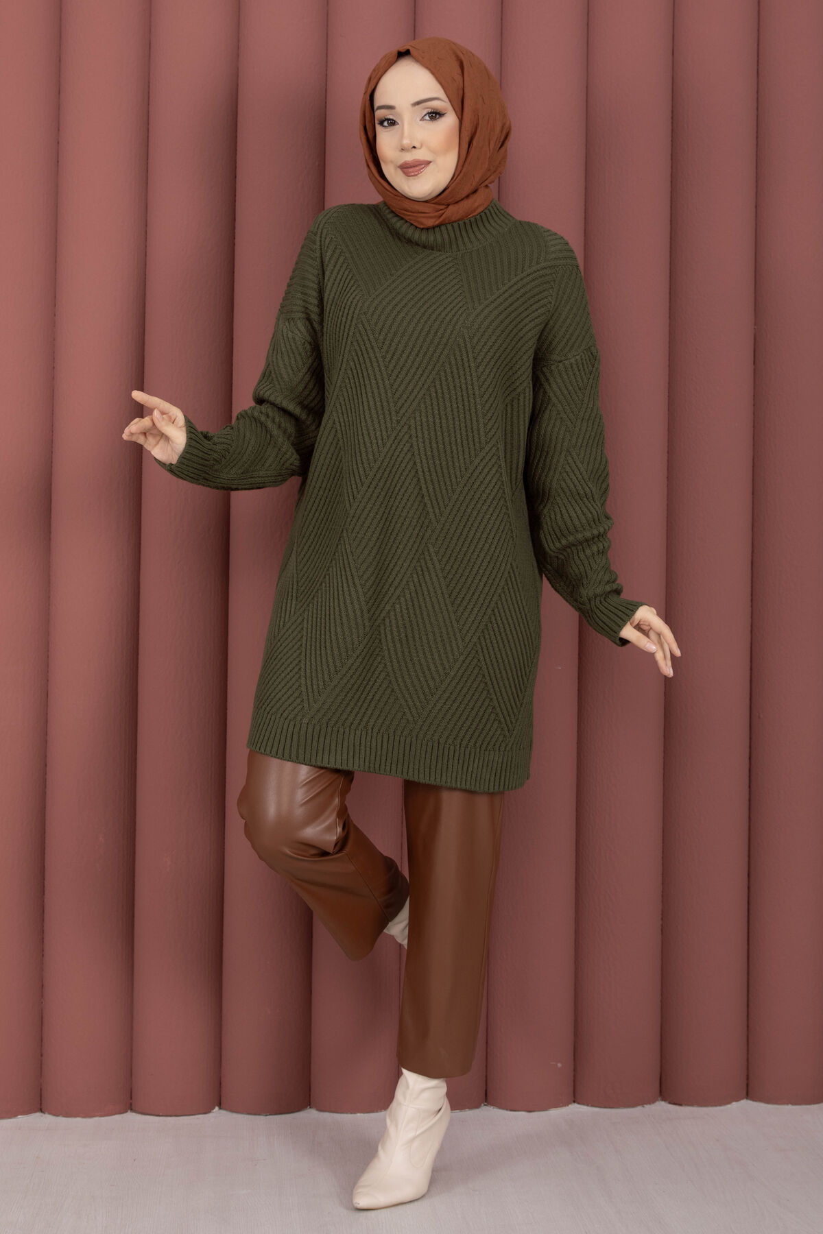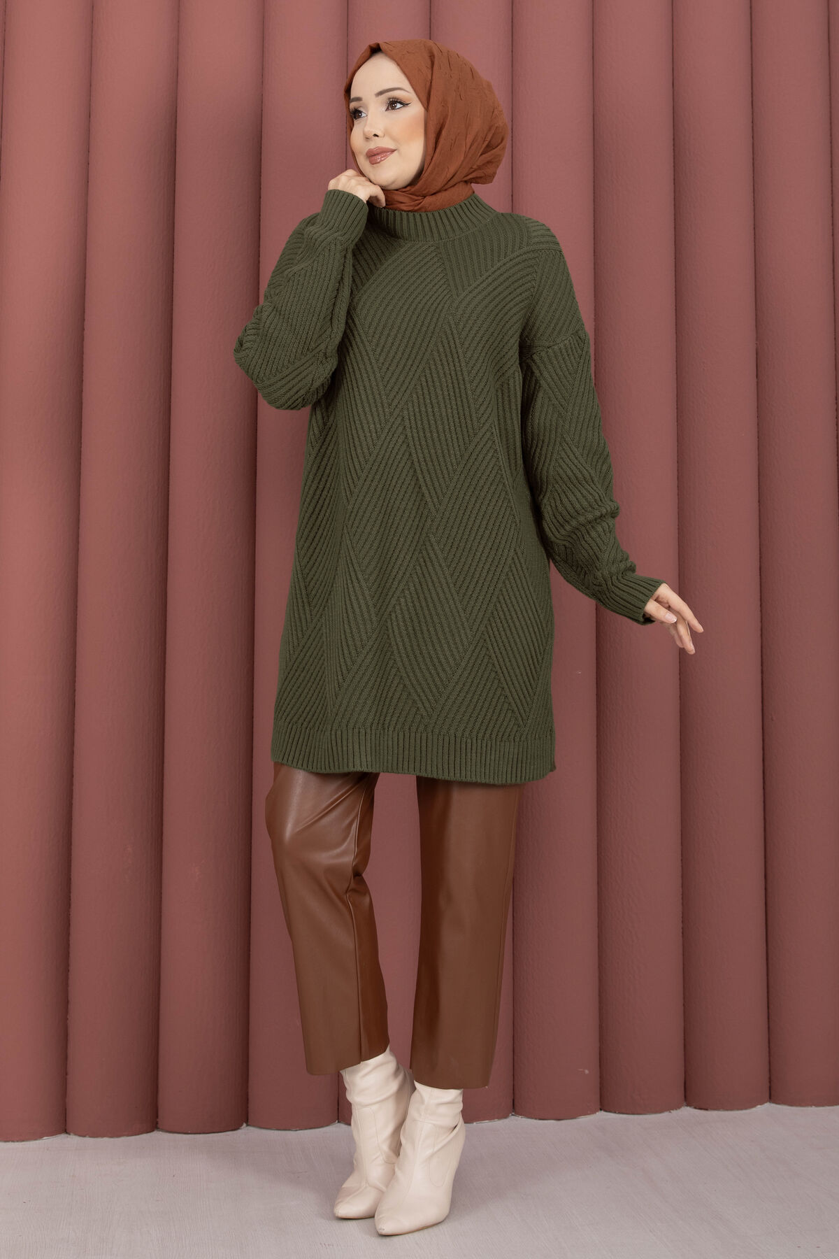 Vinea Baklava Desen Triko Kazak Haki