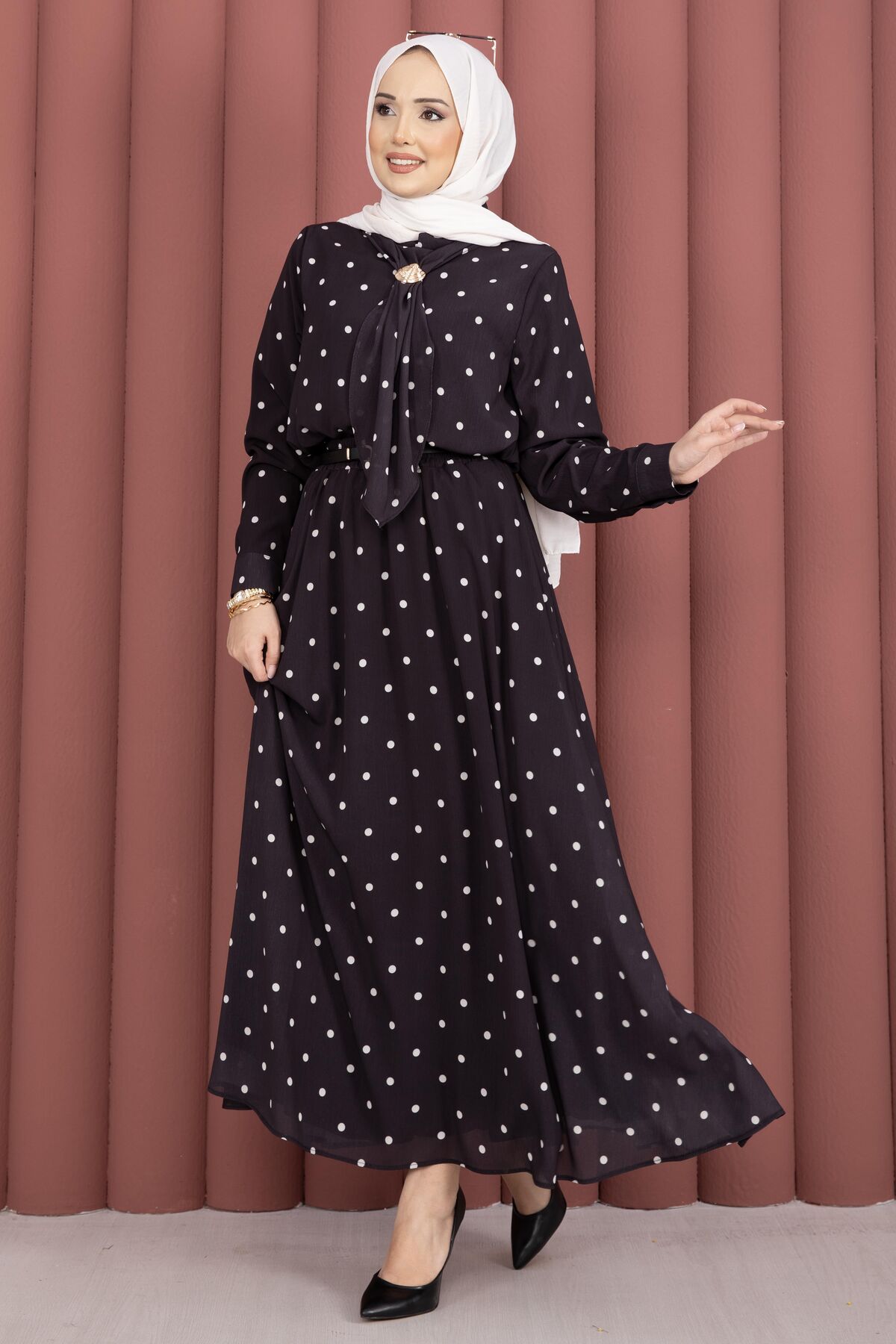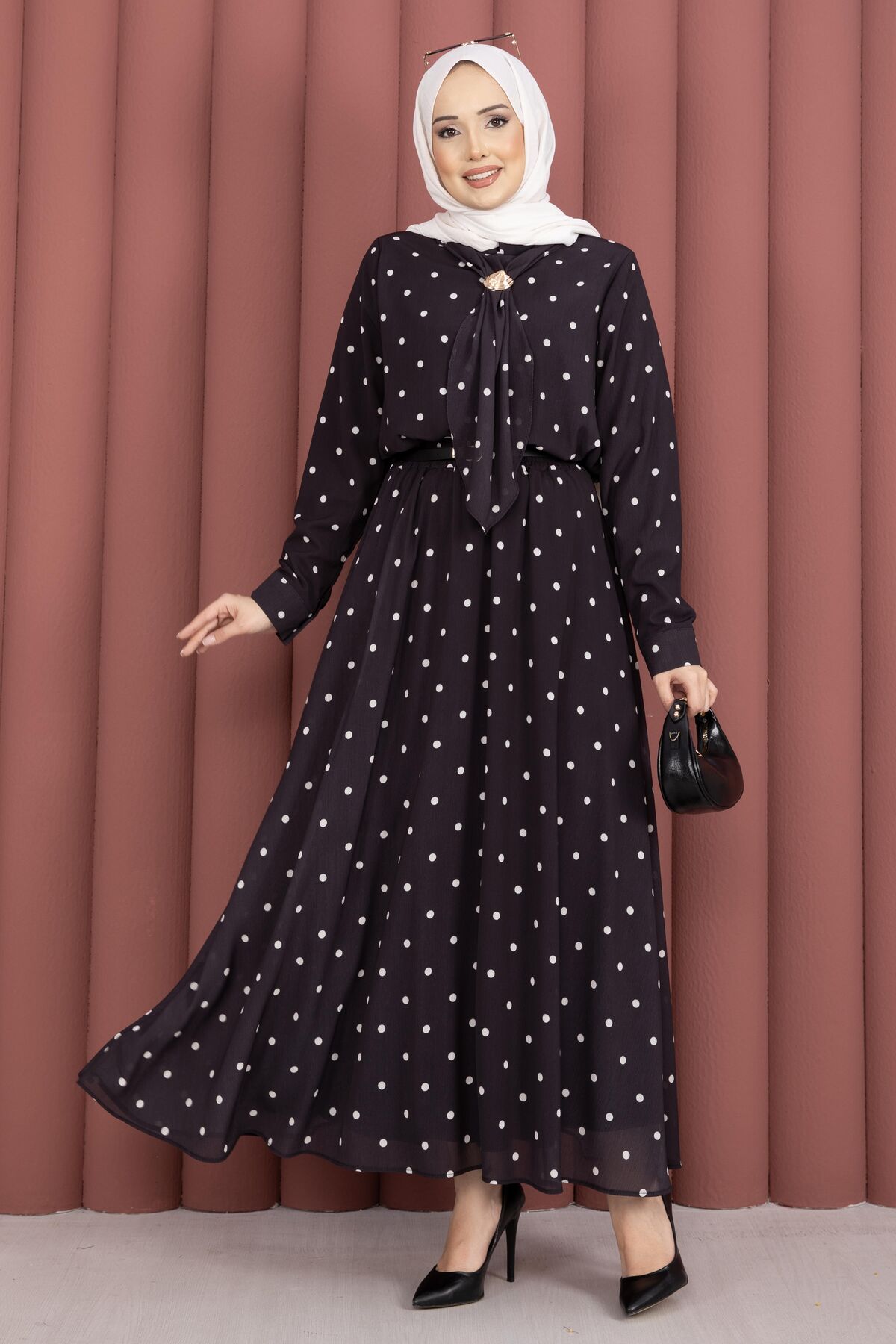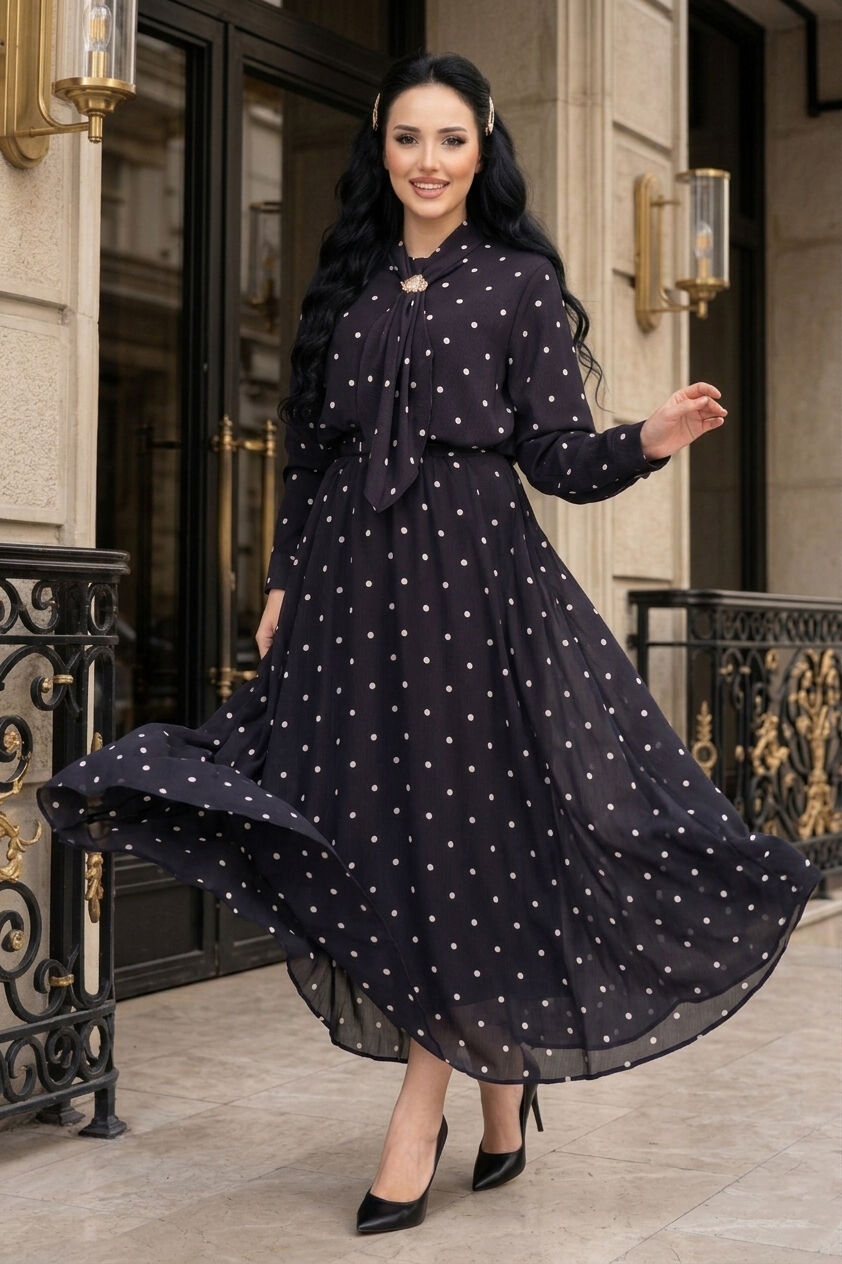 Yaka Fularlı Puantiyeli Etekli Takım Siyah Yorumları
