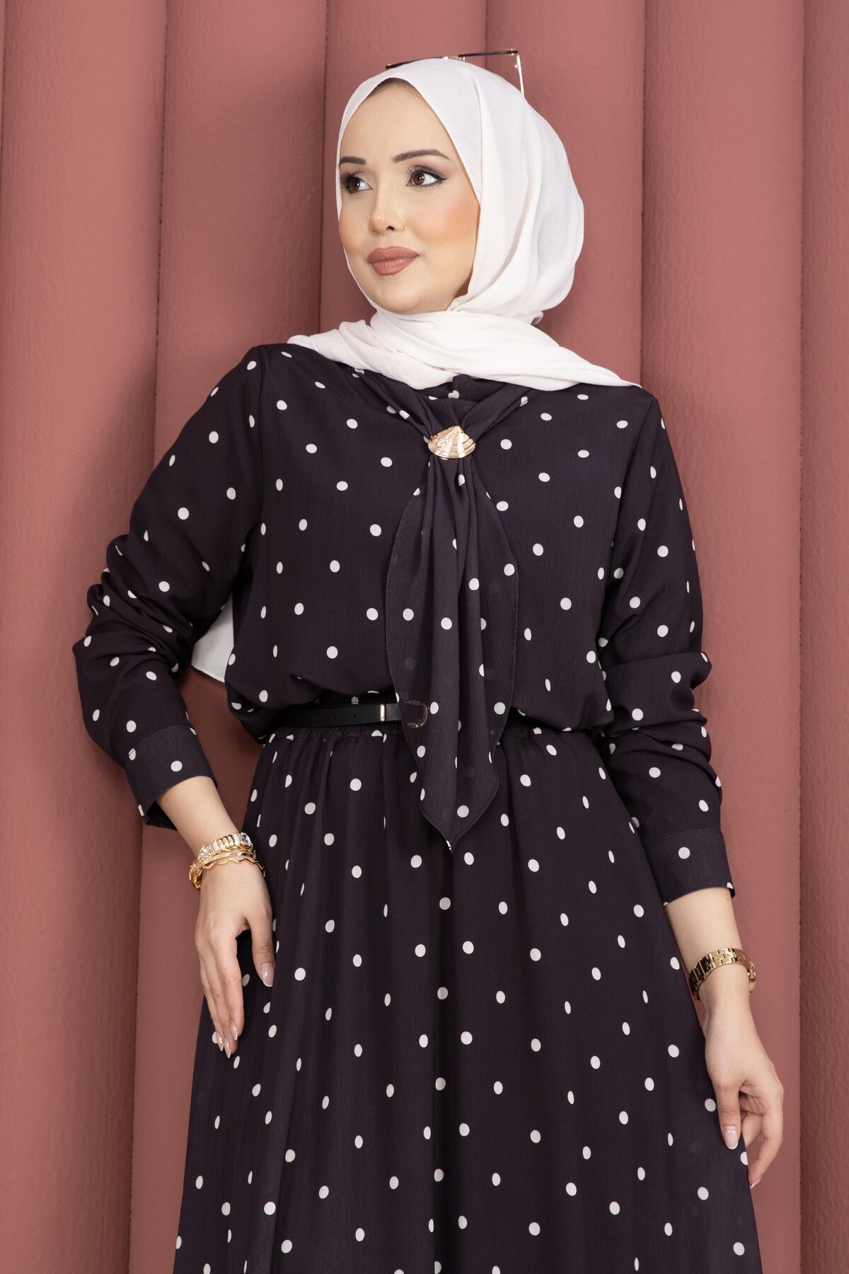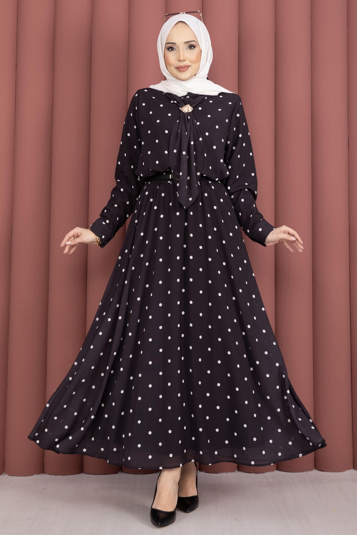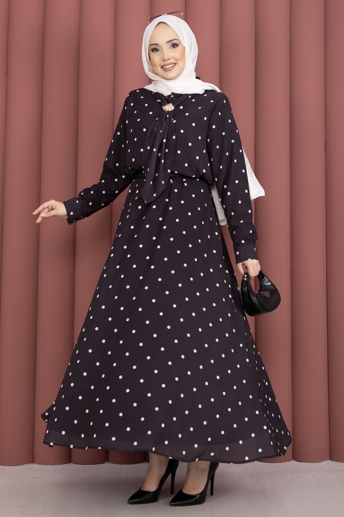 Yaka Fularlı Puantiyeli Etekli Takım Siyah Yorumları