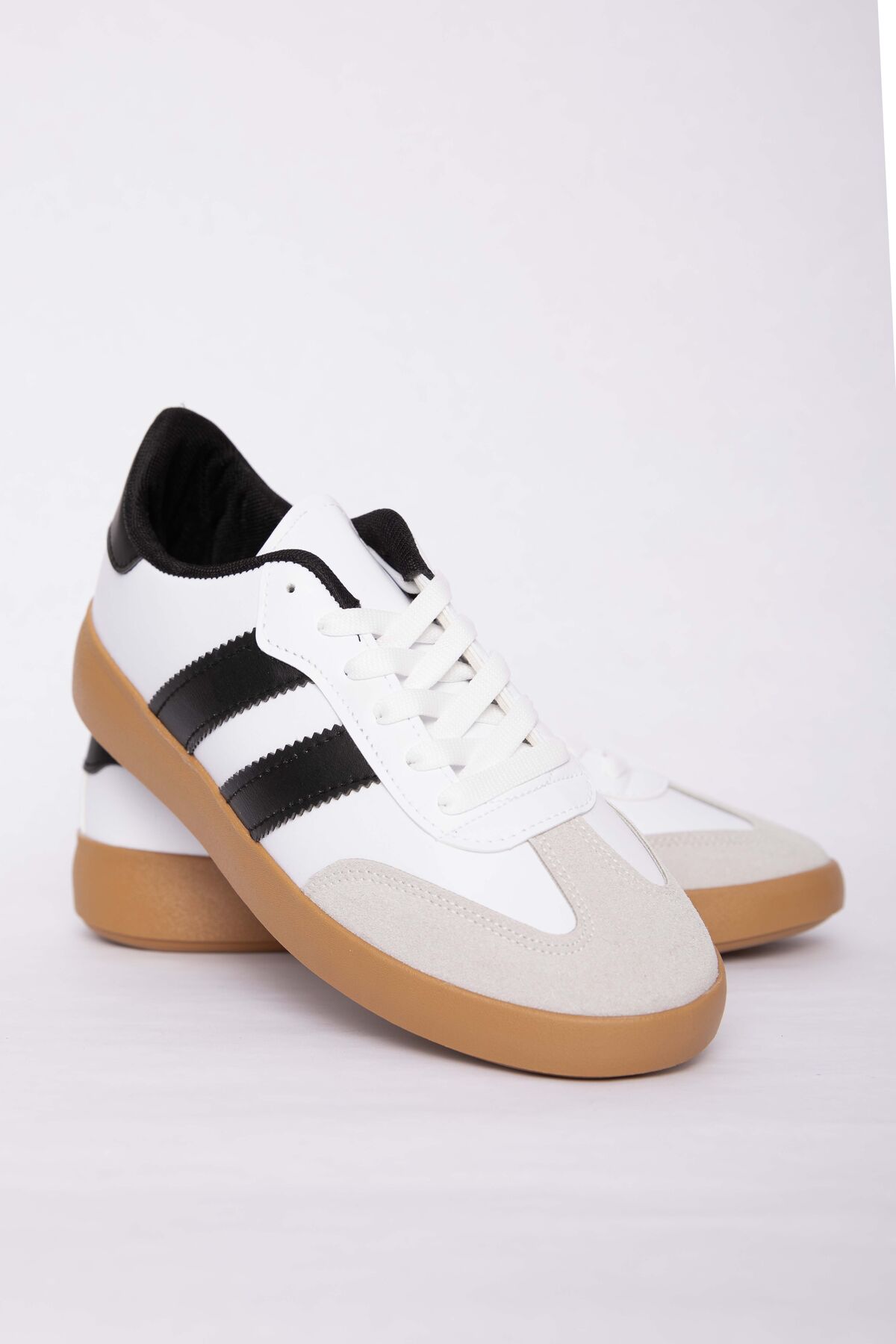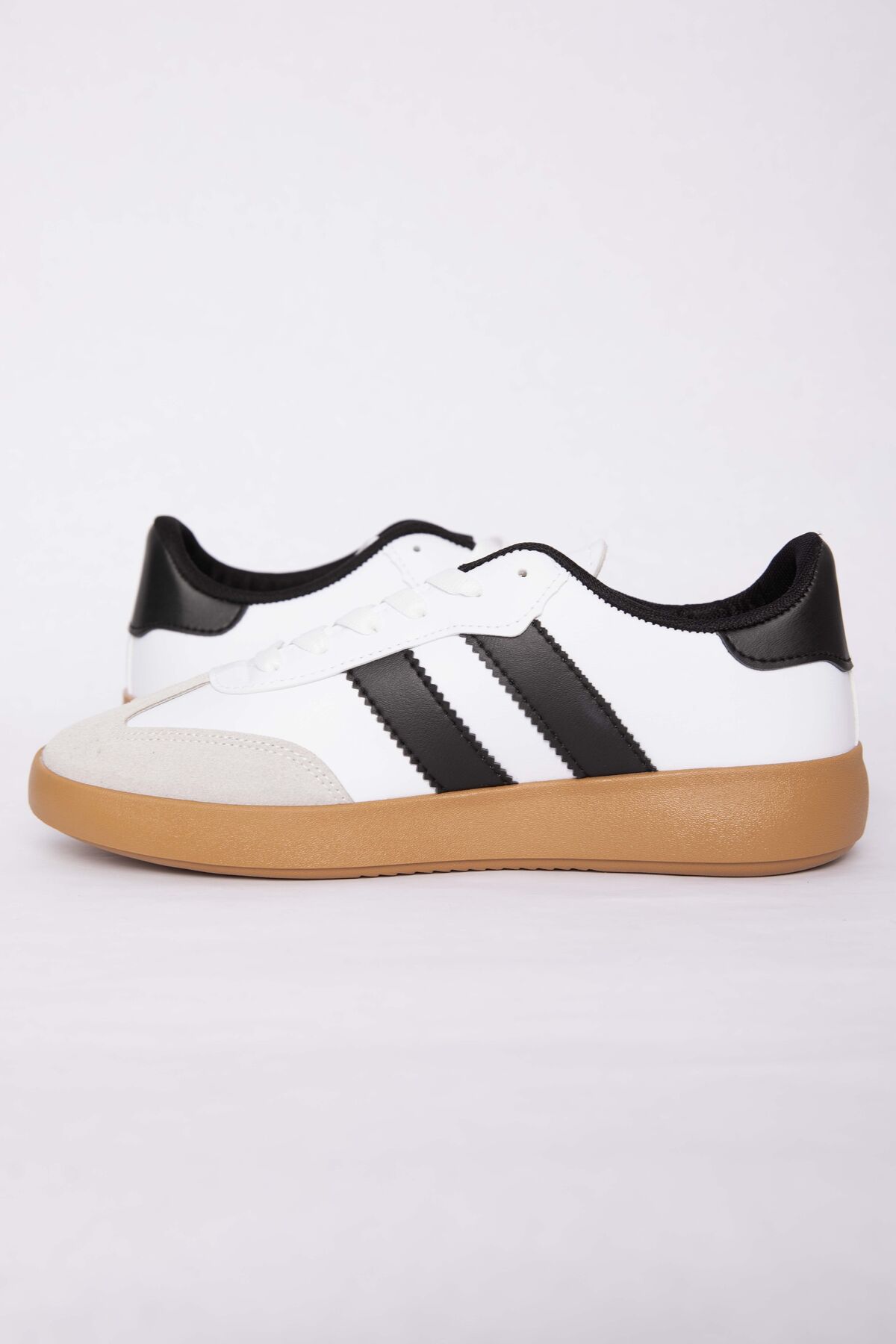 Yan Şerit Detaylı Sneaker Spor Ayakkabı Beyaz - Siyah