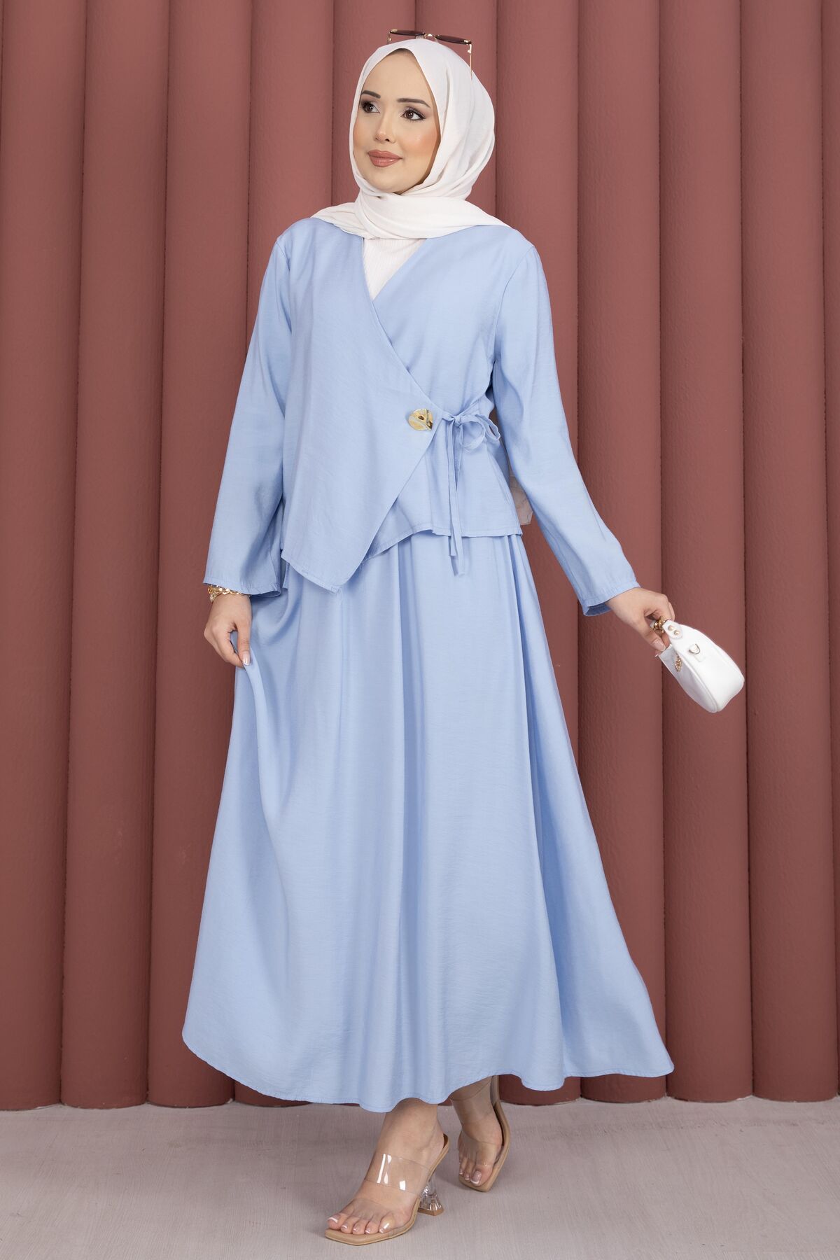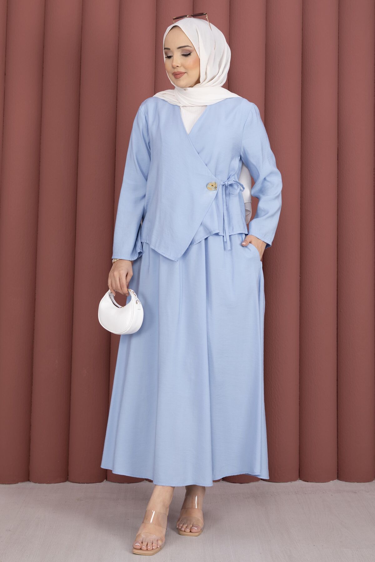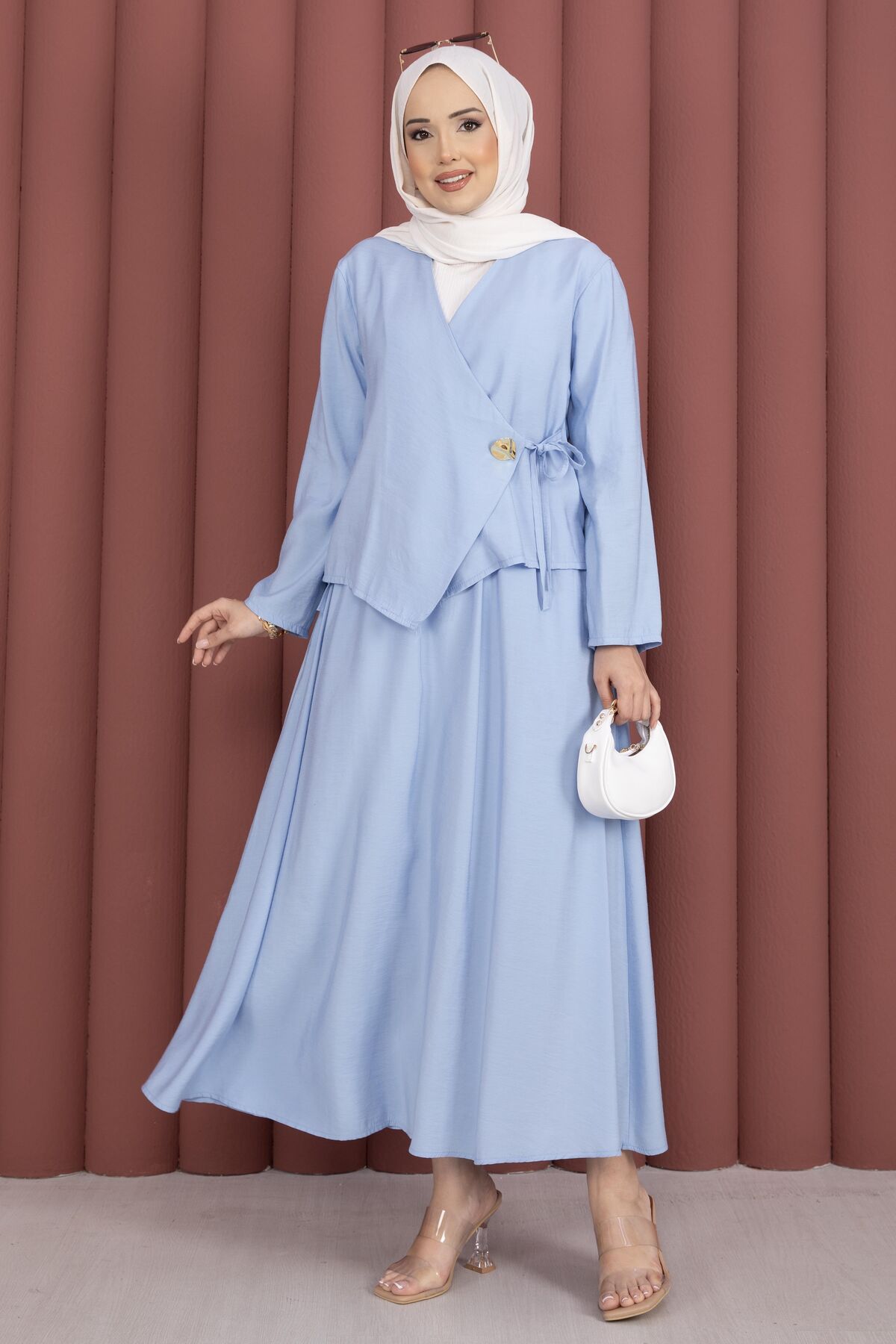 Yandan Bağlamalı Kimono Etek İkili Takım Bebe Mavisi