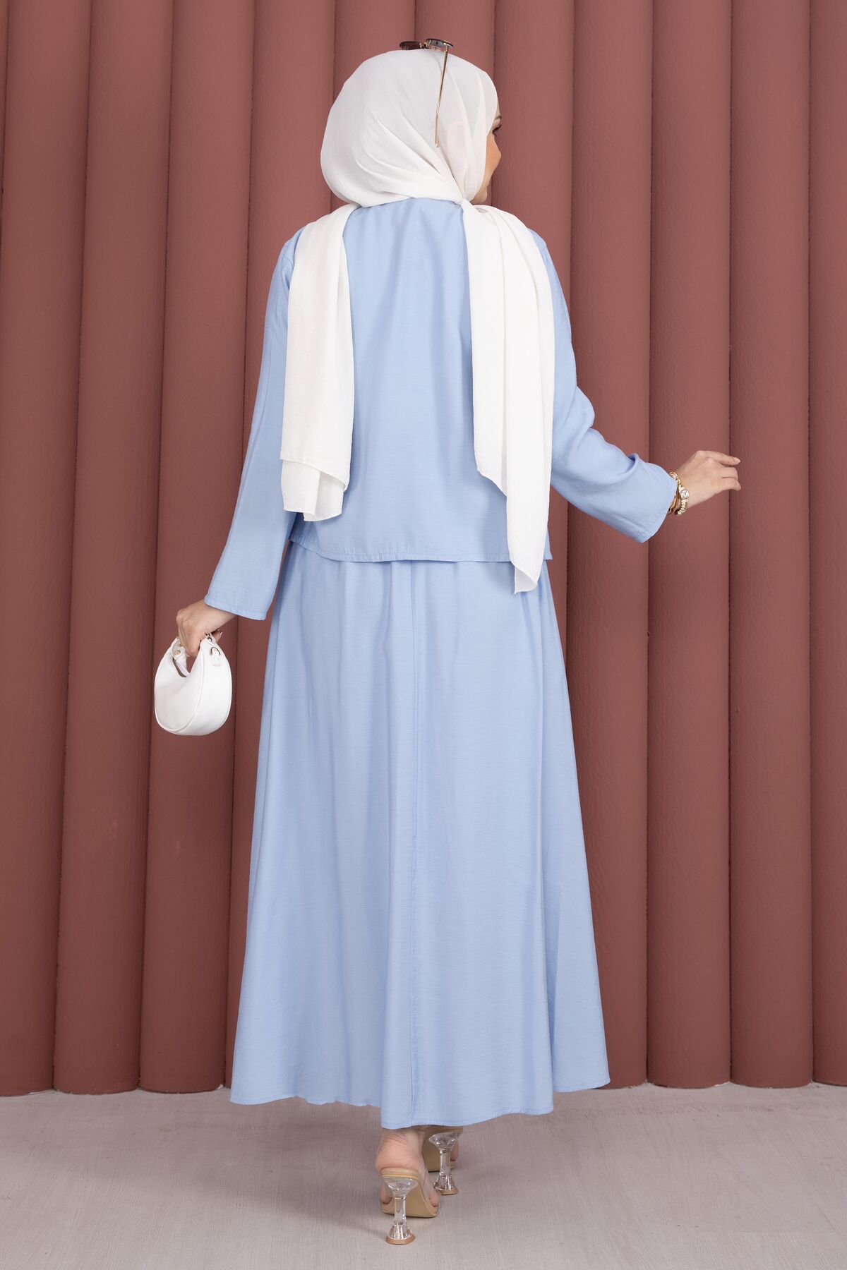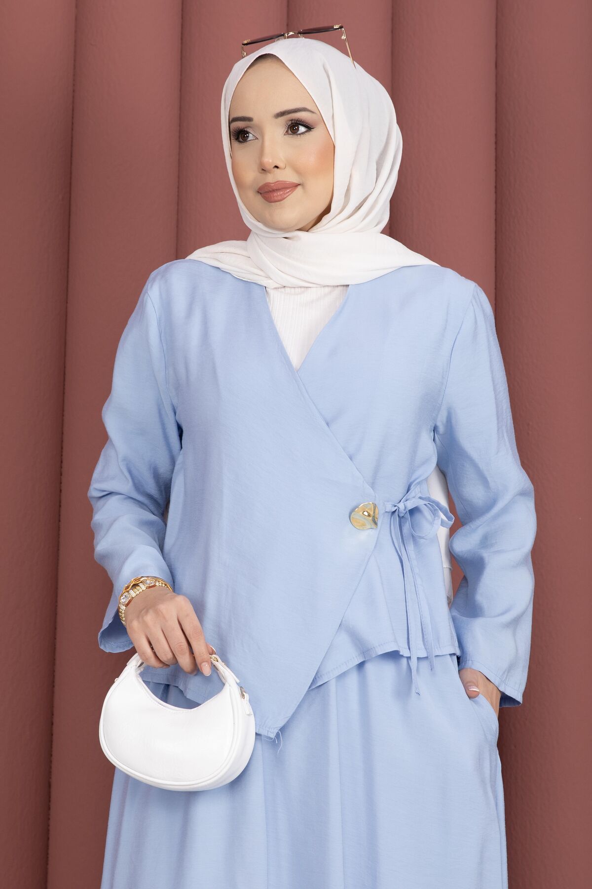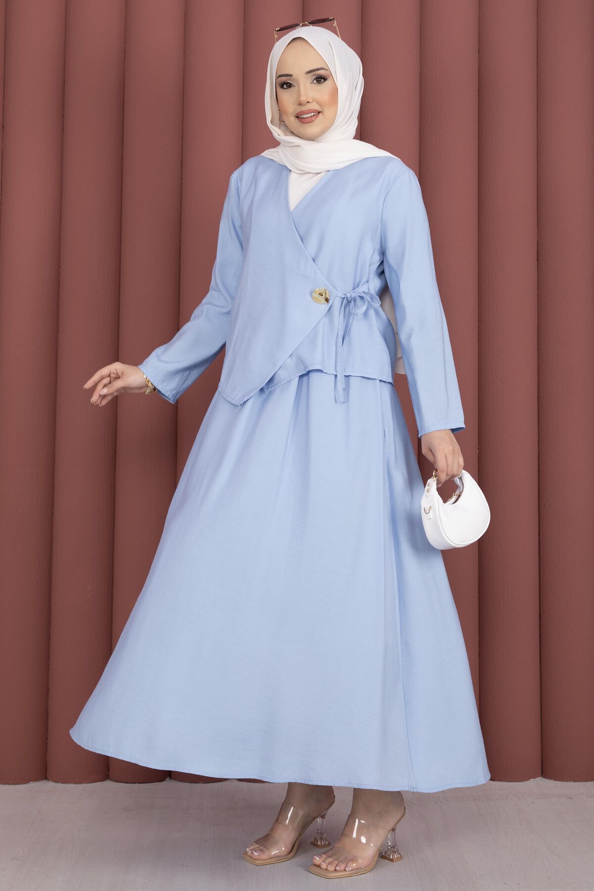 Yandan Bağlamalı Kimono Etek İkili Takım Bebe Mavisi