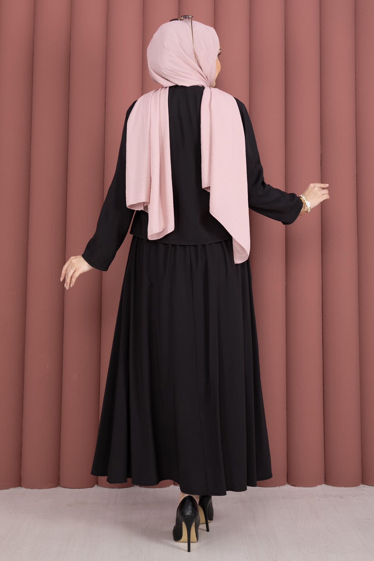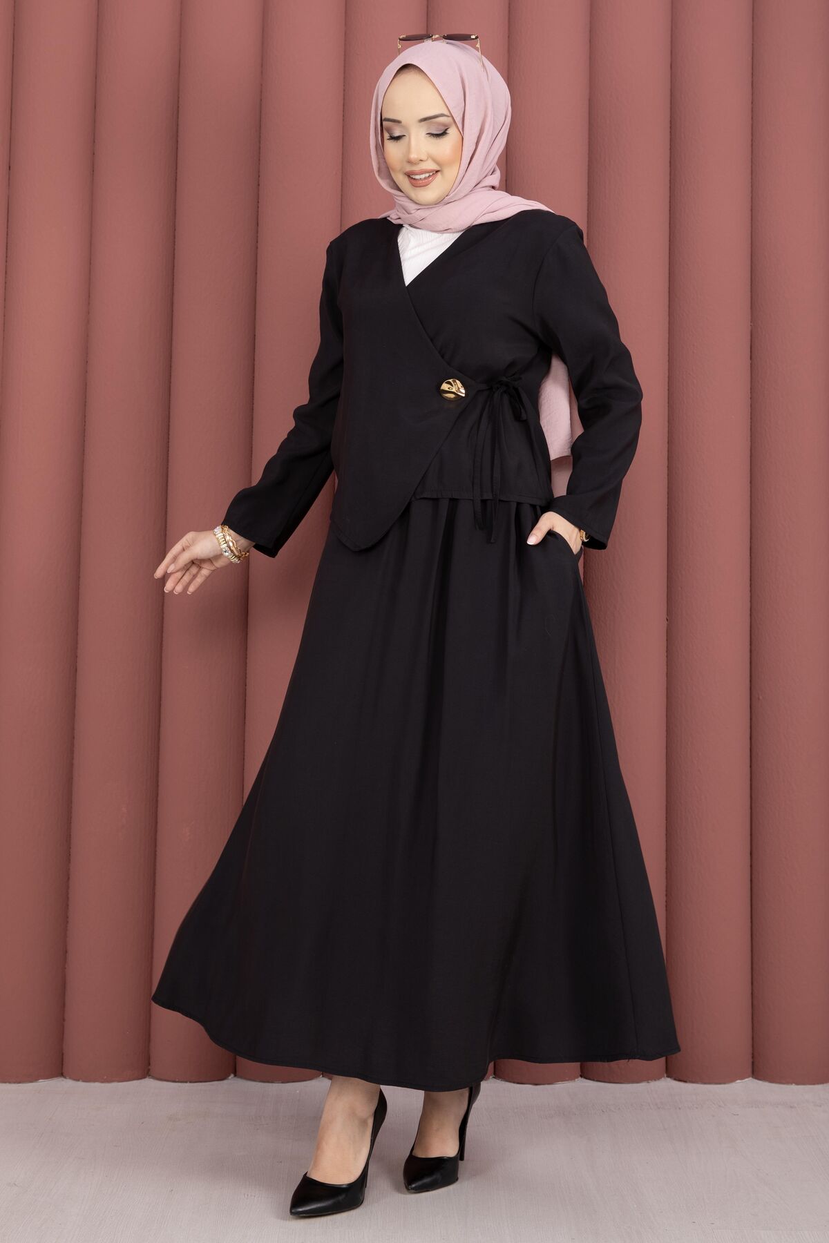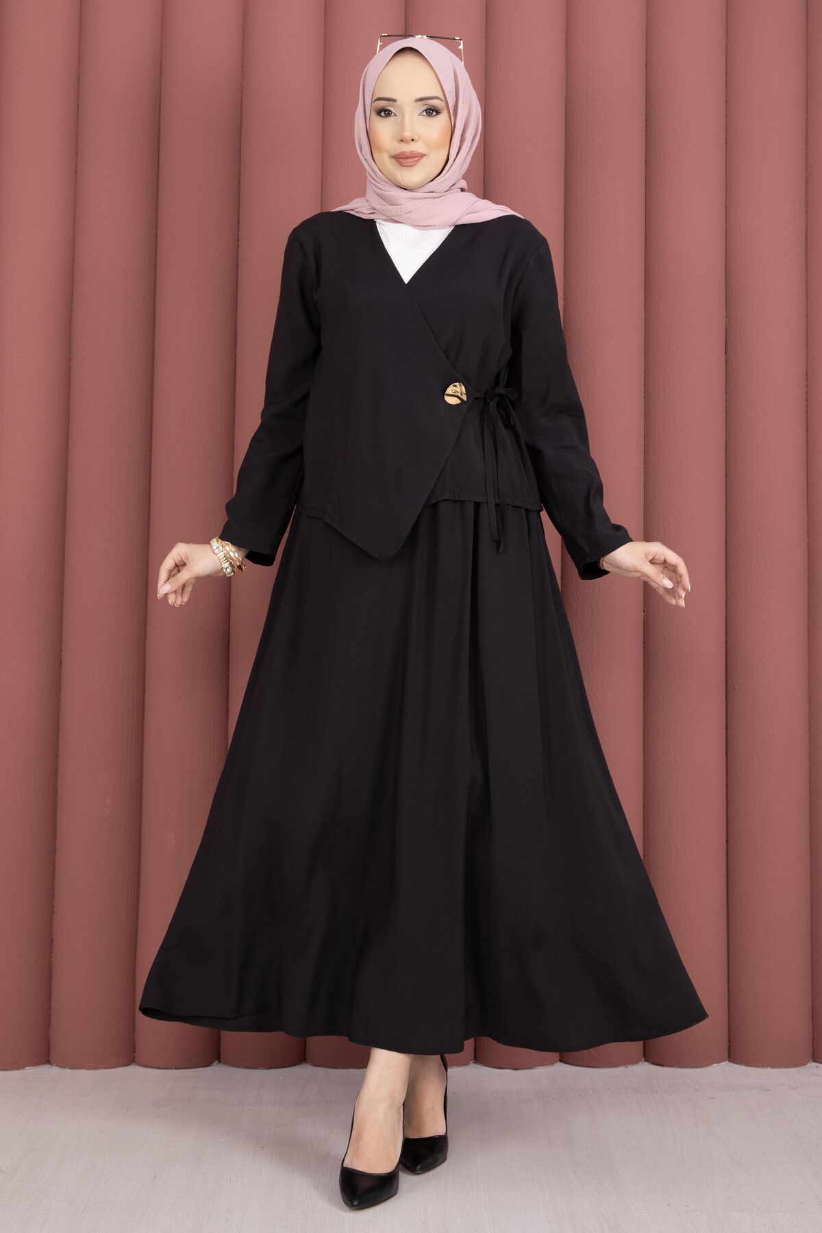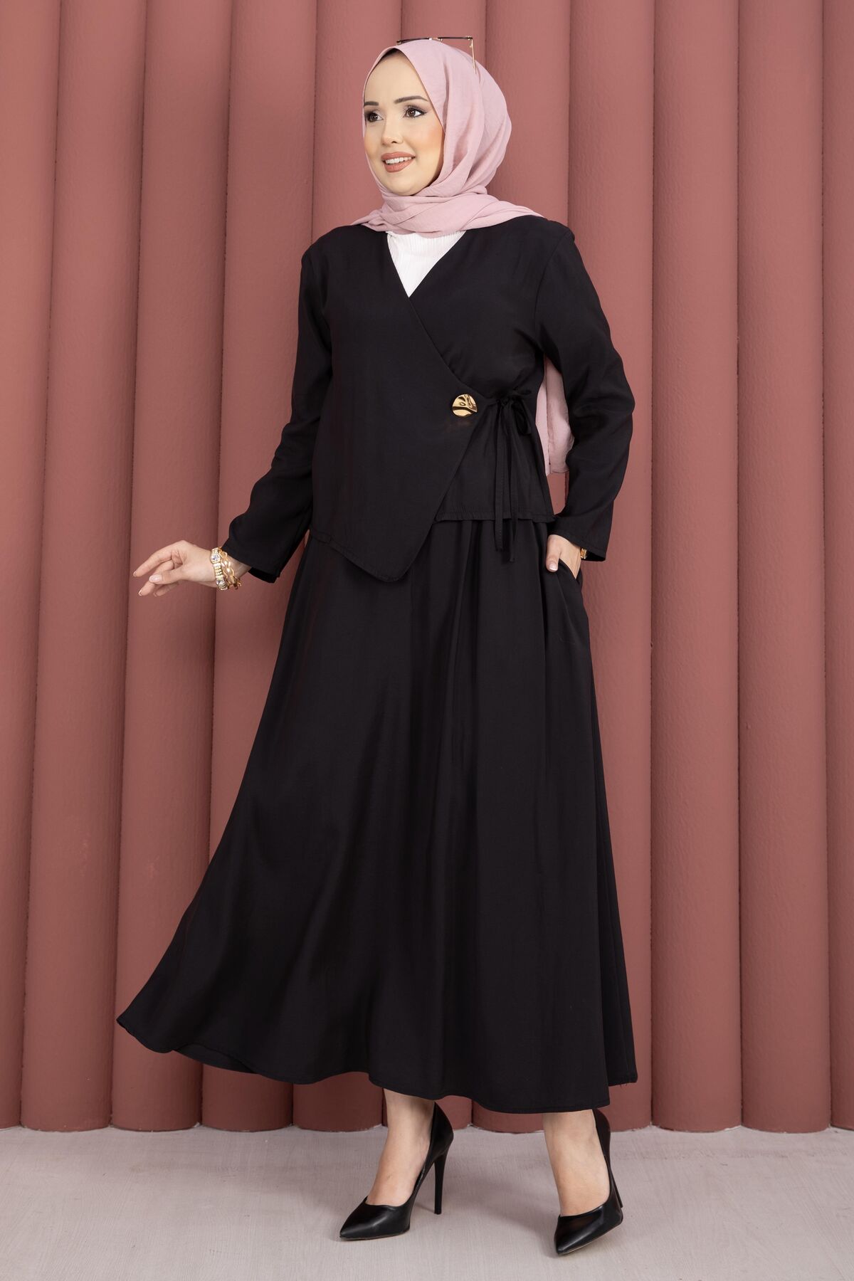 Yandan Bağlamalı Kimono Etek İkili Takım Siyah